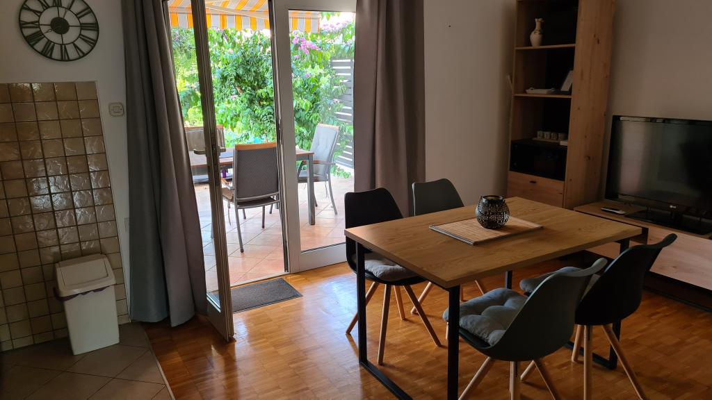 Z velikim veseljem smo preživeli čudovitih 13 dni v apartmaju 2 + 2. Fantastično, izjemno lepo in prijazni gostitelji, zelo čisto (na lestvici 10 dajem 20) in okusno opremljeno stanovanje. Avto je zaradi pokritega parkirišča v senci. Sprehod do plaže (približno 5 minut s psom), očarljivo, mirno mesto, kristalna voda v morju. Najpomembneje je, da je zaradi majhnega števila najetih stanovanj (3) tiho in prijazno. V apartmajih boste našli vse, kar potrebujete: brisače, sušilnik za lase, likalnik, mikrovalovno pečico, opekač kruha, sušilnik za perilo, pralni stroj in celo komplet za prvo pomoč. Mero in Dragana prisrčno pozdravljamo in iz srca priporočamo bivanje v vaših apartmajih. Iwona in Jan ter naš pes Psotek POLSKA