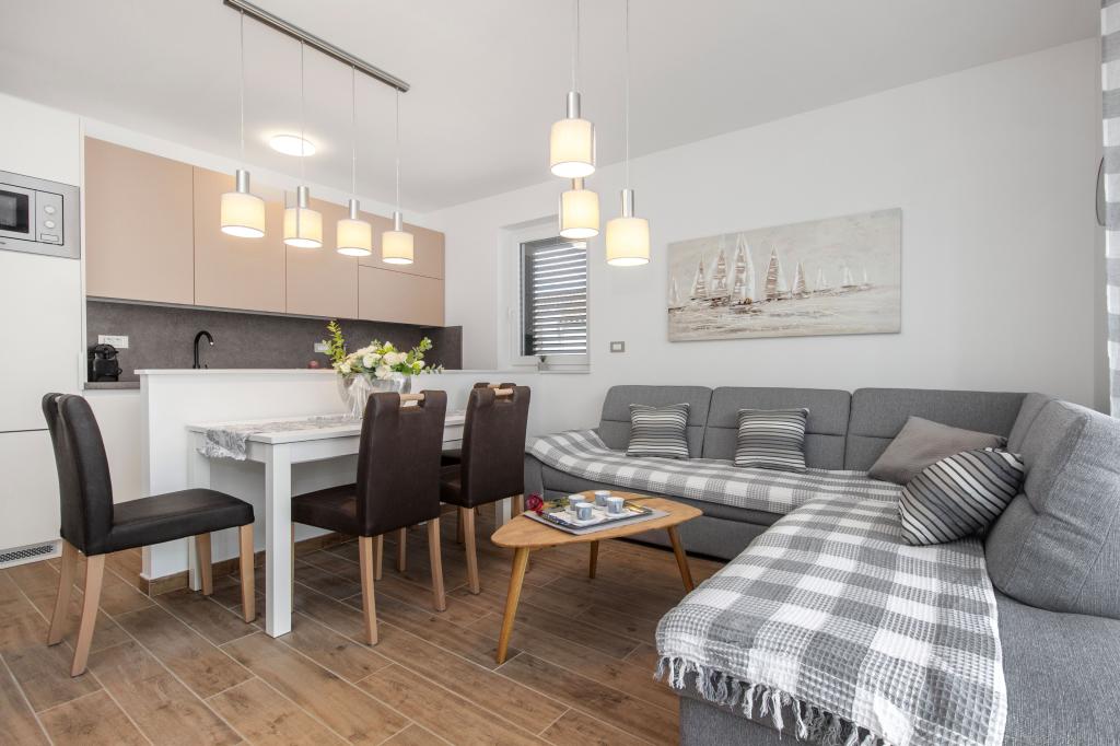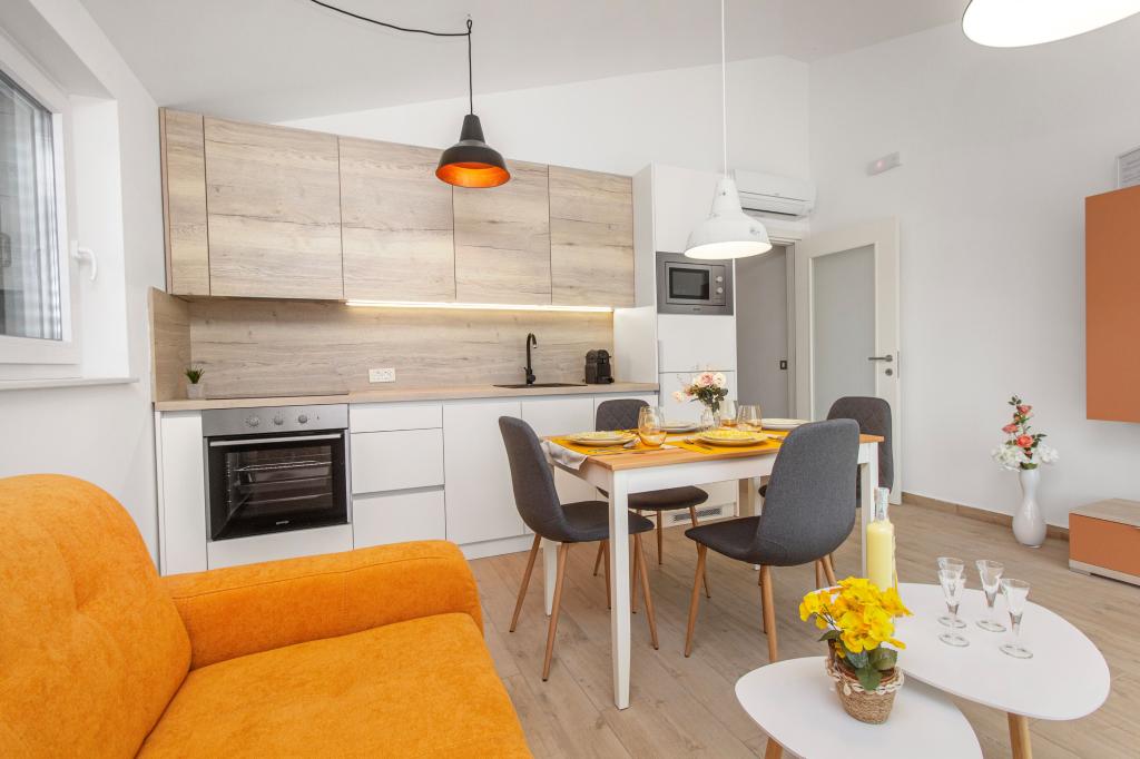 Objekt Tri oljke je novogradnja in svoja vrata gostom prvič odpira poleti 2024. Na dvorišču stavbe rastejo tri stare oljke, les, tako značilen za hrvaško obalo in otoke, iz katerih sadežev se pridobiva olje najboljše kakovosti, pogosto imenovano "tekoče zlato". Ime Tri oljke nakazuje okolje miru, tišine in obilja. Apartmaji v objektu so edinstveni, moderni in popolnoma funkcionalno opremljeni, da se boste počutili udobno, kot v svojem domu! Objekt je odlično pozicioniran; nahaja se 150m od morja in 200m od centra mesta. V neposredni bližini ni večjih cest ali poslovnih objektov, zato je gostom zagotovljen mir podnevi in ponoči. Skratka, vse je pripravljeno za vaš popoln dopust.