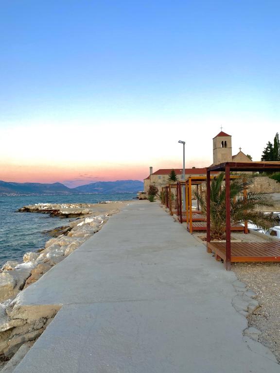 Apartma Bubble se nahaja v Mastrinci - Trogir (otok Čiovo) v majhni stavbi, le 5 minut hoje od morja (250 m vzpona) in plaže, kjer lahko najdete veliko sence. Plaža ima tudi veliko udobja (kavarne, napihljivi čolni v morju itd.). Apartma je sestavljen iz spalnice, kopalnice, dnevne sobe in kuhinje ter lastnega majhnega ograjenega vrta (30 kvadratnih metrov), v katerem boste uživali ves dan in v prijetnih poletnih nočeh. Stanovanje je klimatizirano in popolnoma opremljeno z vsemi potrebnimi napravami (kavni aparat, kuhalnik vode, toaster...), vključno z vgrajenim vodnim filtrom. Gost ima zagotovljeno parkirno mesto tik pred vhodom v objekt. Neomejen internet, pametna TV. Prenosna otroška posteljica na zahtevo. Hišni ljubljenčki dovoljeni (doplačilo)