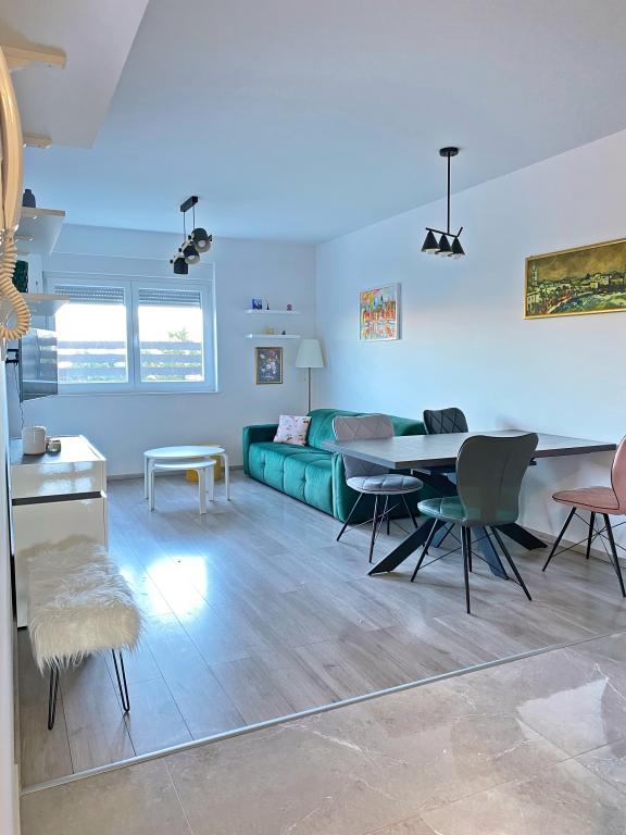 Moderno opremljen apartma v novi stavbi, ki se nahaja v mirni soseski, plaža z naravno senco pa je v neposredni bližini. Priporočam!