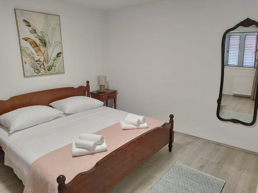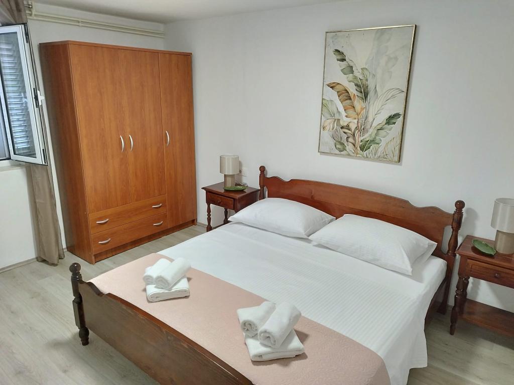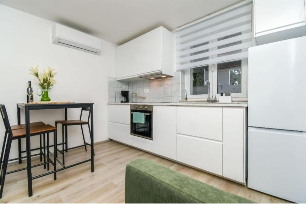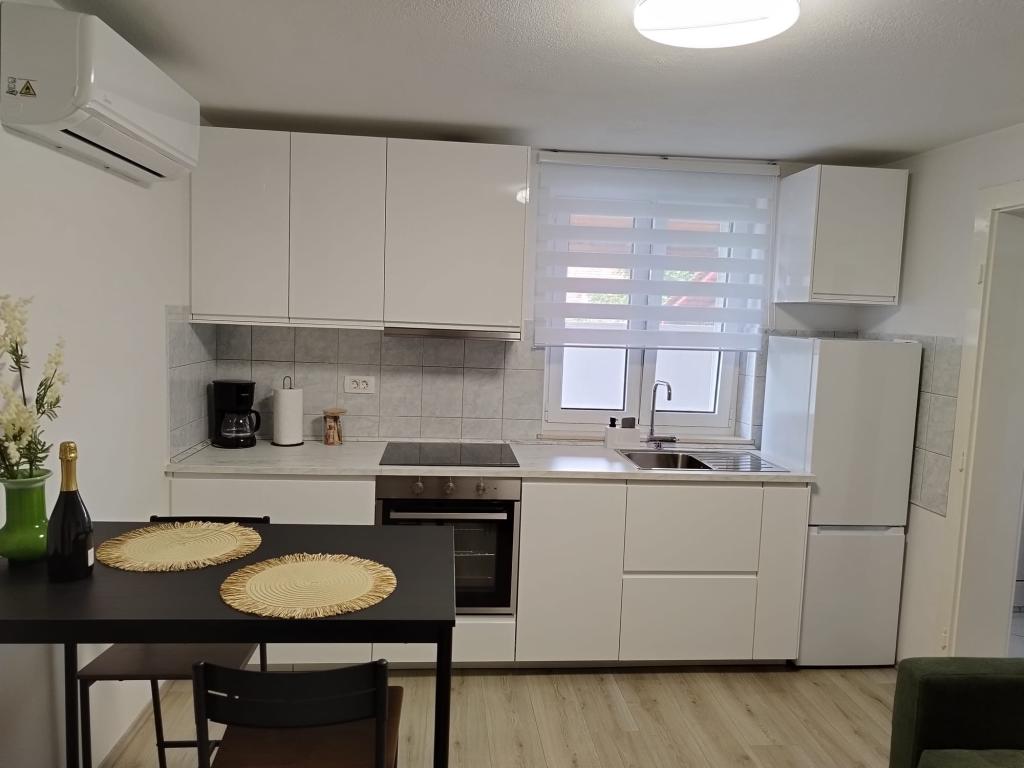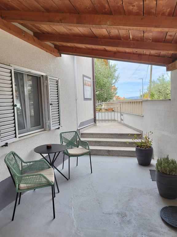 Dobrodošli v apartmaju Žunta. Apartma se nahaja le 5 minut hoje od zgodovinskega središča Trogirja, ki je pod zaščito Unesca. Apartma ima popolnoma opremljeno kuhinjo s pomivalnim strojem in aparatom za kavo. Kopalnico s tušem in sušilcem za lase ter ločeno prostorno spalnico z zakonsko posteljo. Pred apartmajem je terasa za sprostitev z gugalnico. Apartma je del zasebne hiše in ima ločen vhod. Nahajamo se na zelo dobri lokaciji zaradi mirne soseske, poleg tega pa smo zelo blizu mestnega središča, znamenitosti, supermarketov, letališč in plaž, ki jih je veliko v bližini. Namestitev ponuja brezplačno zasebno parkirišče, brezplačen WiFi v celotni nastanitvi in ogrevanje/hlajenje s klimatsko napravo. Apartma je registriran samo za dve osebi.