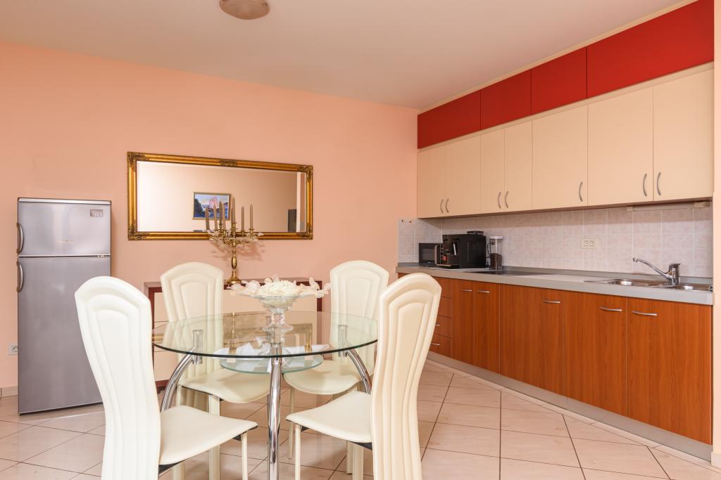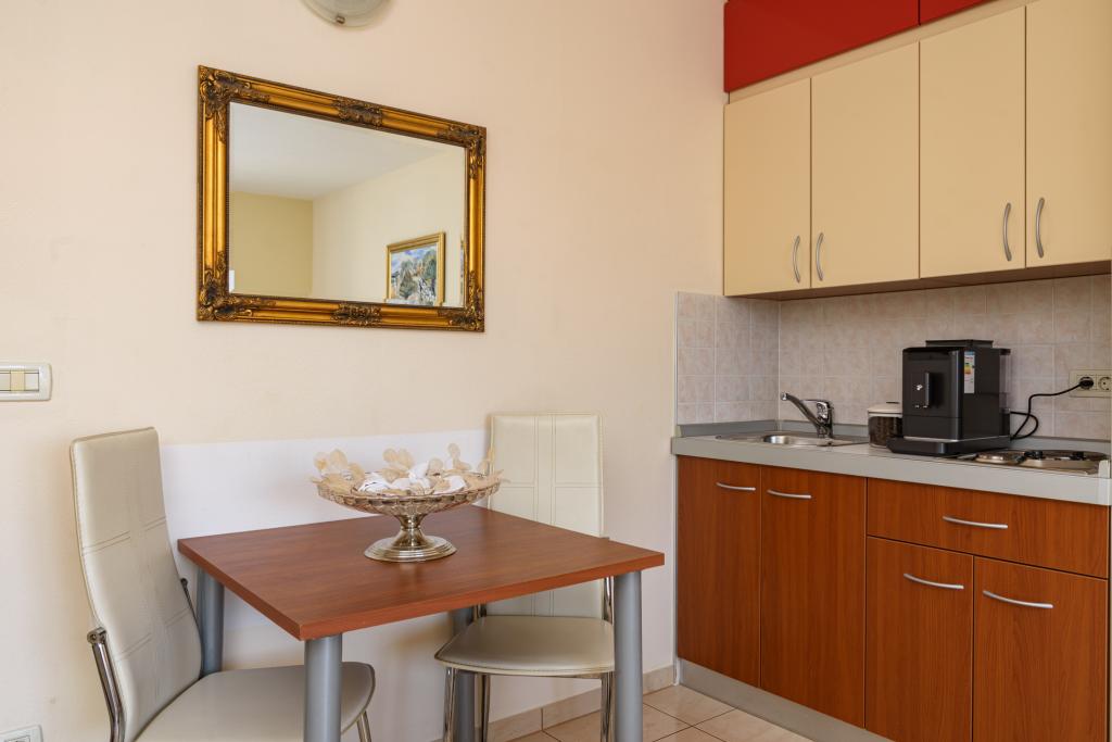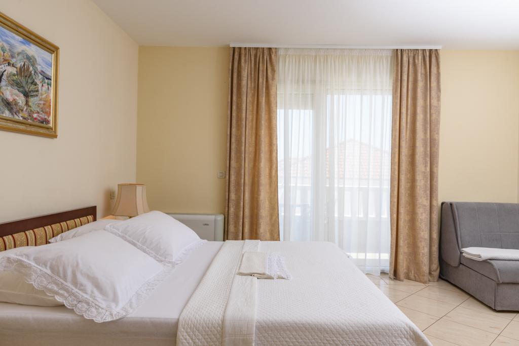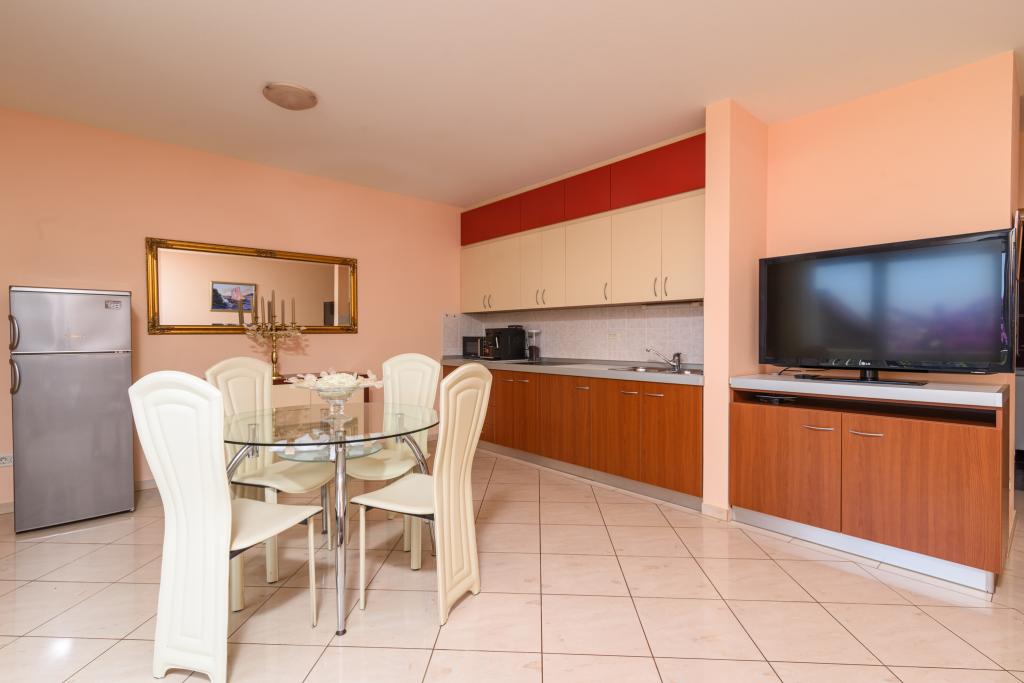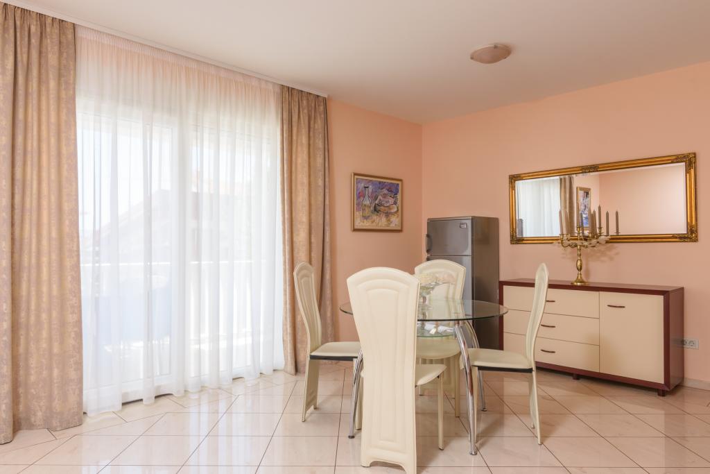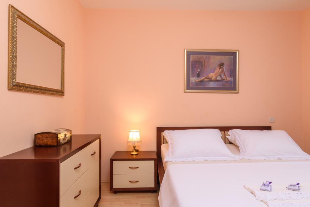 Turistična taksa je vključena v ceno.Apartma A2 tipa 2 (51m2) - Velika dnevna soba s kuhinjo in eno posteljo za dve osebi, eno spalnico, kopalnico in balkon (12m2). Tip apartma / studio apartma A2 1 (30m2) - dnevna soba s kuhinjo, z zakonsko posteljo, kavč razvalčenje eno posteljo, kopalnico in balkon (6,5m2). Tip apartma / studio apartma A2 (26m2) - dnevna soba s kuhinjo, zakonsko posteljo, kopalnica in balkon (6,5m2). Vsi naši gostje lahko uporabljajo žar z lesom peči, ki se nahaja v vrtu in uživajte kosila in večerje v kasnejših urah, v skupni zasebnosti. Za vse goste je zasebna prakig pred hišo.