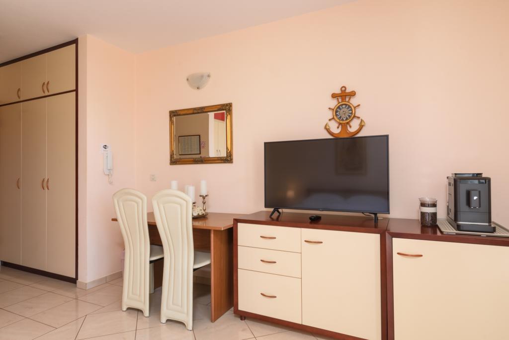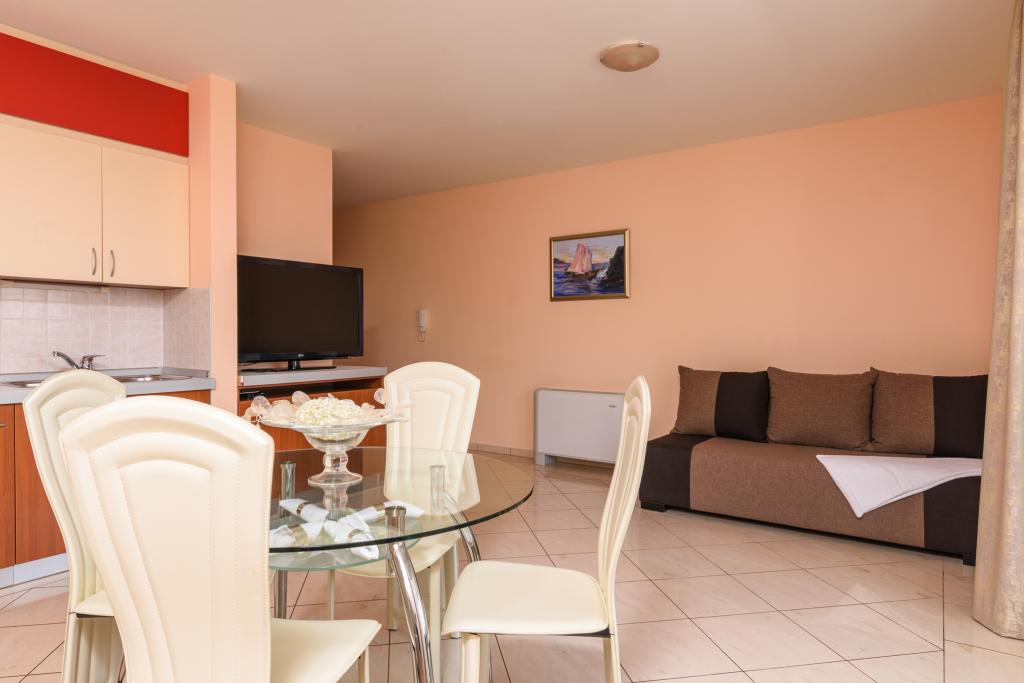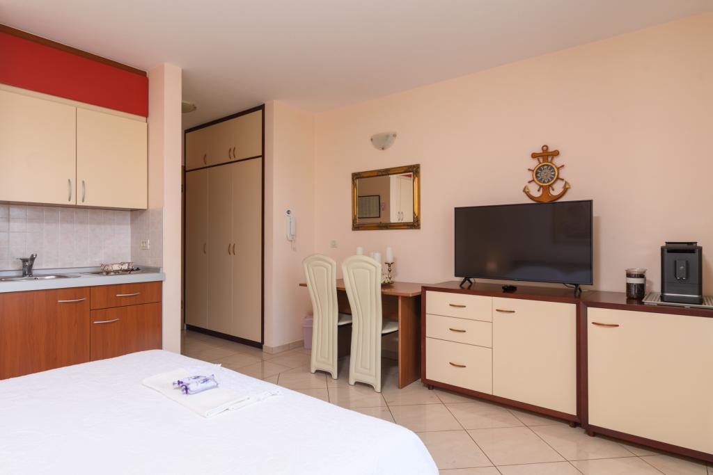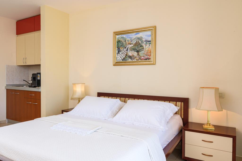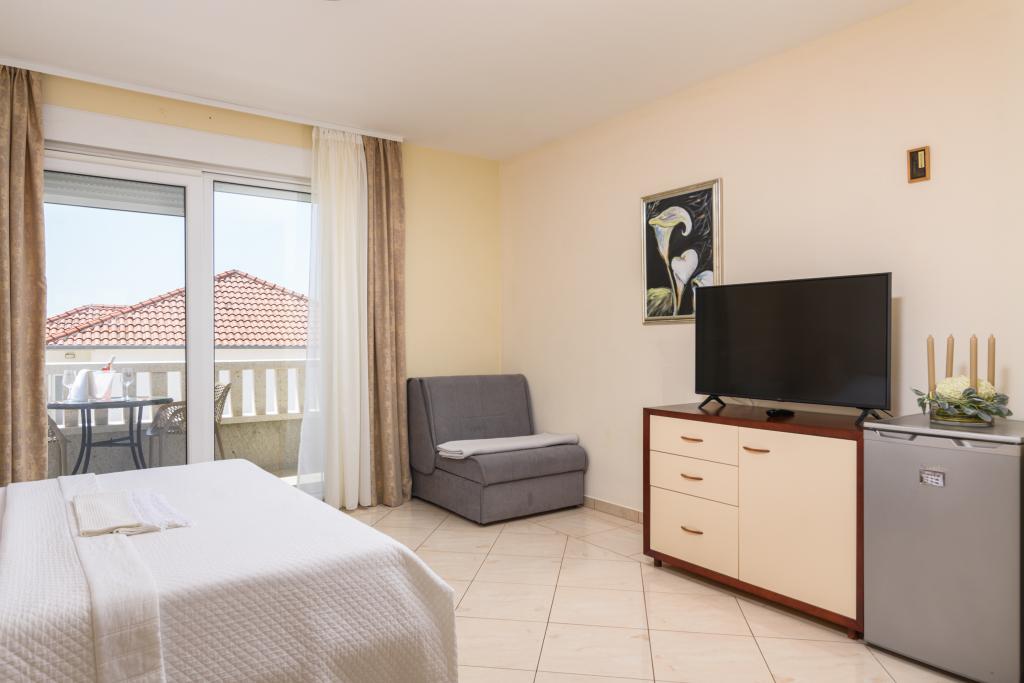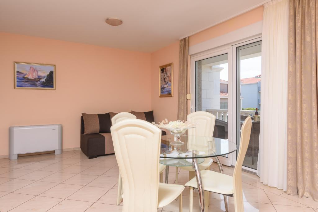 Turistična taksa je vključena v ceno.Apartma A2 tipa 2 (51m2) - Velika dnevna soba s kuhinjo in eno posteljo za dve osebi, eno spalnico, kopalnico in balkon (12m2). Tip apartma / studio apartma A2 1 (30m2) - dnevna soba s kuhinjo, z zakonsko posteljo, kavč razvalčenje eno posteljo, kopalnico in balkon (6,5m2). Tip apartma / studio apartma A2 (26m2) - dnevna soba s kuhinjo, zakonsko posteljo, kopalnica in balkon (6,5m2). Vsi naši gostje lahko uporabljajo žar z lesom peči, ki se nahaja v vrtu in uživajte kosila in večerje v kasnejših urah, v skupni zasebnosti. Za vse goste je zasebna prakig pred hišo.