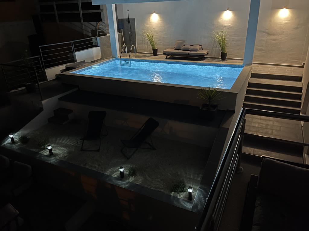Prijava je potekala gladko in gostitelj je bil zelo prijazen in razumevajoč. Apartma in bazen sta bila zelo čista. Opremljen z vsem, kar morda potrebujete. Vse je zaključeno na zelo visoki ravni. Stavba se nahaja na hribu s čudovitim razgledom. Vsekakor priporočamo bivanje tukaj.