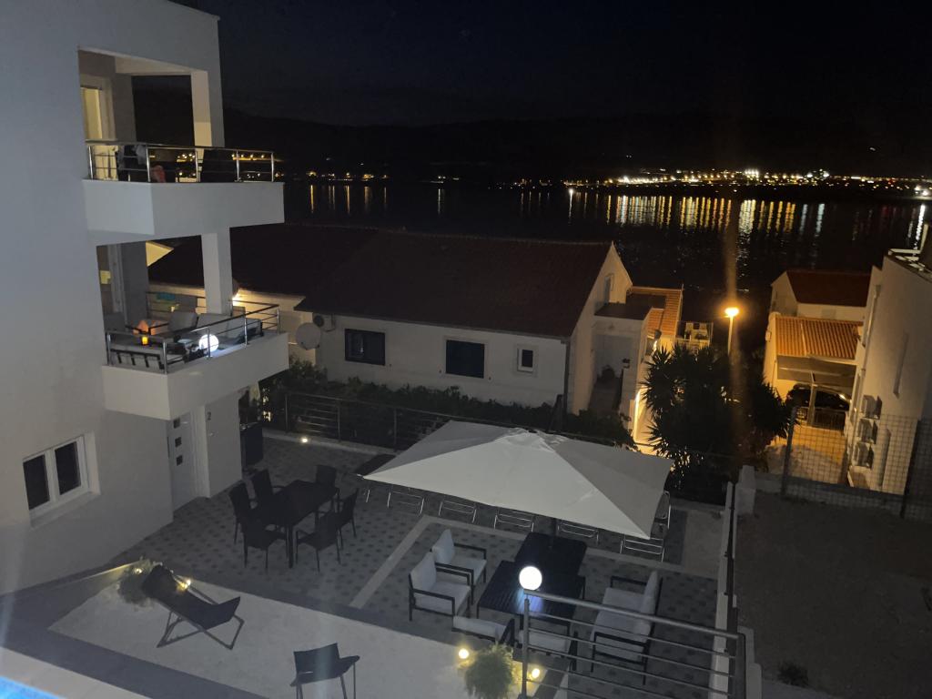 V nastanitvi sva kot par bivala dva tedna. Apartma je popolnoma opremljen in ponuja vse, kar potrebujete za prijetno bivanje. Oprema je moderna in visokokakovostna. Lokacija apartmaja je tudi zelo dobra, nedaleč od plaže, restavracij in trgovin. Mesto Trogir je prav tako v hoje oddaljeno. Z balkona apartmaja se odpira čudovit razgled na morje in letališče Split za njim, kjer lahko opazujete vzletanje in pristajanje letal. Kompleks ima tudi bazen z veliko ležalniki za sončenje in veliko sedeži. Apartma je v celoti klimatiziran in ima osnovne pripomočke, kot so posteljnina, brisače, pralni stroj, detergent in še veliko več. Tukaj smo se počutili zelo udobno in se bomo zagotovo vrnili!! Zelo priporočljivo.
