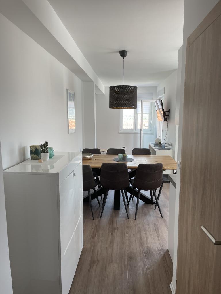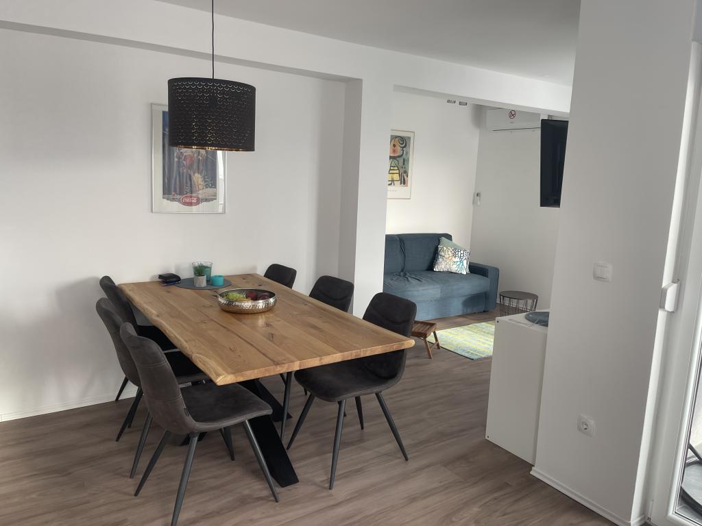 Takoj smo se počutili udobno v stanovanju! Bila je čista, sodobno opremljena (indukcijski štedilnik, pečica-mikro kombo, pralni stroj, pomivalni stroj, klima, hladilnik z zamrzovalnikom, TV) in okusno opremljena. V stanovanju nas je bilo pet z majhnim otrokom in dojenčkom in imeli smo dovolj prostora. Stanovanje se nahaja na pobočju hriba in ponuja čudovit pogled na morje. Do številnih plaž se lahko sprehodite, prav tako pa lahko hitro pridete do privlačnega mesta Trogir. Počitniško razpoloženje vas bo spravilo sprehod ob pristanišču, sprehod po starih zidovih uličic ali večerni obisk restavracije. Apartma je od letališča Split oddaljen le kratko vožnjo. Z najetim avtomobilom lahko enostavno raziščete otok Čiovo, ki ponuja številne čudovite plaže, ali pa se odpravite na enodnevne izlete v okolico. Če vam je ljubše, da je tiho, se lahko zadržite zase v svojem bazenu. Čudovito se lahko sprostite na veliki terasi z jedilno mizo, dnevnim prostorom in ležalniki. Najlepša hvala prijaznim gostiteljem za čudovit čas! Z veseljem se vrnemo!