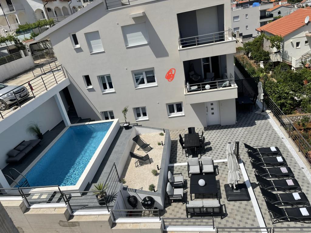 To so bile za nas popolne počitnice! Apartma, kot tudi kompleks in bazen so zelo lepi, moderni, udobni in zelo čisti. Lokacija je zelo mirna z zelo lepim pogledom na morje! Do manjše trgovine z živili se lahko sprehodite. Tudi čudovito mesto Trogir. Do Splita lahko pridete neposredno z ladjo “Buraline” iz Trogirja. Na splošno TOP 10/10! Hvala in morda se spet vidimo!