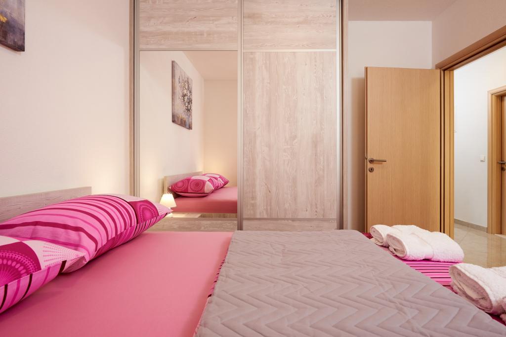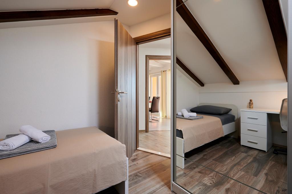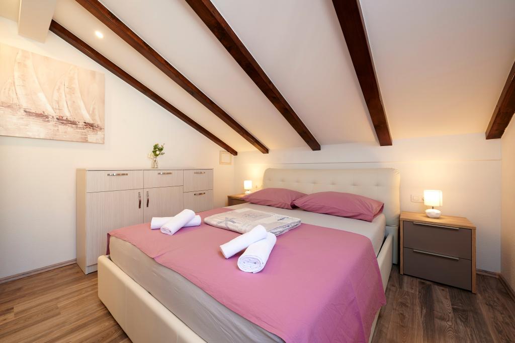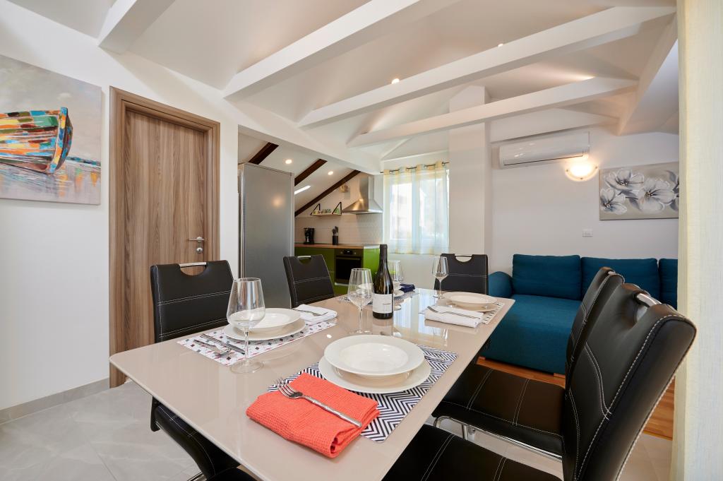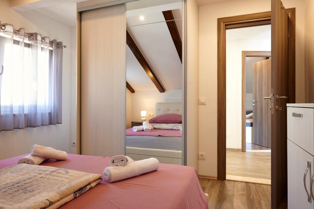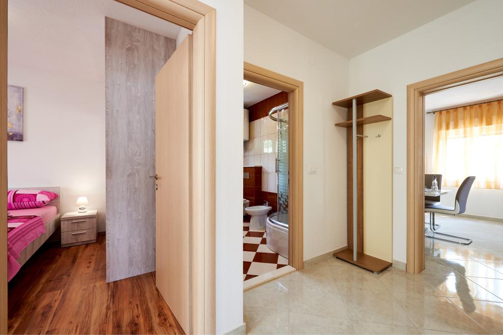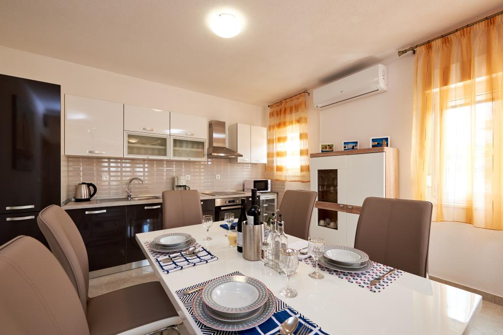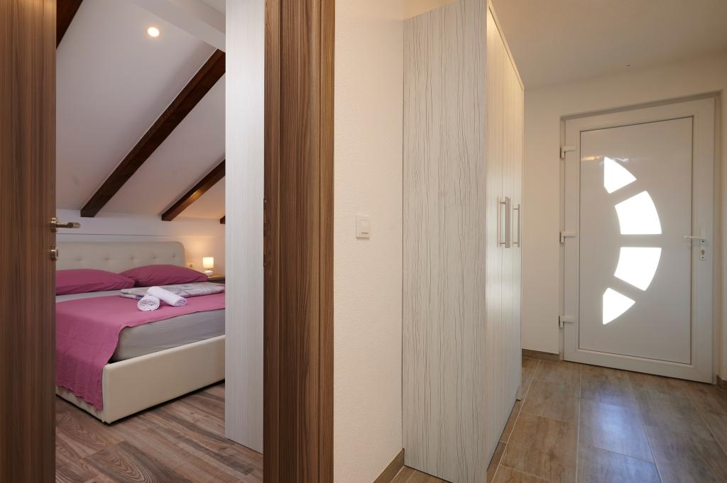 Apartmaji Magdalena so udobni in dobro opremljeni. Nahajajo se na otoku Čiovo, le 1,3 km od središča starega mestnega jedra Trogirja. Imajo čudovit razgled na morje in okolico. Apartmaji se nahajajo v mirni soseski, le 250 m od najbližje plaže. Restavracije, supermarket, bankomat, avtobusna postaja in ladijska linija do centra so oddaljeni 400 m od apartmaja. Do apartmaja vodi cesta, ki se vzpenja na hrib. Oprema vključuje klimatsko napravo, brezplačno parkiranje, WiFi, popolnoma opremljeno kuhinjo, kabelsko televizijo, pralni stroj, pomivalni stroj ... Apartmaja imata površino 75 in 85 kvadratnih metrov ter zunanje terase z udobnimi naslanjači in visečimi gugalnicami v obliki jajca. Apartma 1 se nahaja v prvem nadstropju in ima tri spalnice, medtem ko je apartma 2 v drugem nadstropju in ima dve spalnici ter dve stranišči. Vse je lepo urejeno, čisto in pospravljeno. Apartmaja sta od plaže oddaljena 5 minut hoje, od središča Trogirja pa 15 minut hoje. Bližnja plaža je izhodišče za ladjo, ki vozi do središča mesta, vožnja traja 10 minut.