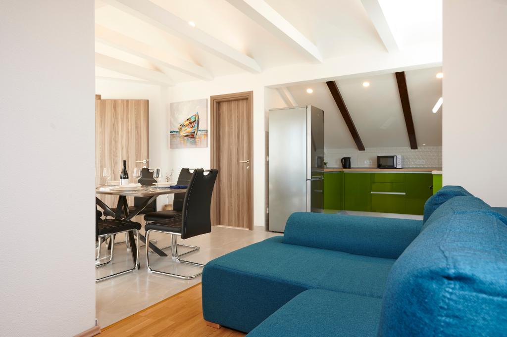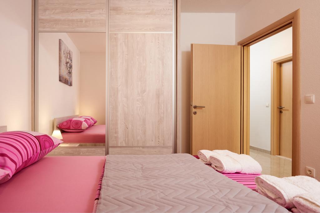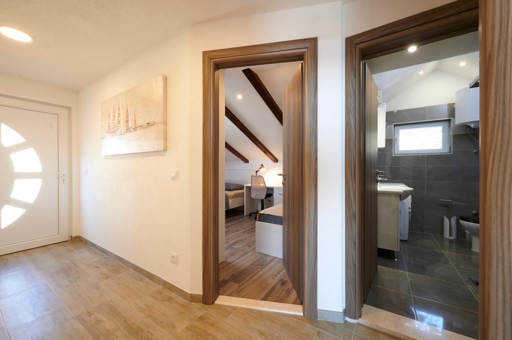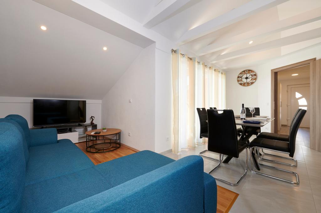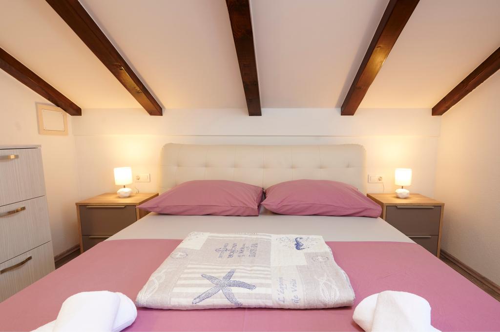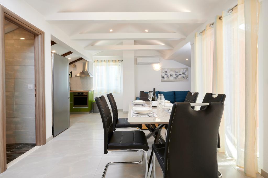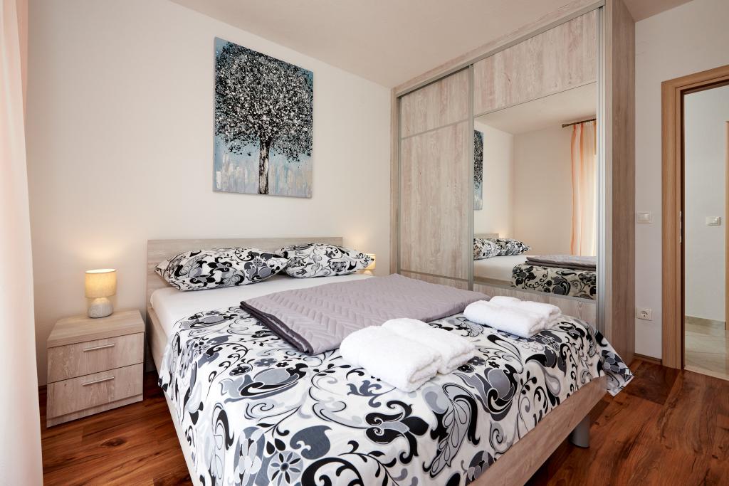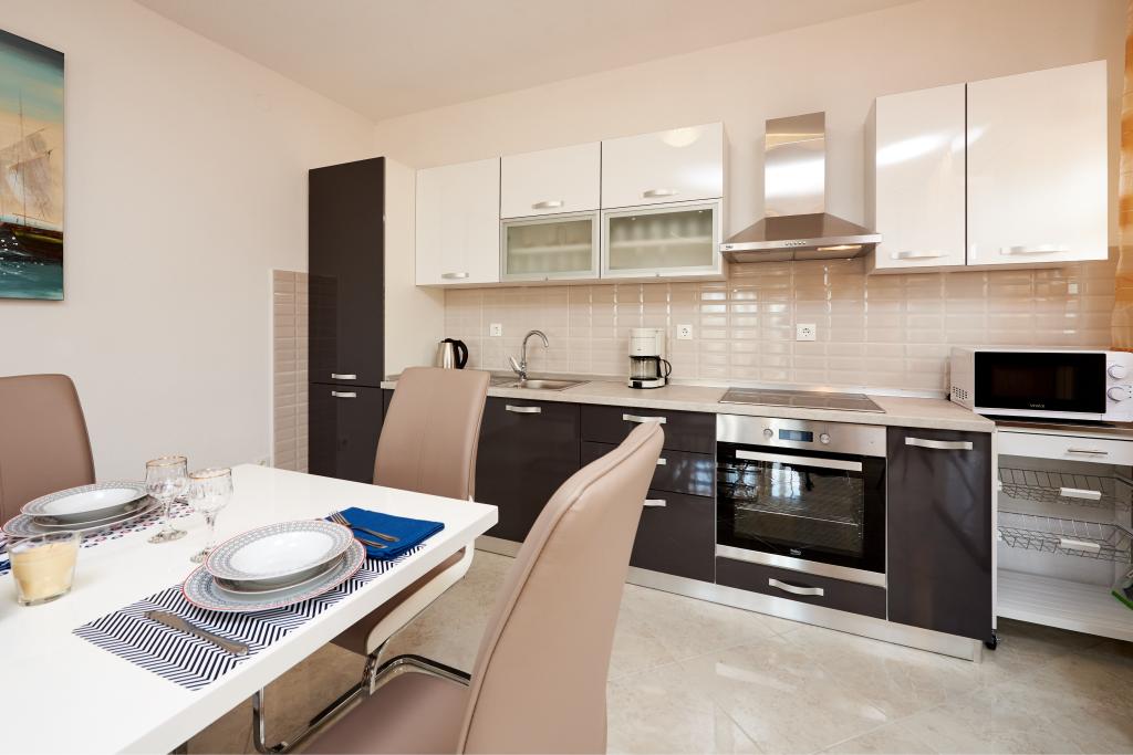 Apartmaji Magdalena so udobni in dobro opremljeni. Nahajajo se na otoku Čiovo, le 1,3 km od središča starega mestnega jedra Trogirja. Imajo čudovit razgled na morje in okolico. Apartmaji se nahajajo v mirni soseski, le 250 m od najbližje plaže. Restavracije, supermarket, bankomat, avtobusna postaja in ladijska linija do centra so oddaljeni 400 m od apartmaja. Do apartmaja vodi cesta, ki se vzpenja na hrib. Oprema vključuje klimatsko napravo, brezplačno parkiranje, WiFi, popolnoma opremljeno kuhinjo, kabelsko televizijo, pralni stroj, pomivalni stroj ... Apartmaja imata površino 75 in 85 kvadratnih metrov ter zunanje terase z udobnimi naslanjači in visečimi gugalnicami v obliki jajca. Apartma 1 se nahaja v prvem nadstropju in ima tri spalnice, medtem ko je apartma 2 v drugem nadstropju in ima dve spalnici ter dve stranišči. Vse je lepo urejeno, čisto in pospravljeno. Apartmaja sta od plaže oddaljena 5 minut hoje, od središča Trogirja pa 15 minut hoje. Bližnja plaža je izhodišče za ladjo, ki vozi do središča mesta, vožnja traja 10 minut.