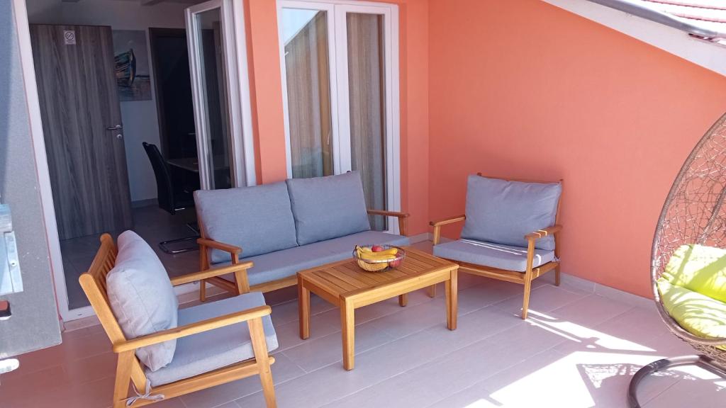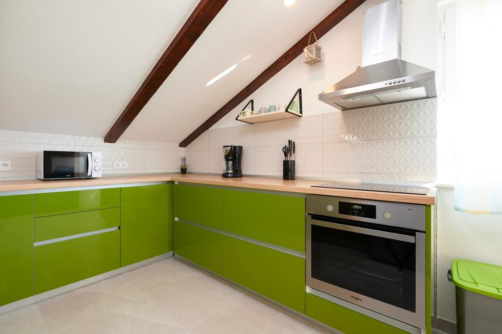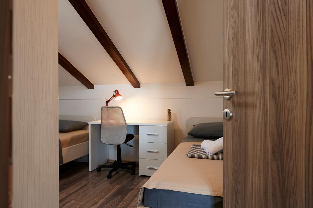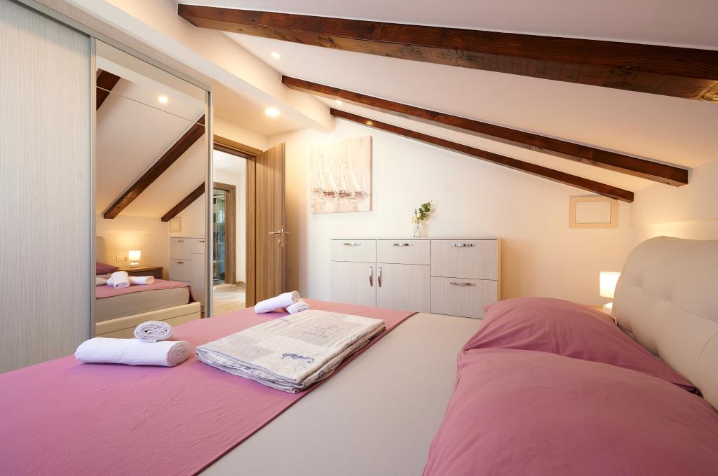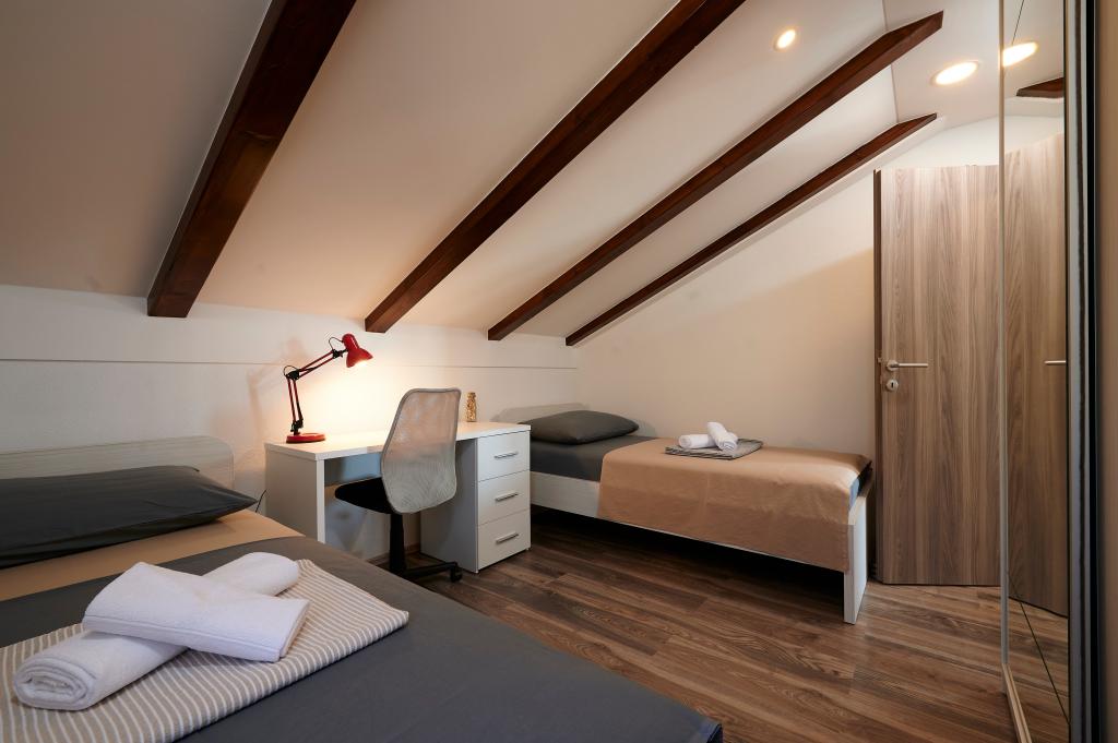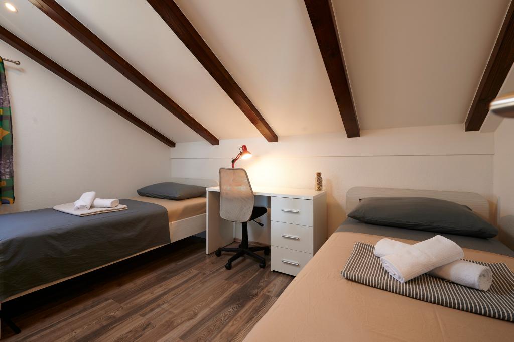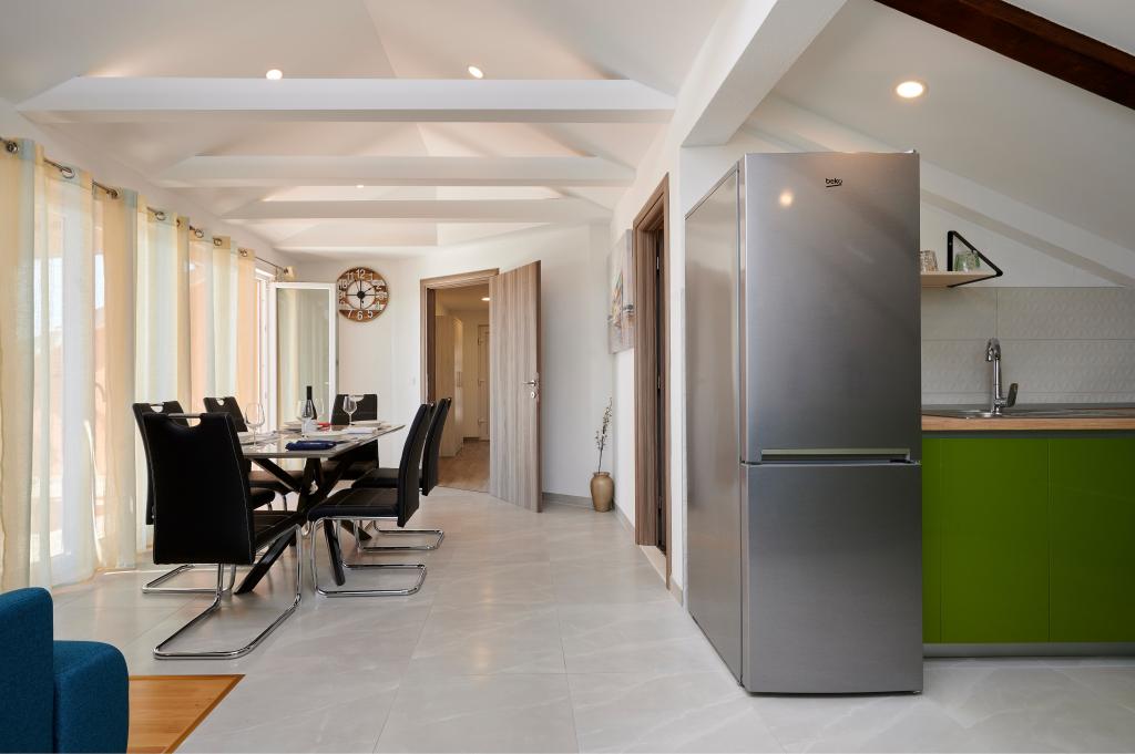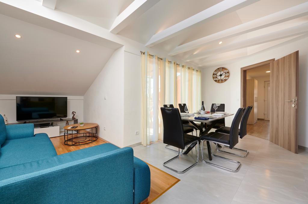 Apartmaji Magdalena so udobni in dobro opremljeni. Nahajajo se na otoku Čiovo, le 1,3 km od središča starega mestnega jedra Trogirja. Imajo čudovit razgled na morje in okolico. Apartmaji se nahajajo v mirni soseski, le 250 m od najbližje plaže. Restavracije, supermarket, bankomat, avtobusna postaja in ladijska linija do centra so oddaljeni 400 m od apartmaja. Do apartmaja vodi cesta, ki se vzpenja na hrib. Oprema vključuje klimatsko napravo, brezplačno parkiranje, WiFi, popolnoma opremljeno kuhinjo, kabelsko televizijo, pralni stroj, pomivalni stroj ... Apartmaja imata površino 75 in 85 kvadratnih metrov ter zunanje terase z udobnimi naslanjači in visečimi gugalnicami v obliki jajca. Apartma 1 se nahaja v prvem nadstropju in ima tri spalnice, medtem ko je apartma 2 v drugem nadstropju in ima dve spalnici ter dve stranišči. Vse je lepo urejeno, čisto in pospravljeno. Apartmaja sta od plaže oddaljena 5 minut hoje, od središča Trogirja pa 15 minut hoje. Bližnja plaža je izhodišče za ladjo, ki vozi do središča mesta, vožnja traja 10 minut.
