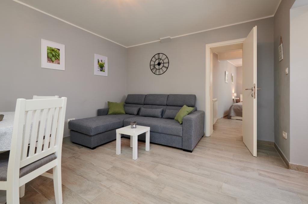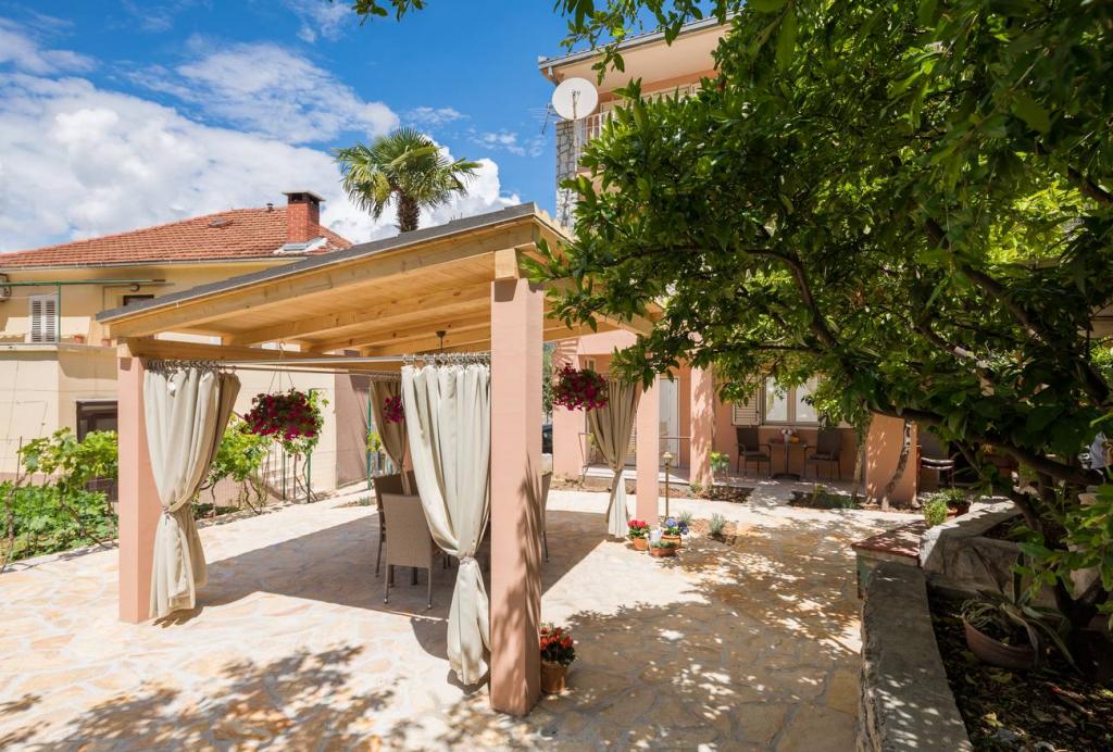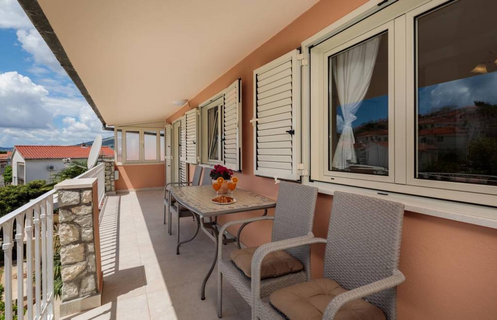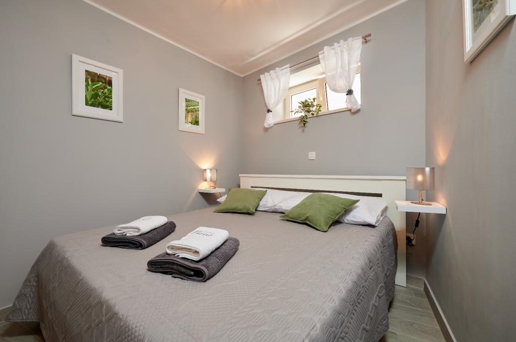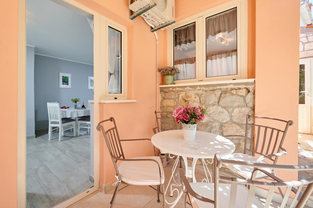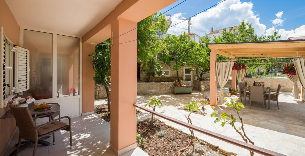 Apartmaji Oaza se nahajajo na severni strani polotoka Čiova, ki je s 3 mostovi povezan z zgodovinskim jedrom Trogirja in celino. Naša hiša je le 5 minut hoje od središča Trogirja. Dobra lokacija apartmaja omogoča hiter in enostaven dostop do centra mesta kot tudi do plaž, ki se raztezajo po dolžini celotnega polotoka. V neposredni bližini naših apartmajev se nahajajo trgovine, pekarna, pošta, lekarna, restavracije s ponudbo dalmatinskih specialitet, kavarne in avtobusna postaja. Apartma 2+2 (za max. 4 osebe) Nahaja se v drugem nadstropju. Apartma ima popolnoma opremljeno kuhinjo, povezano z dnevno sobo, kopalnico s tušem in dve dvoposteljni sobi - ena z zakonsko posteljo in druga z dvema ločenima posteljama. Apartma ima 2 balkona, južni s pogledom na zeleno površino polotoka Čiovo in vrt ter severni s pogledom na morje, Trogir in planino Kozjak. Studio 3 (za max. 3 osebe) Nahaja se v pritličju naše družinske hiše. Apartma ima popolnoma opremljeno kuhinjo in kopalnico