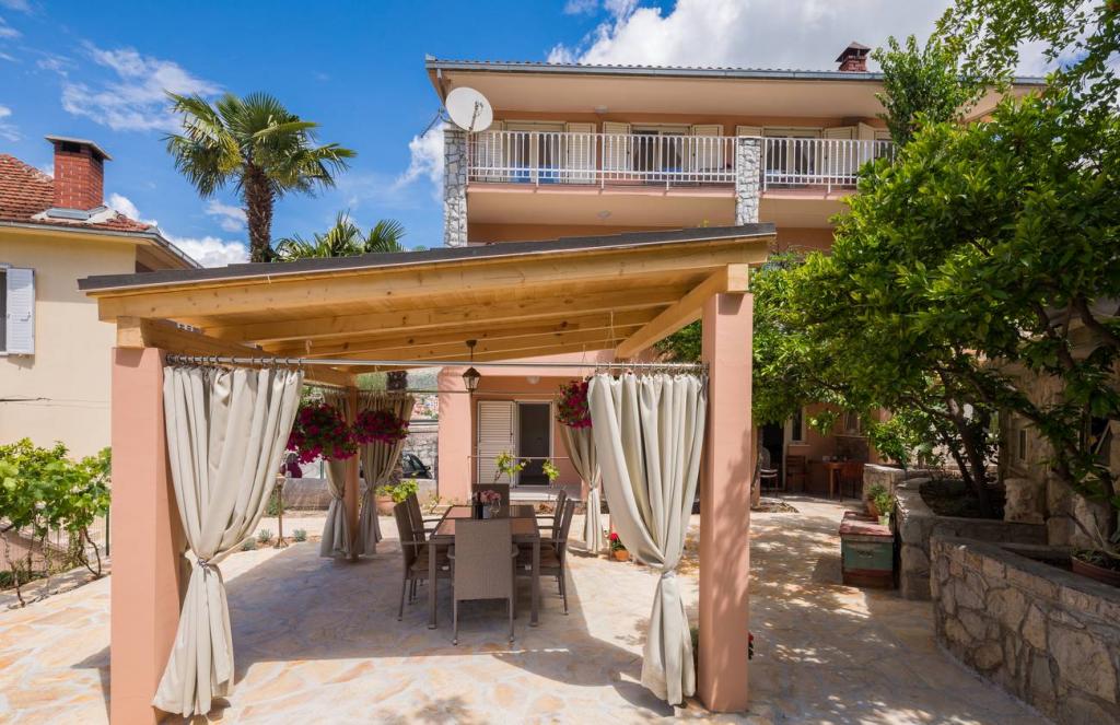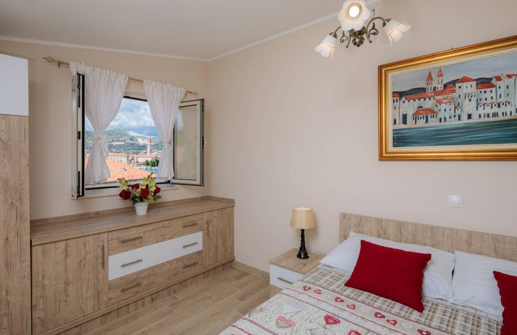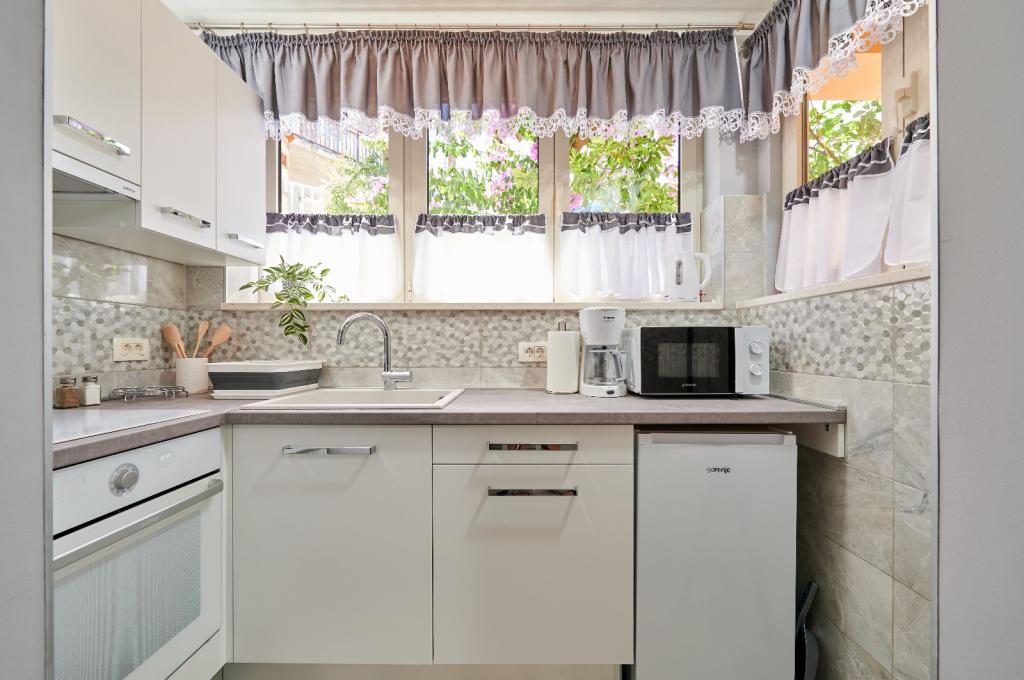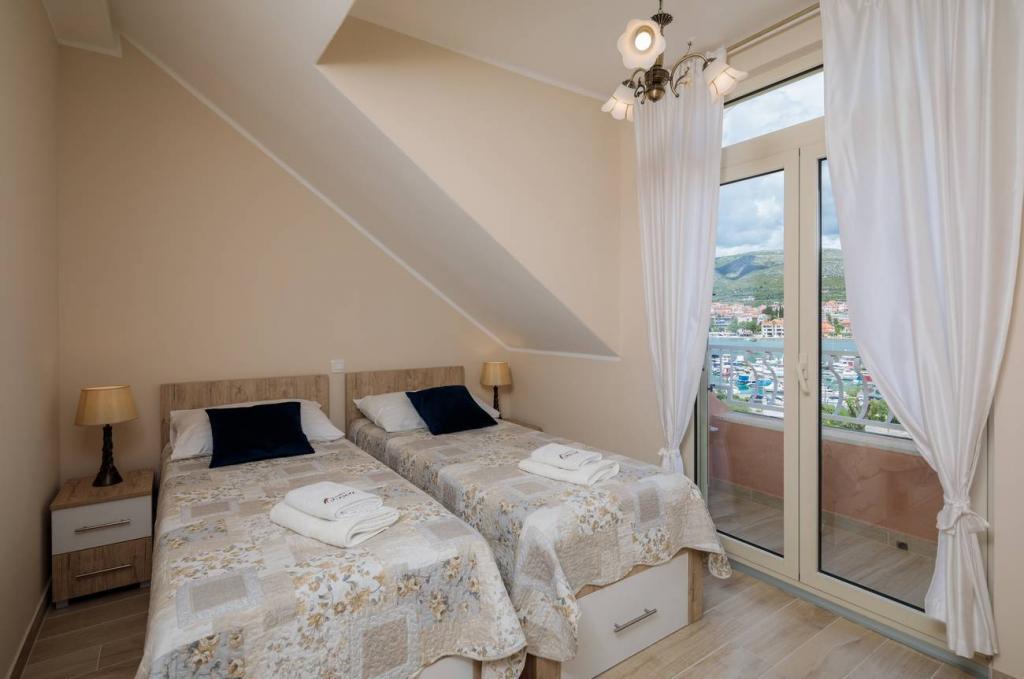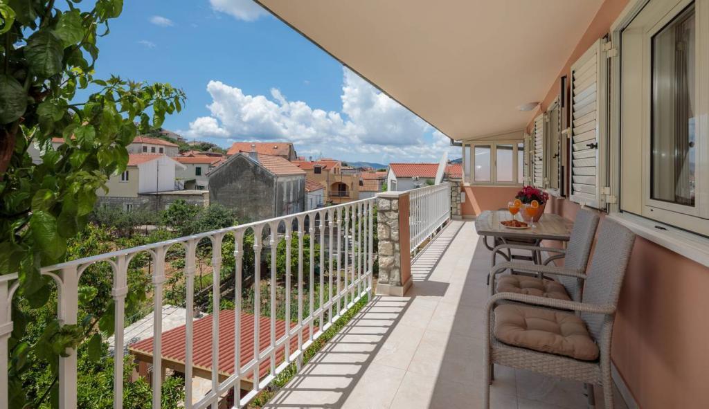 Apartmaji Oaza se nahajajo na severni strani polotoka Čiova, ki je s 3 mostovi povezan z zgodovinskim jedrom Trogirja in celino. Naša hiša je le 5 minut hoje od središča Trogirja. Dobra lokacija apartmaja omogoča hiter in enostaven dostop do centra mesta kot tudi do plaž, ki se raztezajo po dolžini celotnega polotoka. V neposredni bližini naših apartmajev se nahajajo trgovine, pekarna, pošta, lekarna, restavracije s ponudbo dalmatinskih specialitet, kavarne in avtobusna postaja. Apartma 2+2 (za max. 4 osebe) Nahaja se v drugem nadstropju. Apartma ima popolnoma opremljeno kuhinjo, povezano z dnevno sobo, kopalnico s tušem in dve dvoposteljni sobi - ena z zakonsko posteljo in druga z dvema ločenima posteljama. Apartma ima 2 balkona, južni s pogledom na zeleno površino polotoka Čiovo in vrt ter severni s pogledom na morje, Trogir in planino Kozjak. Studio 3 (za max. 3 osebe) Nahaja se v pritličju naše družinske hiše. Apartma ima popolnoma opremljeno kuhinjo in kopalnico