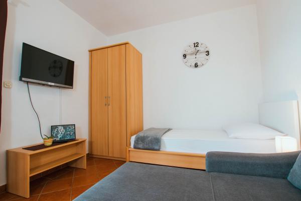 Apartmaji Sara se nahajajo na otoku Čiovo, v vasi Mastrinka, ki je 3 km oddaljena od mesta Trogir. Oddaljenost od morja je 20 m. Plaža je primerna za otroke in odrasle, saj ima veliko naravne sence. Plaža je prodnata in delno betonska. Morje ni globoko, zato je primerno za otroke. Supermarket je oddaljen 40 m od apartmaja. Vsak apartma ima svoje zasebno parkirišče, klimatsko napravo in brezžični internet. Za vsa dodatna vprašanja nam pošljite e-pošto. Odgovorili vam bomo v najkrajšem možnem času. Hvala. Družina Belas.
