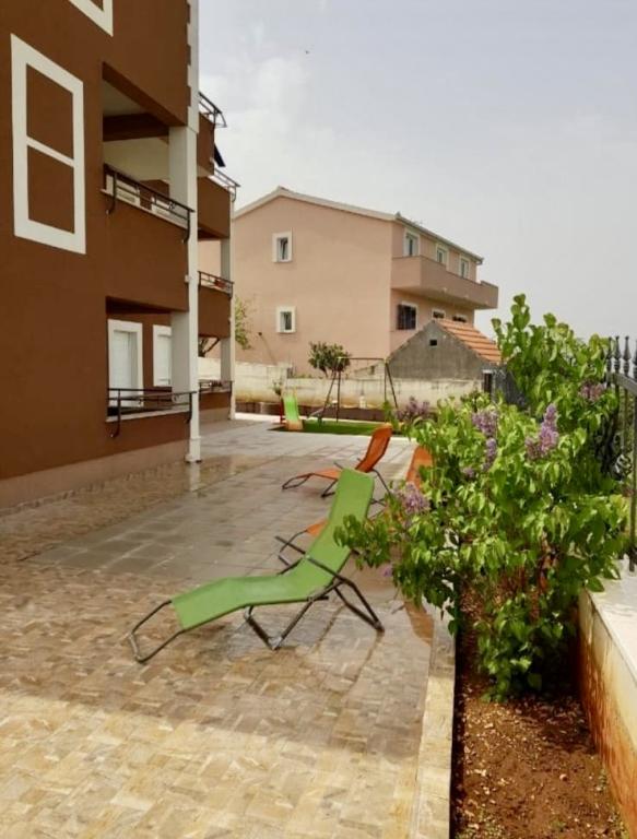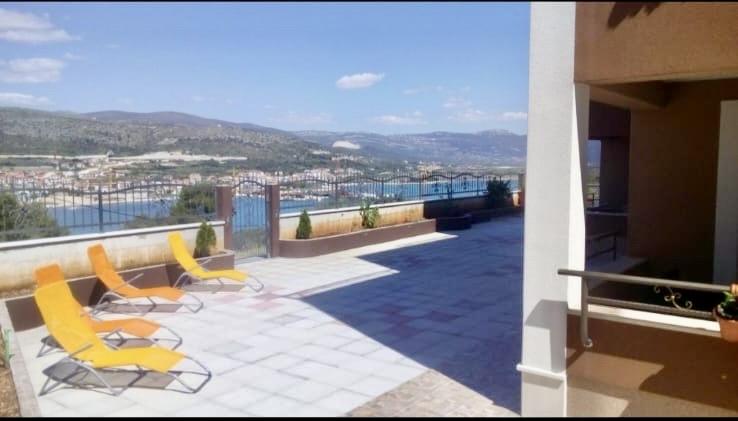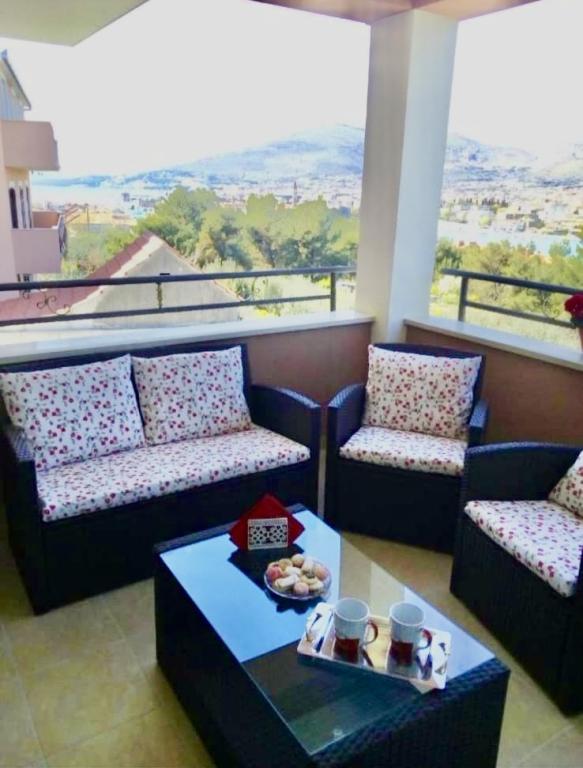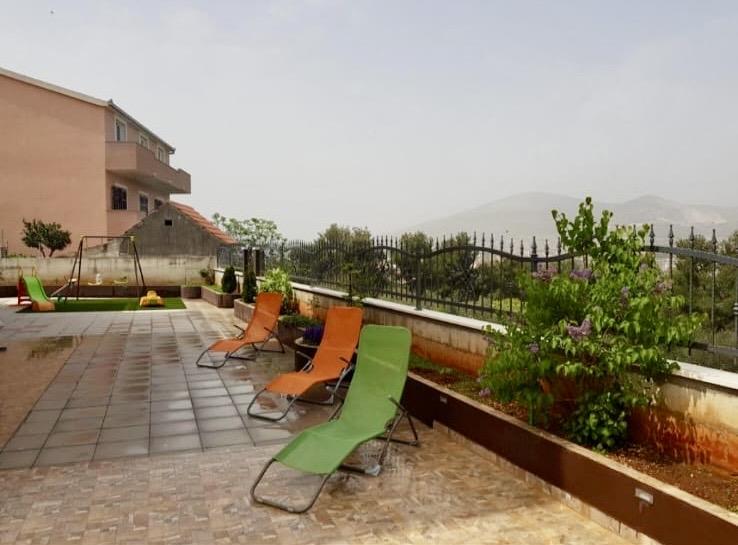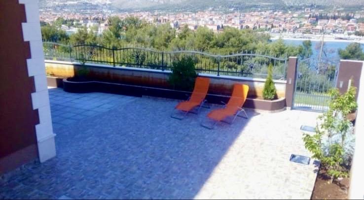 Moderno opremljeni apartmaji na mirnem hribu s čudovitim pogledom na morje in mesto Trogir. Hiša se nahaja le 10 minut hoje od centra mesta in vseh najboljših restavracij. Prodnata plaža je oddaljena le 150 m po poti skozi gozd.