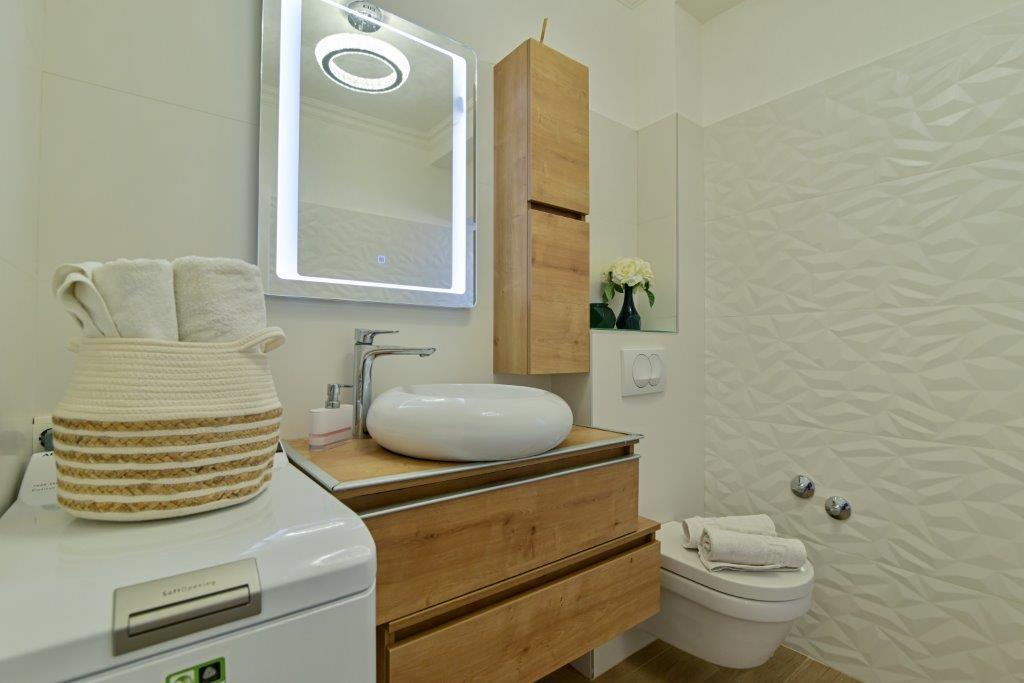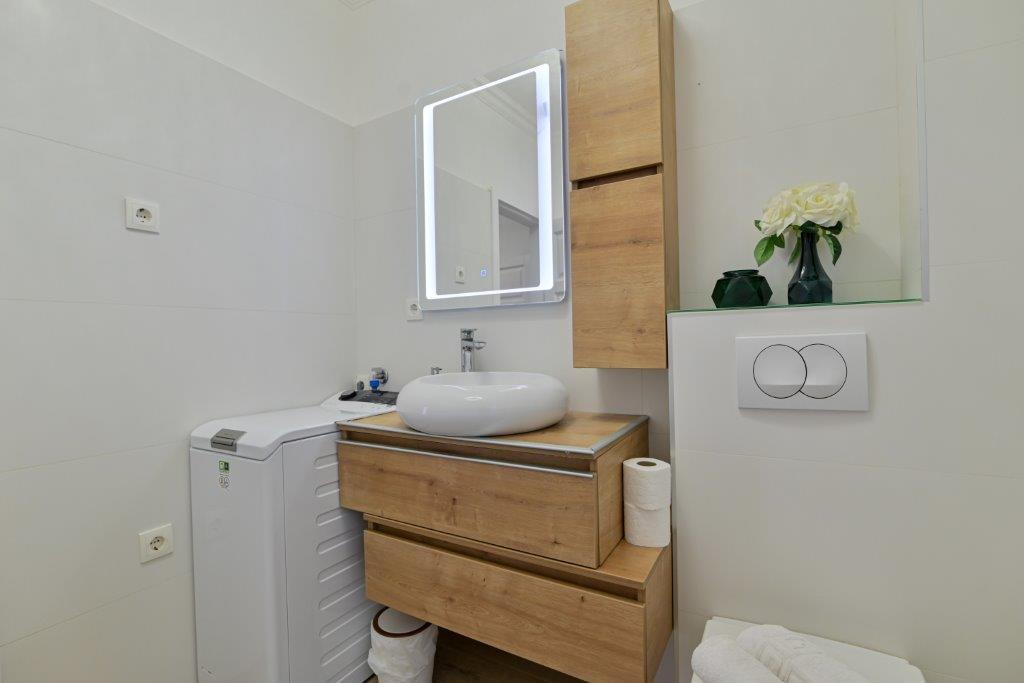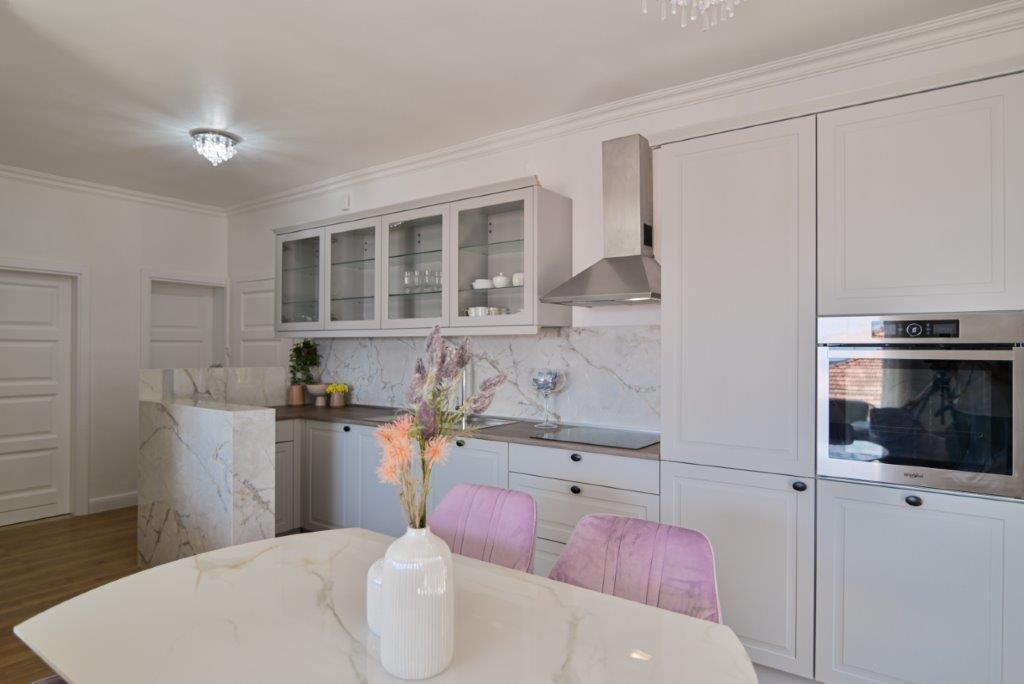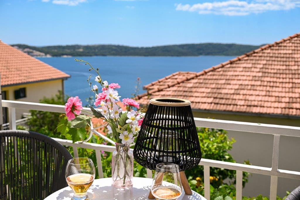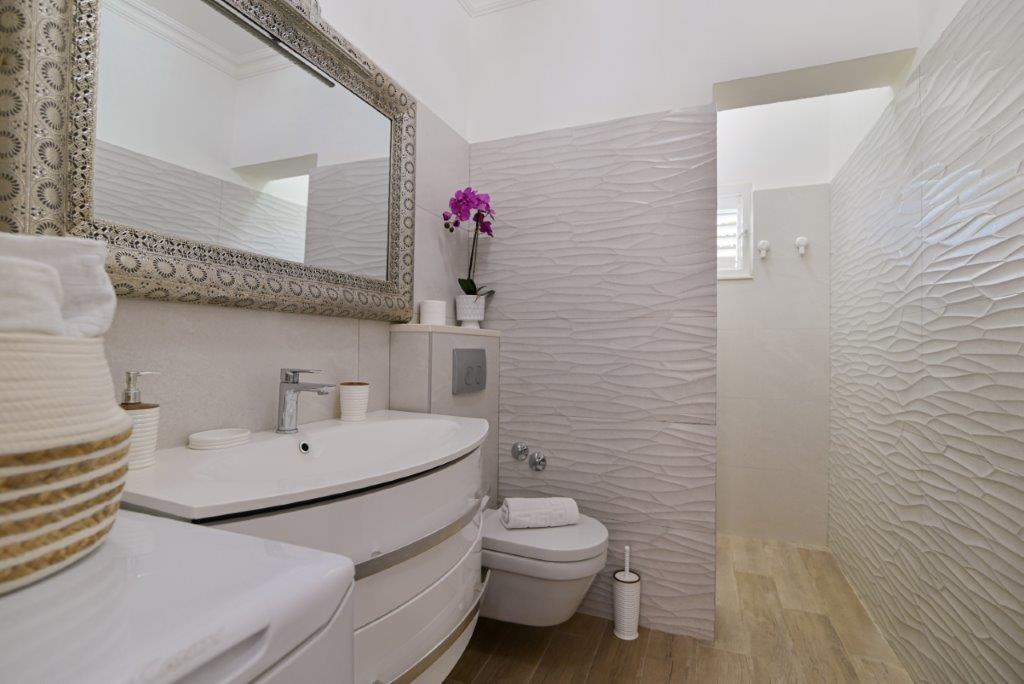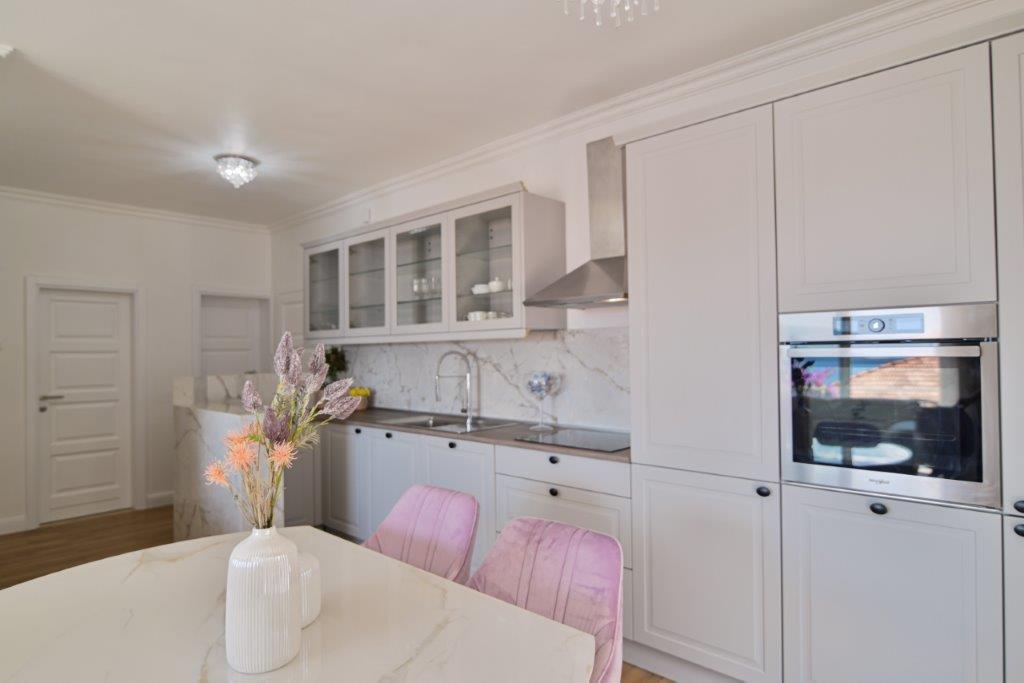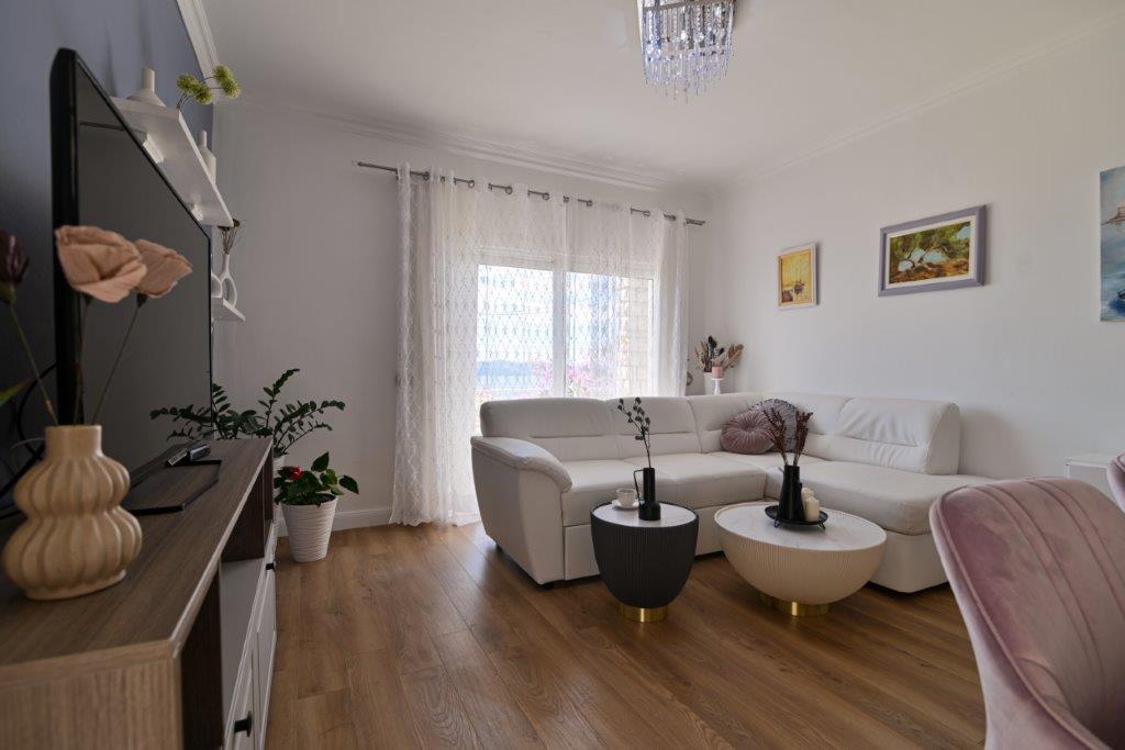 To je hiša z tekskluzivna stanovanj. To se nahaja v privlačen del mesta. Južni strani otoka Čiovo (z mostom povezan z obalo in lepe mesta Trogir (UNESCO)). Hiša se nahaja v Mirnyi soseski, stran od morja (plaže z borovci), nekaj 200m od atraktivni mestni plaži v Okrug Gornji približno 700m. Oddaljenost od restavracij in trgovin je bila zaključena 150m, bolnišnica, pošta in vsi objekti se nahajajo v centru mesta, ki se nahaja približno 15 minut. hojo in nekaj 5 km od letališča Split (ponujajo prevoz od letališča po predhodnem dogovoru z lastniki). Hiša ima dva apartmaja. Vsak je v celoti opremljen in ima čudovit pogled na morje. Ena je kategoriziran s 4 zvezdicami. To se nahaja v pritličju ima teraso in dva balkona. 2 spalnici, dnevna soba s kavčem, jedilnico in kuhinjo ter 2 kopalnici. Opremljen s popolnoma (klimatsko napravo, brezžični internet, satelitsko televizijo, pralni stroj, vsi gospodinjski aparati, parkirišče ... a. Drugi je kategoriziran s 3 zvezdicami. Je prva
