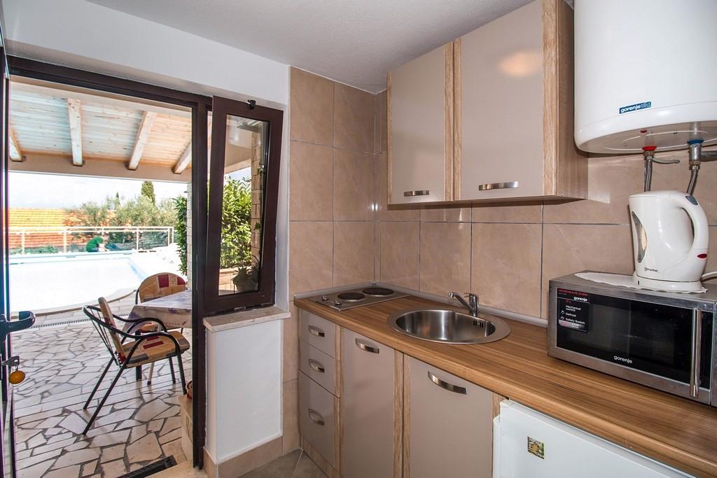 Iz srca priporočam bivanje tukaj. To je bil naš tretji obisk Hrvaške, vsako leto drug kraj, a šele letos sem začutil, da se želim tja vrniti. To je v veliki meri posledica gostiteljev, ki so nas tako toplo sprejeli, nam vsak dan ponudili koristne nasvete in se nasmehnili. Njihova gostoljubnost in možnost, da smo poskusili njihove izdelke, nas je vedno znova presenetila. čiste sobe, udobne postelje. Trgovina z živili, pekarna le nekaj korakov od hiše Sprva, preden smo našli ta kraj, so moji prijatelji vztrajali, da imajo bazen pri hiši, do česar sem bil skeptičen in sem se spraševal: "Zakaj potrebujem bazen ob Jadranskem morju?" Zdaj pa vem, da je to zelo priročno, da se ohladimo, zaplavamo in poležavamo na ležalniku. Plaža je blizu, kjer lahko vsakdo najde nekaj zase, kjer se lahko uživa na soncu ali pa se skrije v senci. Mesto samo je intimno, brez gneče ali hrupa. Veliko je krajev za sprehode in prehranjevanje.