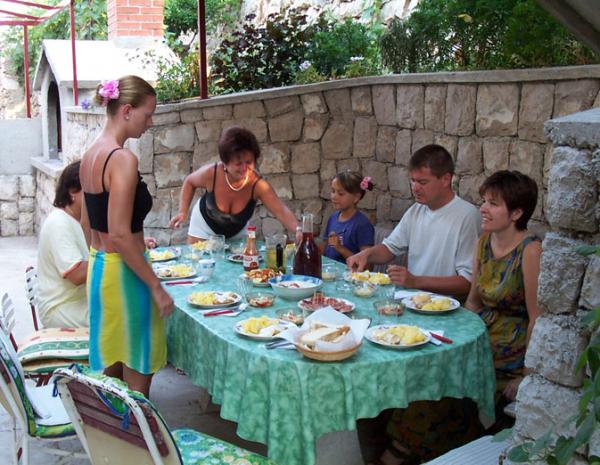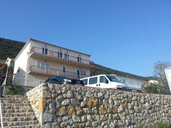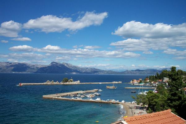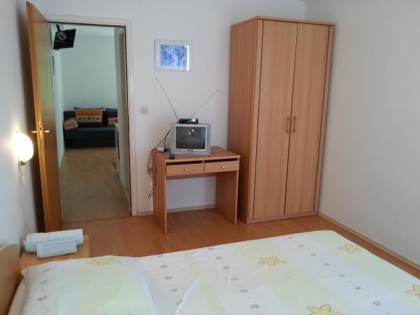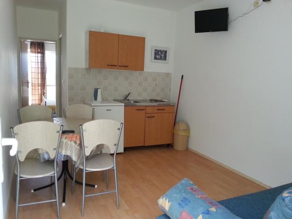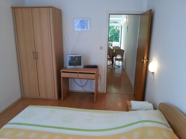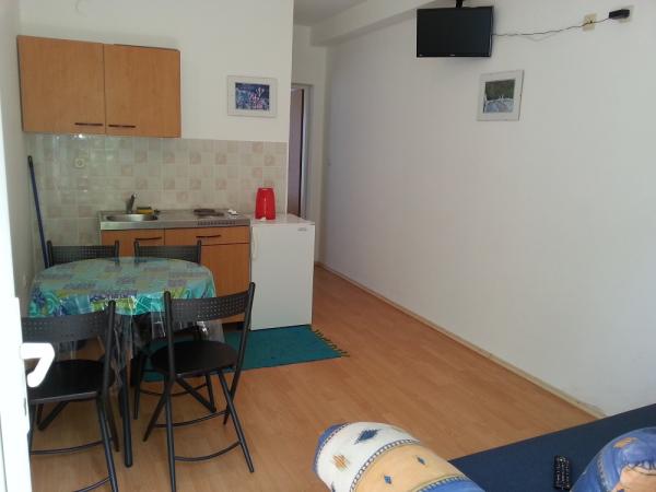 Majo apartmaji imajo balkon s čudovitim pogledom na mesto in morje in se nahaja le 5 minut hoje do plaže. Velika terasa z mizami in žar je primerna za dve družini podaljšanja.