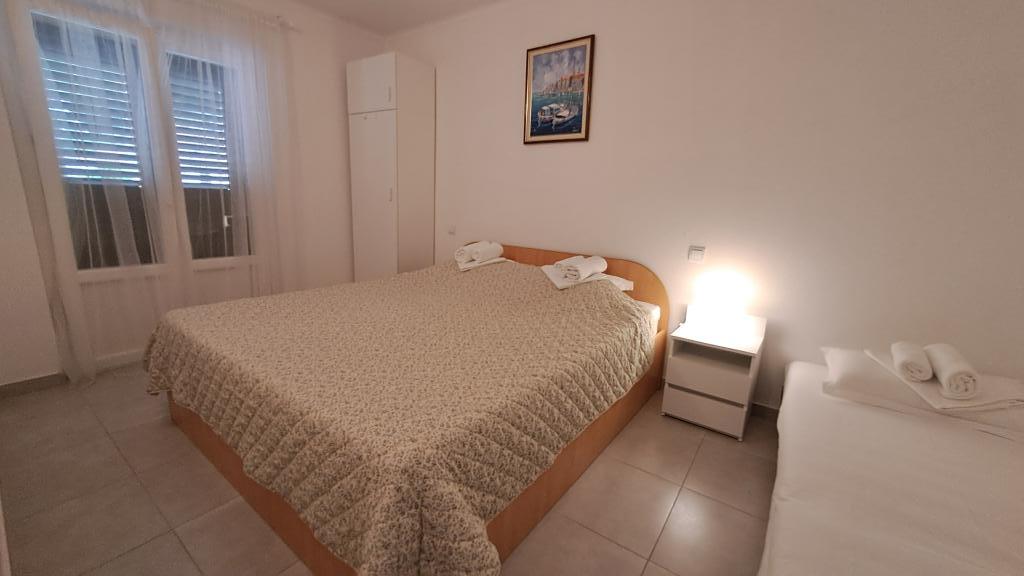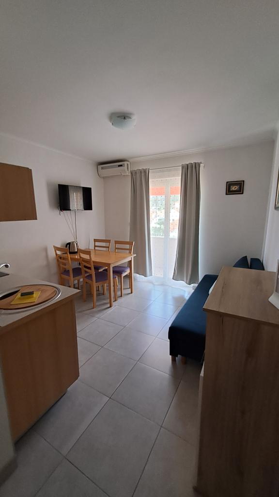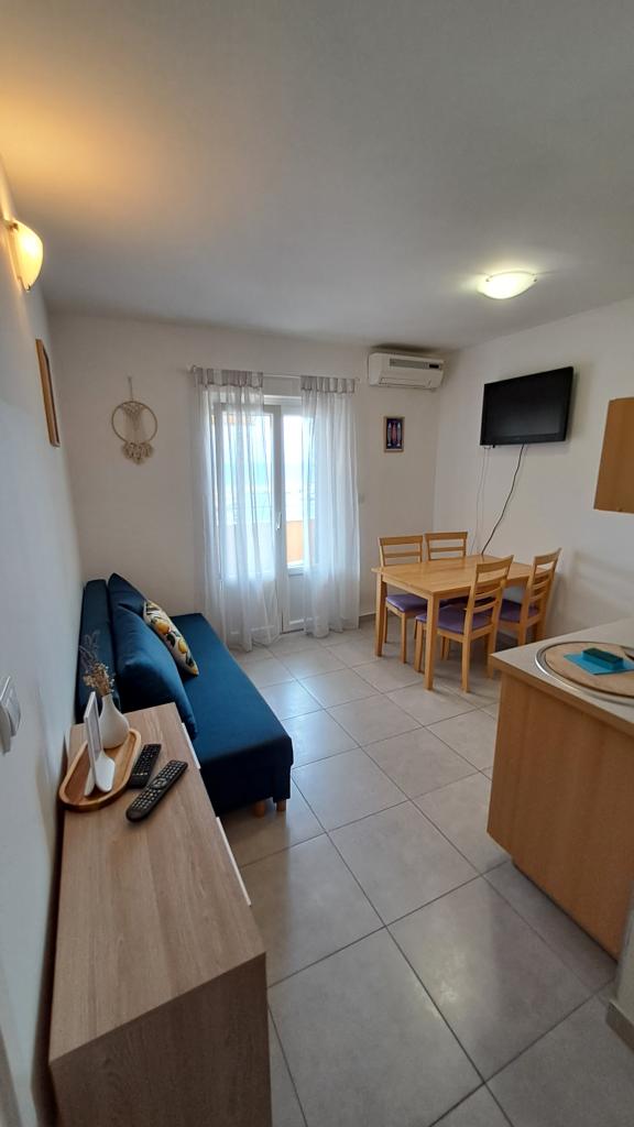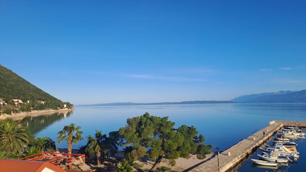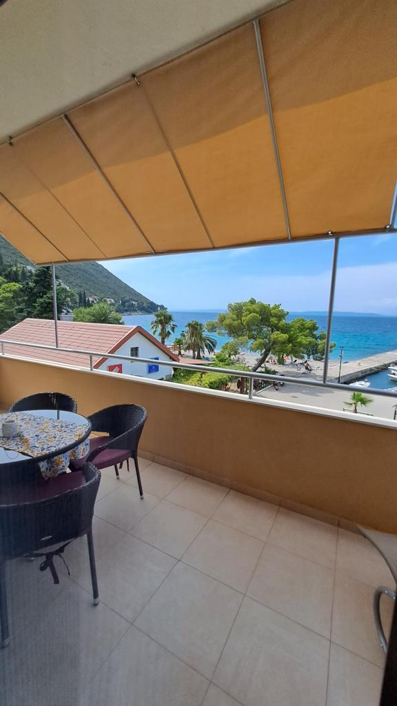 Popolnoma nov in moderno opremljen apartma v Trpanju, ki se nahaja v prvi vrsti do morja, v drugem nadstropju hiše. Objekt se nahaja nekaj korakov od plaže in nekaj minut od centra. Apartma ima eno spalnico, popolnoma opremljeno kuhinjo v jedilnici in dnevno sobo, kopalnico in veliko teraso. Soba vključuje zakonsko posteljo in dodatno ležišče, v dnevni sobi pa raztegljiv kavč za do dve osebi.