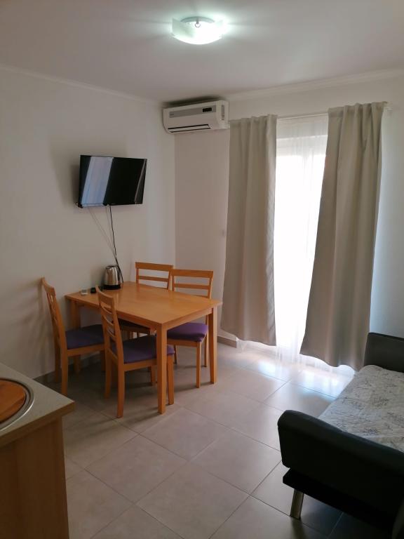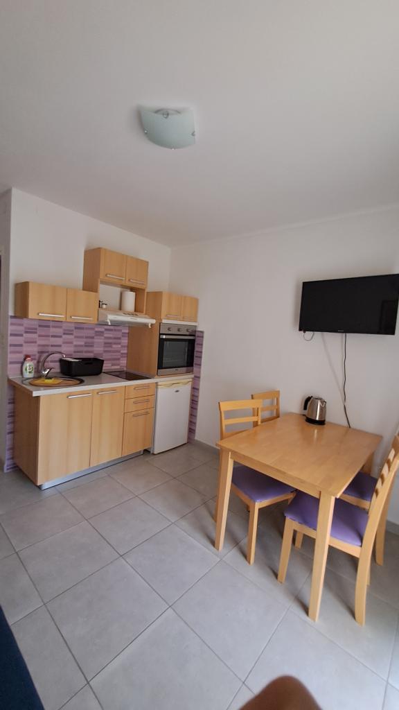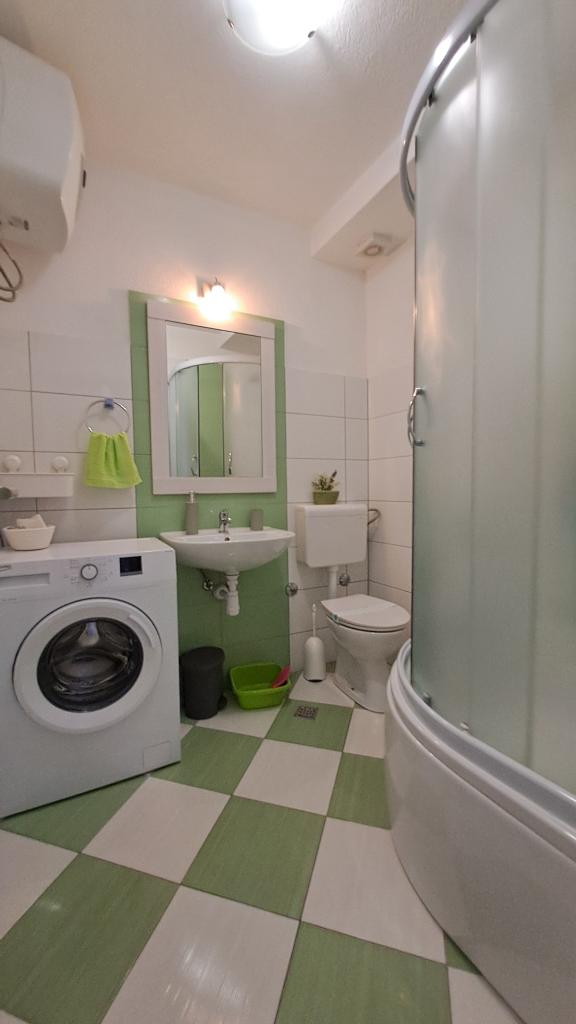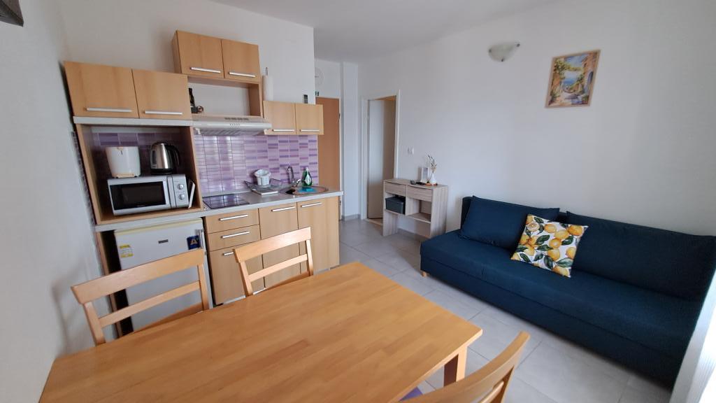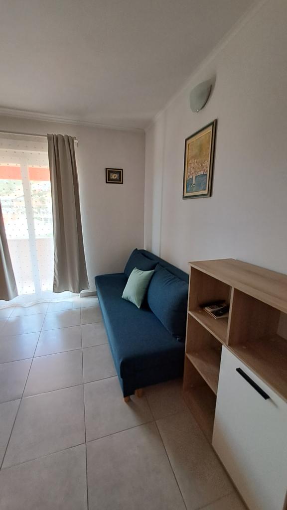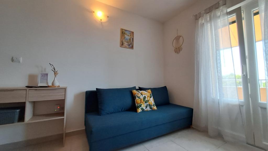 Popolnoma nov in moderno opremljen apartma v Trpanju, ki se nahaja v prvi vrsti do morja, v drugem nadstropju hiše. Objekt se nahaja nekaj korakov od plaže in nekaj minut od centra. Apartma ima eno spalnico, popolnoma opremljeno kuhinjo v jedilnici in dnevno sobo, kopalnico in veliko teraso. Soba vključuje zakonsko posteljo in dodatno ležišče, v dnevni sobi pa raztegljiv kavč za do dve osebi.