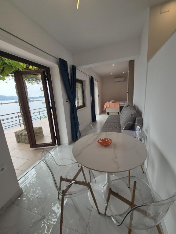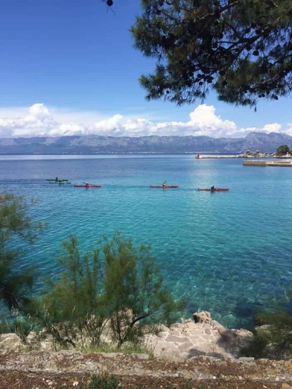 Eden od vrhuncev naše namestitve je prostorna terasa, kjer lahko uživate v šumenju valov, morskem vetriču in vonju obalnih rastlin. Ne glede na to, ali uživate v jutranji kavi, večerji s prijatelji ali se preprosto prepustite mirnim večerom, naše terase zagotavljajo neverjetno sproščujoče vzdušje. Za goste, ki se nahajajo v tretjem nadstropju, je na voljo 55 m2 velika garaža, primerna za parkiranje, in kajak za 2+1 osebo. Storitev je vključena v ceno. Za apartmaje v prvem in drugem nadstropju je na voljo parkiranje ob cesti in možnost parkiranja na bližnjem plačljivem parkirišču. Stroške parkiranja krije lastnik. Trpanj je idealen za sprostitev na dolgih sprehajališčih ob morju in odkrivanje znamenitosti starega dela mesta, odlično izhodišče za enodnevne izlete na Korčulo, v Dubrovnik, Mljet ali na plaže Divna in Duba. Center mesta s trgovinami, restavracijami in bankomati je oddaljen le nekaj minut hoje.