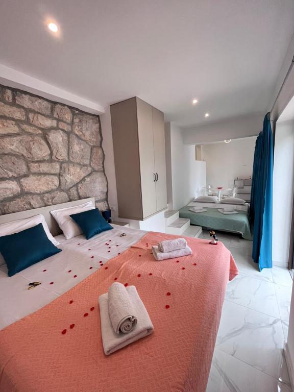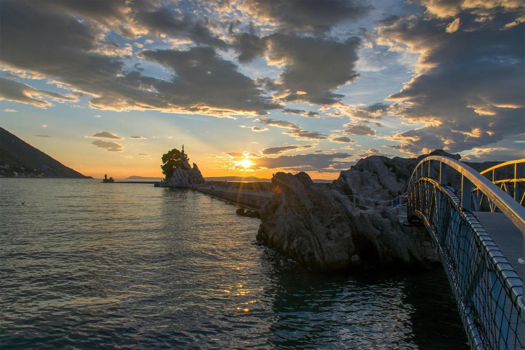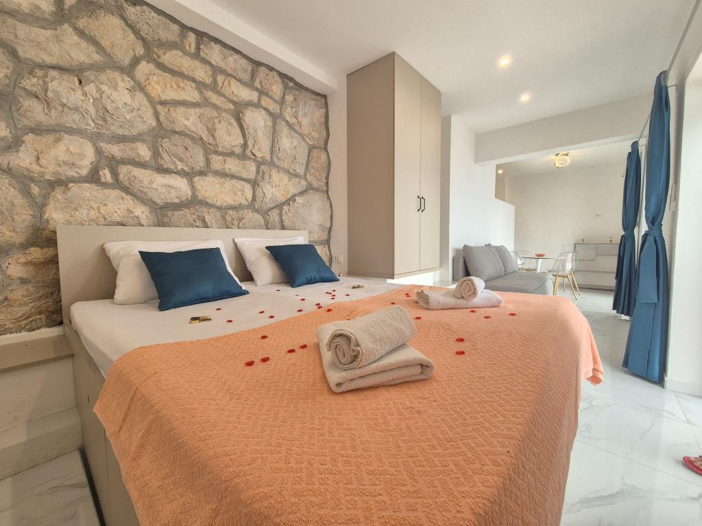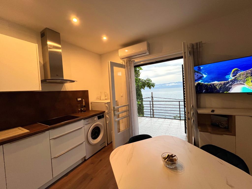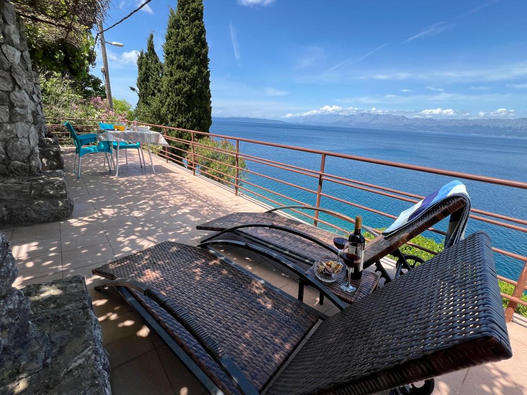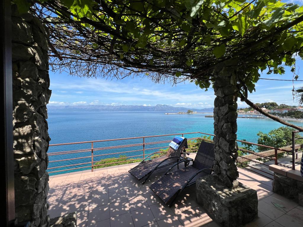 Dobrodošli v naši vili, ugnezdeni sredi spokojne lepote narave in tik nad penečim morjem, tik ob plaži. Vila Montana ponuja izjemno doživetje v čudoviti pokrajini in sproščujočem vzdušju. Studio apartma v prvem nadstropju je edinstven, združuje sodoben dizajn z avtohtonim kamnom, v dveh nivojih, z odprtim pogledom na morje in prostorno teraso. Idealen za pare. App v drugem nadstropju je sestavljen iz 2 spalnic, kopalnice, moderno opremljene kuhinje in dnevnega prostora ter zasebne terase. Primeren za 4 osebe. V tretjem nadstropju sta 2 apartmaja, ki se pogosto oddajata skupaj. Prvi z balkoni in čudovitim razgledom se razprostira na 90 m2 in lahko udobno sprejme 8 gostov. Sestavljen je iz dnevne sobe, treh spalnic (3+3+2), dveh kopalnic in dobro opremljene moderne kuhinje. Drugi apartma za 4 osebe je sestavljen iz dveh spalnic, dveh kopalnic, moderne kuhinje in dnevne sobe. S prostorne terase se vam ponuja neverjeten razgled na očarljivo panoramo.