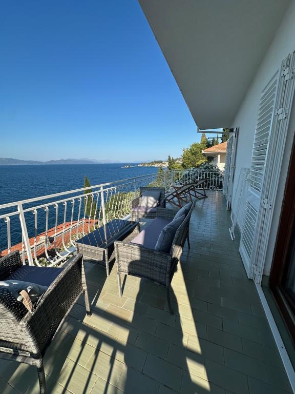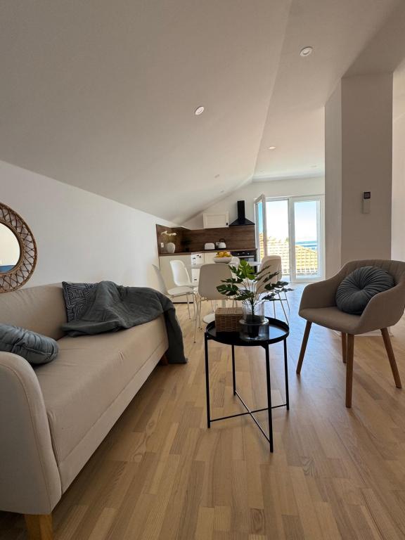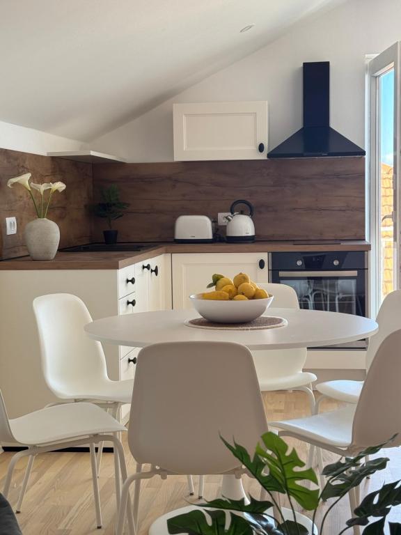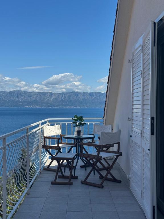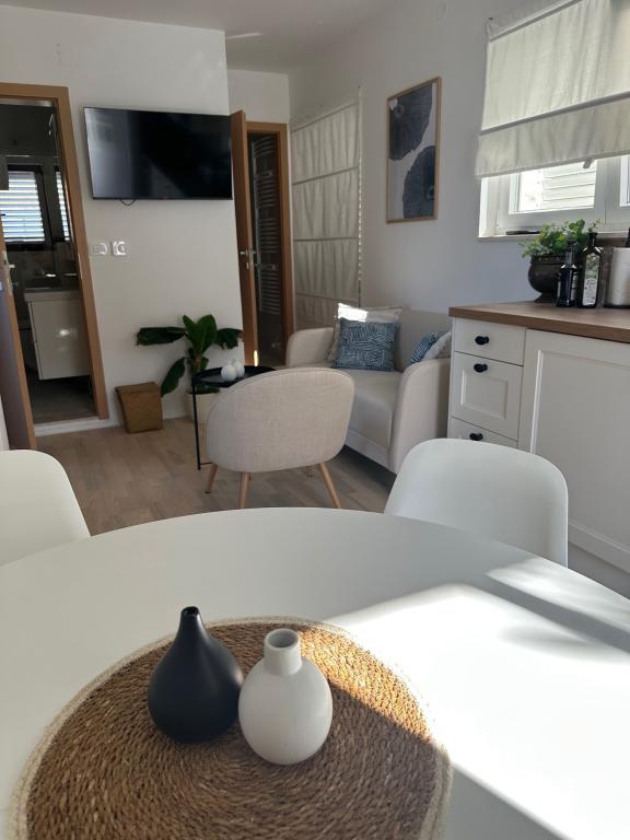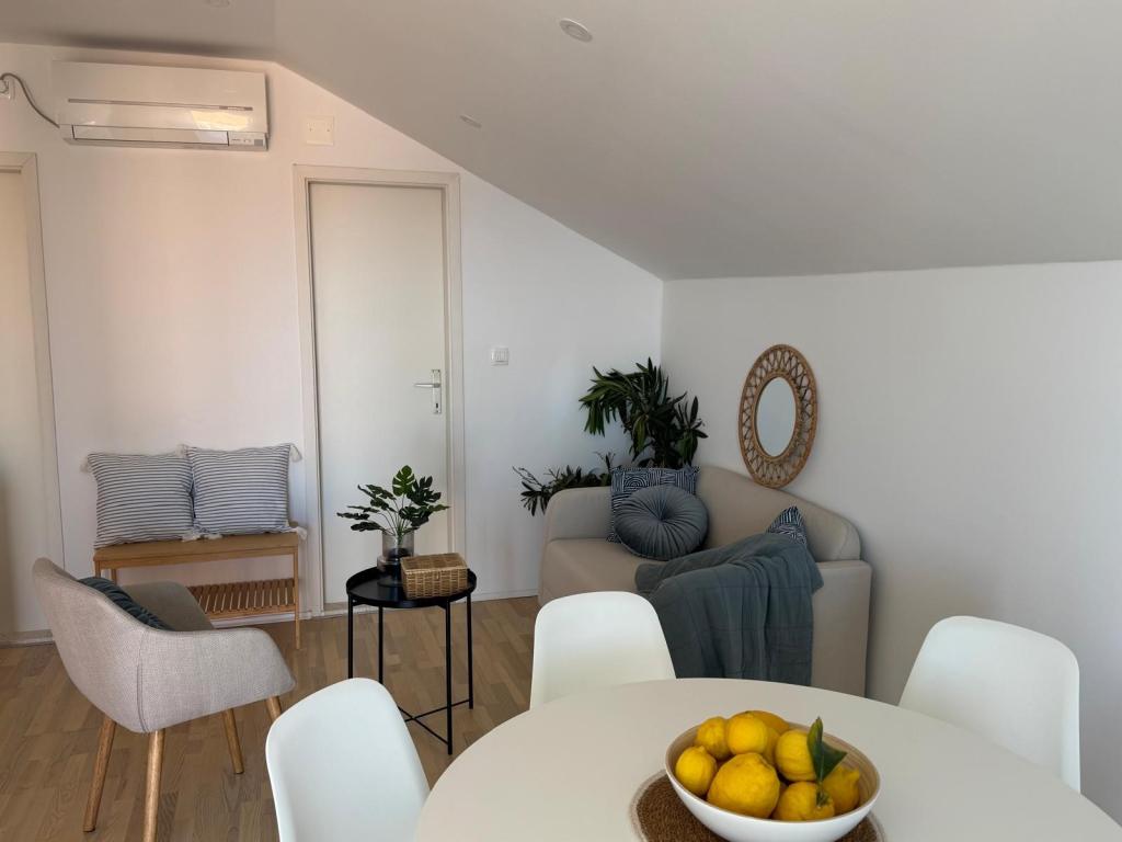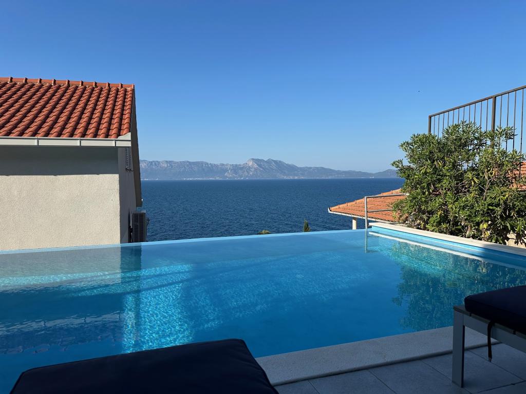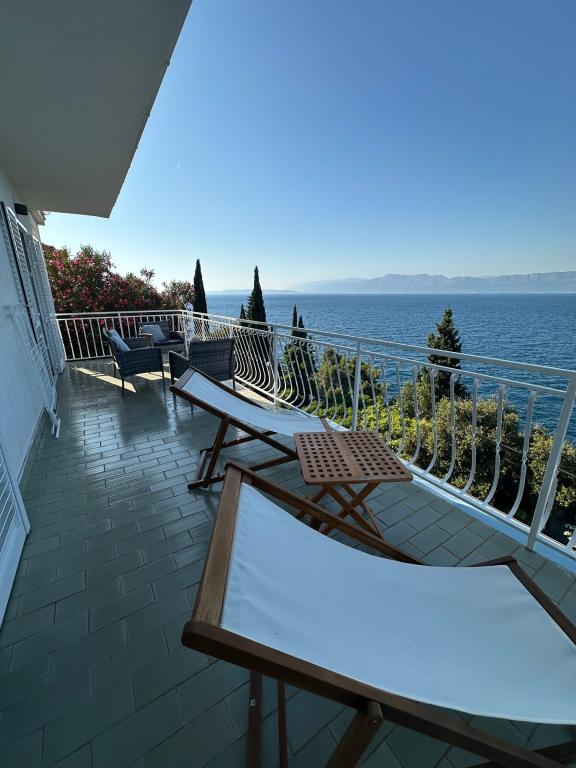 Popolnoma in moderno opremljeni apartmaji v mirnem predelu, ki se nahajajo v drugi vrsti ob morju; Objekt se nahaja 15 minut hoje do centra in 10 minut hoje do prodnate plaže oziroma le 20-30 metrov od skalnate ali betonske plaže. Apartma 2 se oddaja z zasebnim neskončnim bazenom z ležalniki in tušem ter čudovitim pogledom na morje. Vsak apartma je opremljen z dvema modernima kopalnicama s talnim ogrevanjem.