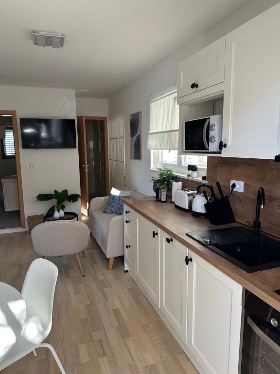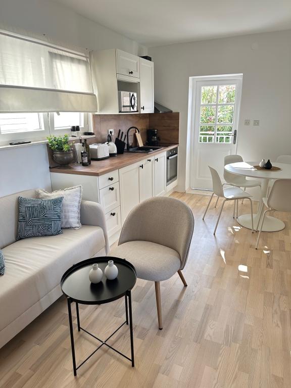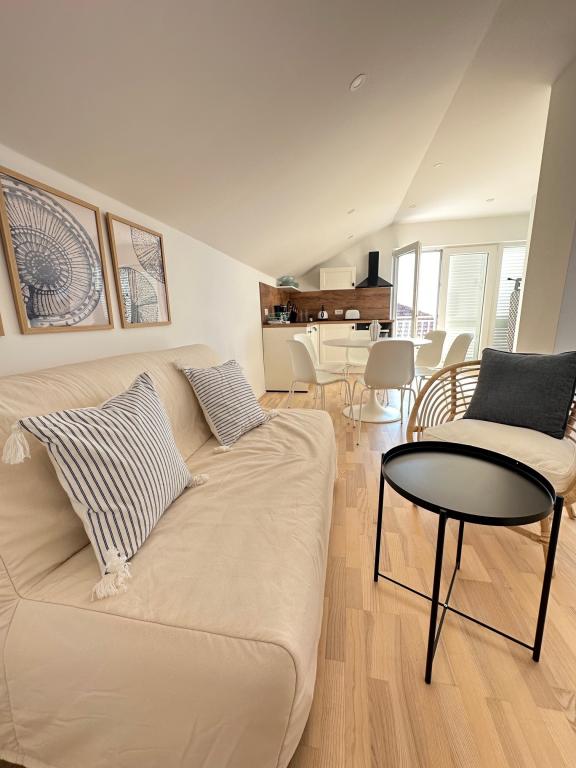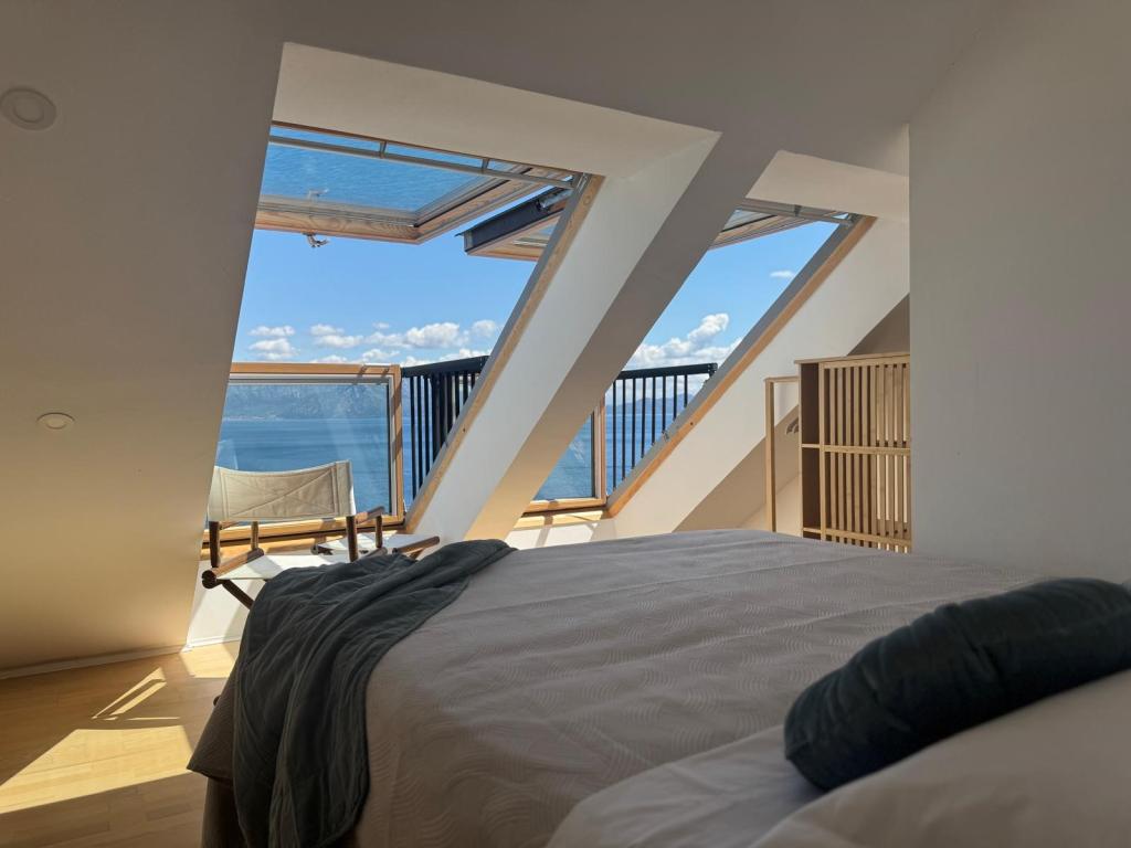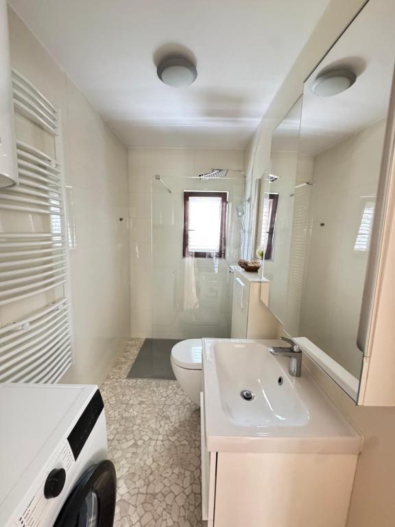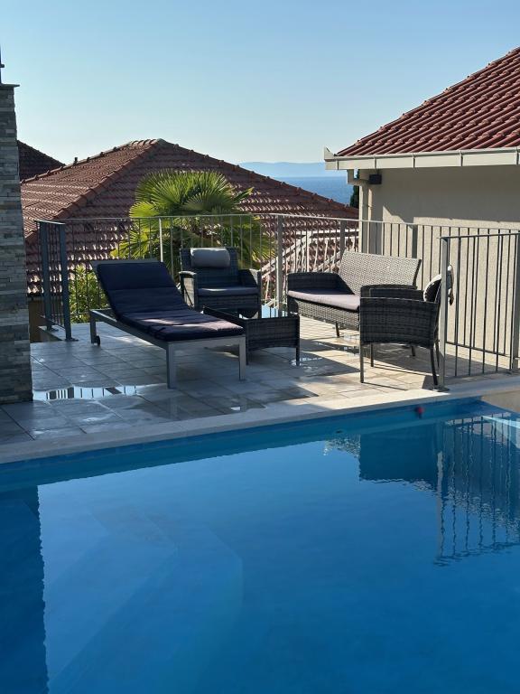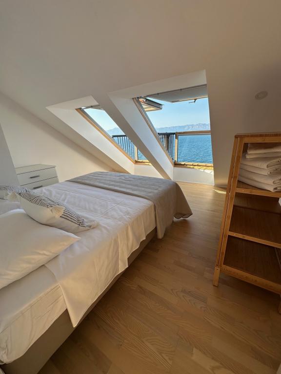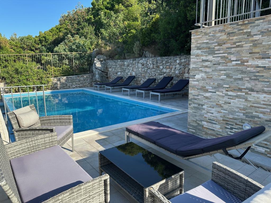 Popolnoma in moderno opremljeni apartmaji v mirnem predelu, ki se nahajajo v drugi vrsti ob morju; Objekt se nahaja 15 minut hoje do centra in 10 minut hoje do prodnate plaže oziroma le 20-30 metrov od skalnate ali betonske plaže. Apartma 2 se oddaja z zasebnim neskončnim bazenom z ležalniki in tušem ter čudovitim pogledom na morje. Vsak apartma je opremljen z dvema modernima kopalnicama s talnim ogrevanjem.