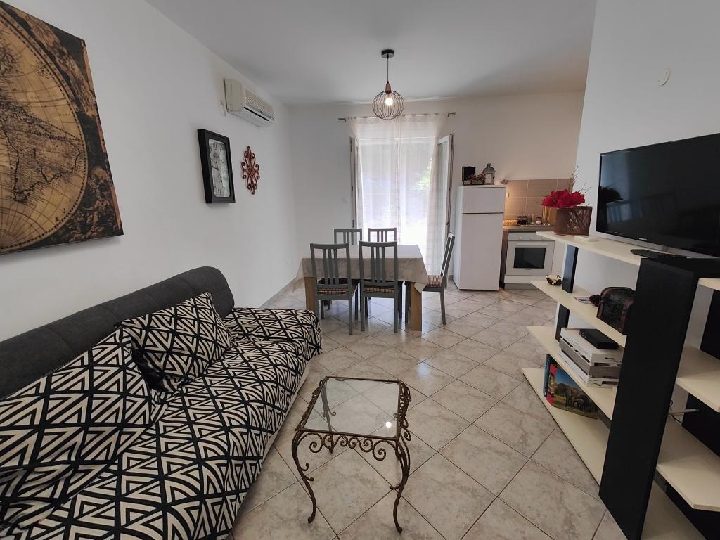 Apartmaji se nahajajo v mirnem delu turističnega naselja Tučepi na Makarski rivieri, le 100 m oddaljeni od morja in plaže. Vsak apartma lahko sprejme največ 5 oseb. Vsak apartma obsega kuhinjo z jedilnico/dnevno sobo, kopalnico s tušem, spalnico in teraso/balkon. Apartmaji so popolnoma opremljeni, vključno s klimatsko napravo, brezžičnim internetom, satelitsko LCD TV, hladilnikom z zamrzovalnikom, kuhalnikom vode, pomivalnim strojem, pečico, domino kuhalnikom (steklokeramični). Vsak apartma ima svoj vhod in skupen vrt. Na vrtu je tudi žar, ki je na voljo gostom apartmaja, ter brezplačno parkirišče.