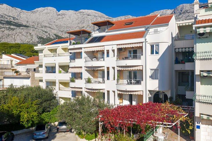 Apartmaji Azzurro se nahajajo v mirnem delu Tučepov, tik ob morju in le 400m od centra. Vsaka enota ima pametno televizijo, klimatsko napravo, hladilnik, grelnik za vodo ter lastno kopalnico s prho in sušilcem za lase, apartmaji pa so opremljeni s satelitsko televizijo z ravnim zaslonom, klimatsko napravo in zasebnim balkonom. Brezplačen internet je na voljo v vseh prostorih. Nekatere enote imajo balkon s pogledom na morje. Z varovanim parkiriščem za vsakega gosta imate možnost uživati in se sprostiti v modernih apartmajih, ki imajo glede na lokacijo neoviran pogled na otoka Brač in Hvar ter goro Biokovo. Domačini živijo v hiši in so gostom ves čas na voljo. Edinstvena kombinacija gora in morja, mediteranskega šarma in prijaznih gostiteljev potrjujejo, da so apartmaji Azzurro najboljša izbira za sproščujoče počitnice za dušo in telo.