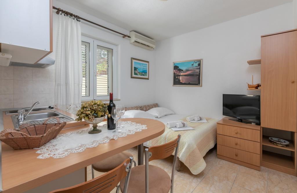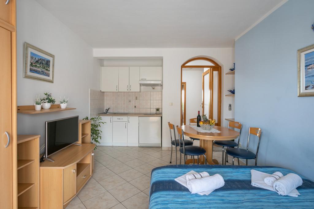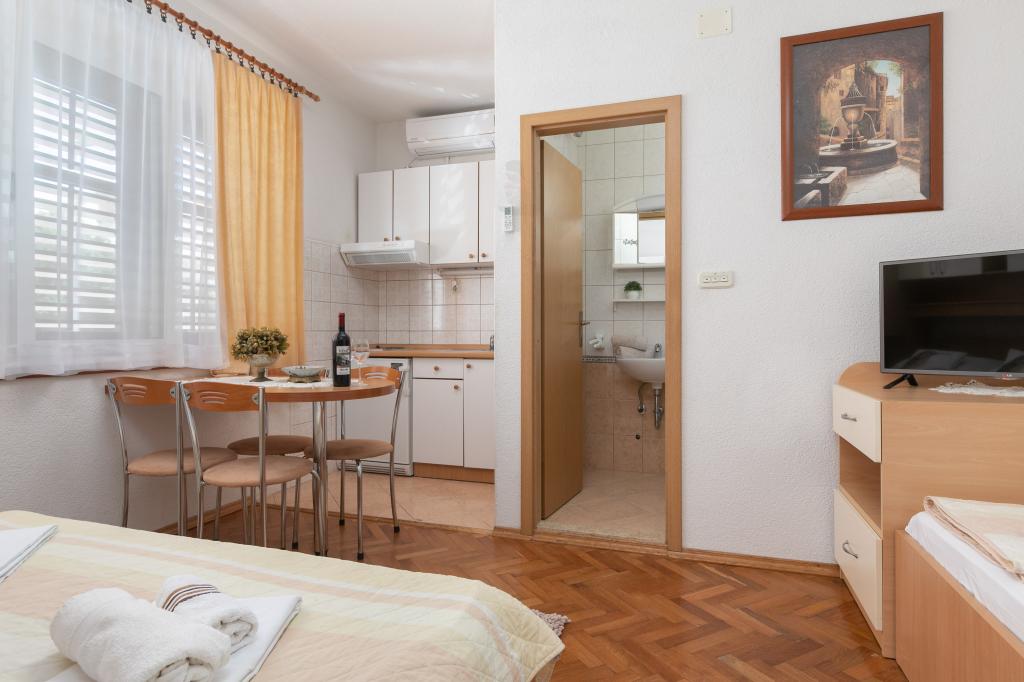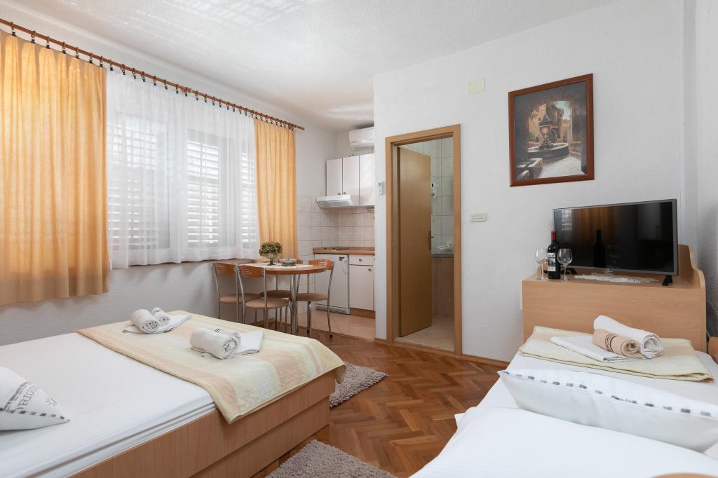 Barba Apartmaji se nahajajo 60 km od Splita in 3 km od centra Makarske Tučepi 50m od morja, v bližini trgovine, športni objekti, vodni športi, golf, in mnogi so novi restorana.Kompletno imajo ločeno spalnico, klima, SAT TV, balkon, terasa, dostop do interneta in parking.Nakon uživajo toplo morje, lahko obiščete številne kulturne dogodke, kot so: predstave, razstave, koncerti, ki jih lahko ob poletnih večerih Tučepih in še več ... Vaš prosti čas je treba dopolniti s številnimi izleti z ladjo na otok Hvar, Brač in Korčula.Vrijedi in uživajte v dobrotah lepo pobočju gore, kanjon reke Cetine in Splitu, Dubrovniku in slavni svetišča Međugorja, ki v nobenem primeru ne sme biti izpuščeni. Pridite in preživite svoj dopust v zrelo in prijetno vzdušje.
