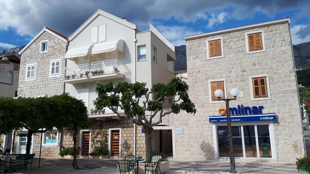 Objekt, Apartmaji Čobrnić, Kraj 75, Tučepi se nahaja v središču vasi, v starem mestu, zavarovanem območju Tučepi. Družina Čobrnić se s turizmom ukvarja od petdesetih let 20. stoletja s tradicijo več kot 70 let. Stavba je stara družinska stavba, obnovljena leta 2015. Sestavljen je iz treh stanovanj, vsaka približno 55 m2, v vsakem nadstropju je po en apartma. Vsi apartmaji imajo terase-balkone s pogledom na morje. Oprema stanovanja je kombinacija starega in novega, preprosta in zadostna, romantična in posebna! Objekt se nahaja v samem središču vasi, ob morju, marini, restavracijah ... v enem redkih, preostalih, starih ambientov v Tučepih.
