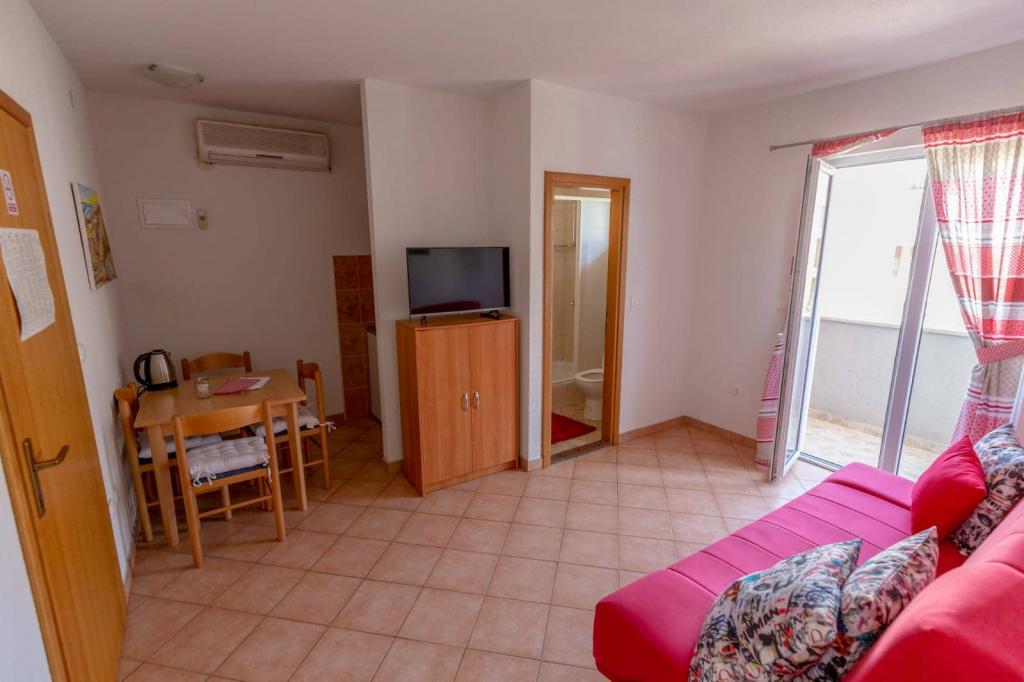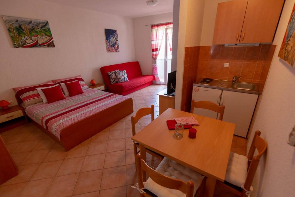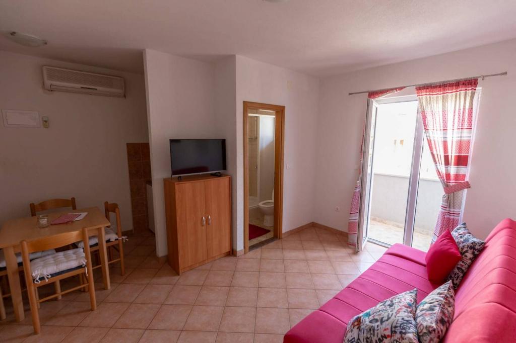 Apartmaji se nahajajo 30 metrov od morja, v bližini apartmaja se nahajajo restavracije, bari, supermarket in ostali objekti. Z doplačilom 6 eur na osebo na noč nudimo zajtrk v objektu ob plaži. Idealno za počitnice brez avtomobila. Občutite čare biserov Dalmacije, sprostite se na 3 km dolgih plažah z odsevom kristalno čistega morja