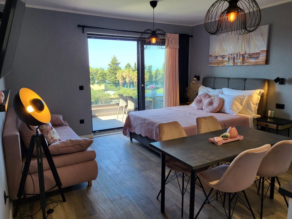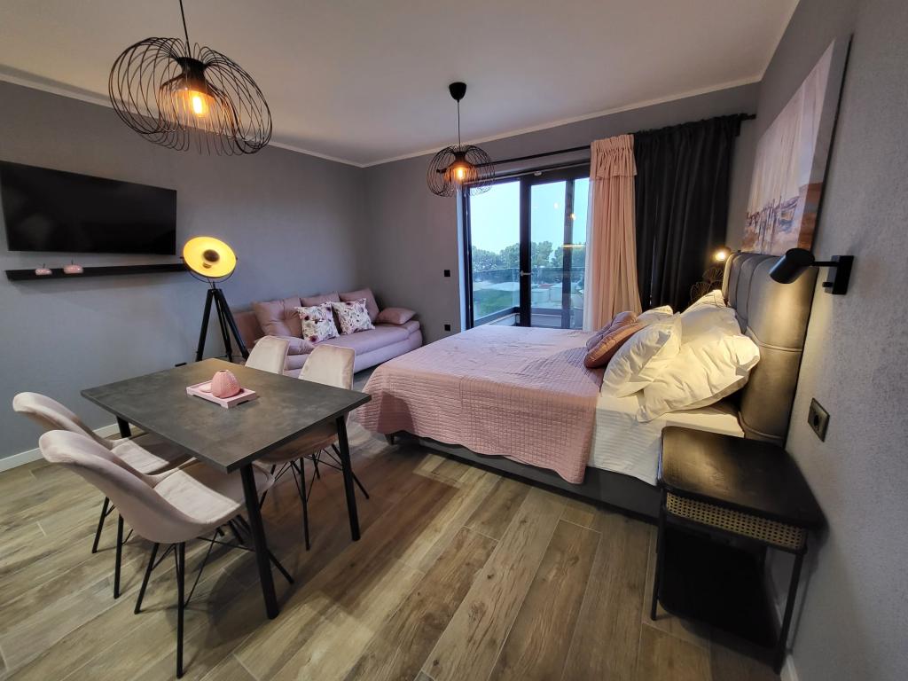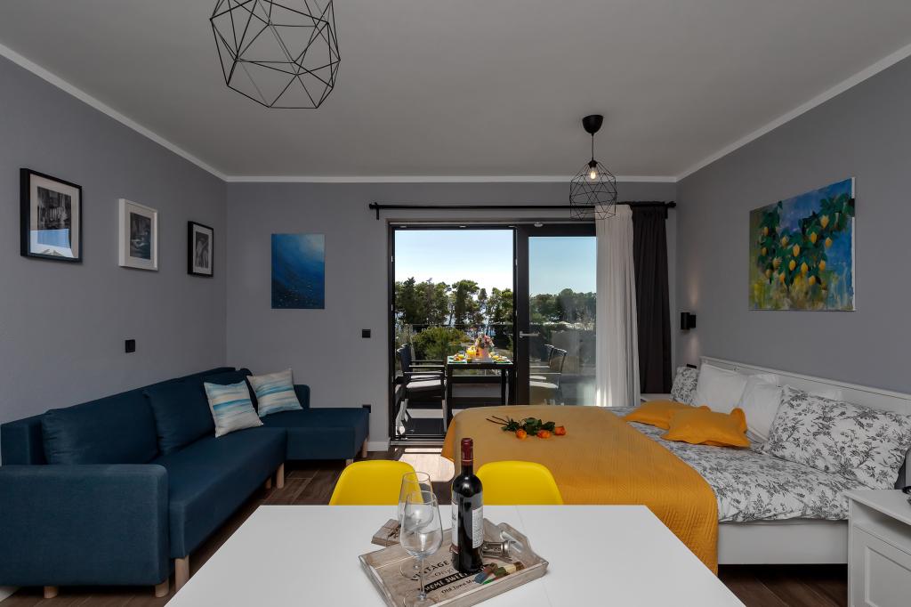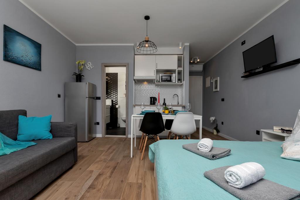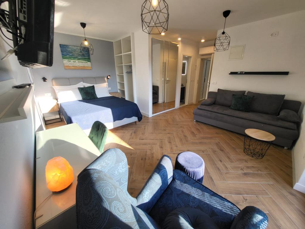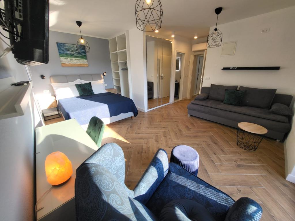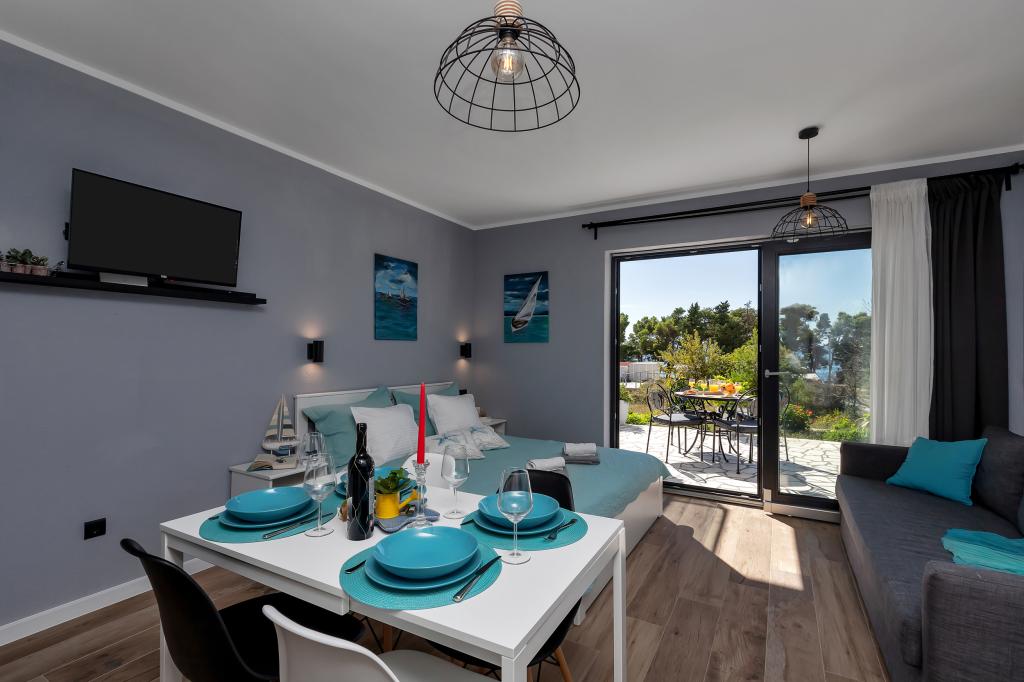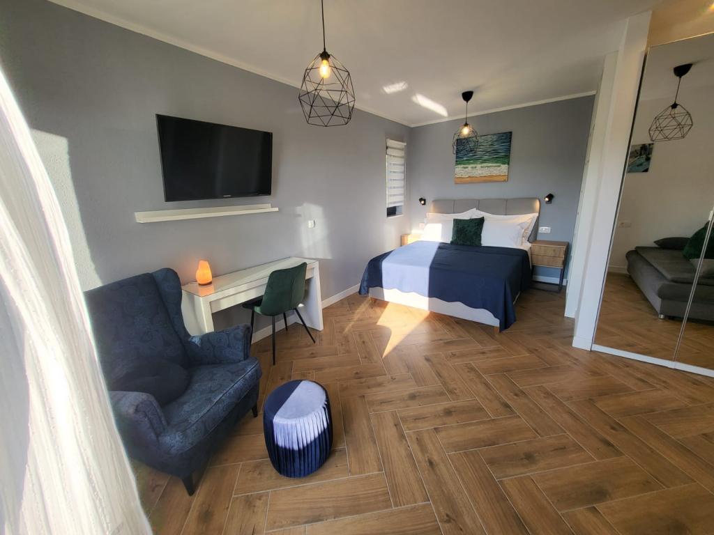 Moderno opremljeni apartmaji se nahajajo v prvi vrsti do morja. Objekt se nahaja nekaj minut hoje od plaže. Na tej lokaciji okoli objekta trenutno ni drugih hiš. Parkiranje je brezplačno, garaža pa je na voljo z doplačilom, odvisno od razpoložljivosti. Topel sprejem in prijetno bivanje vsem gostom.