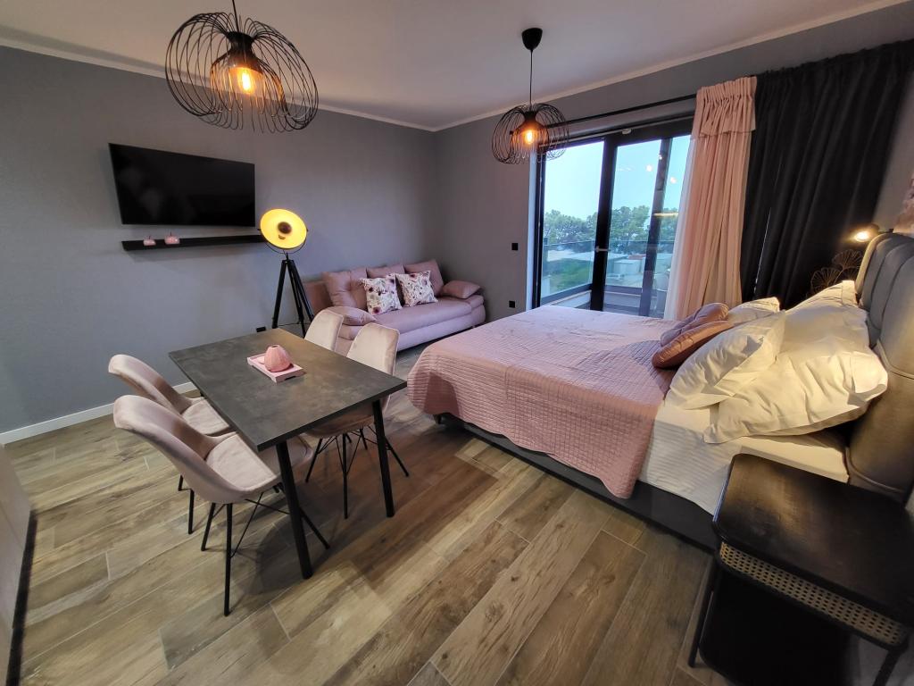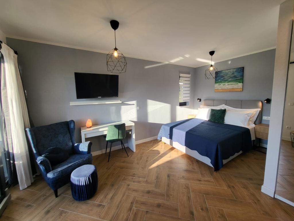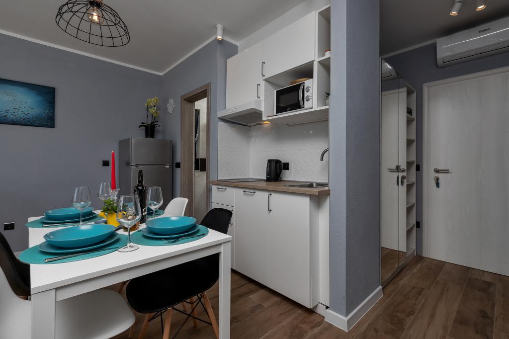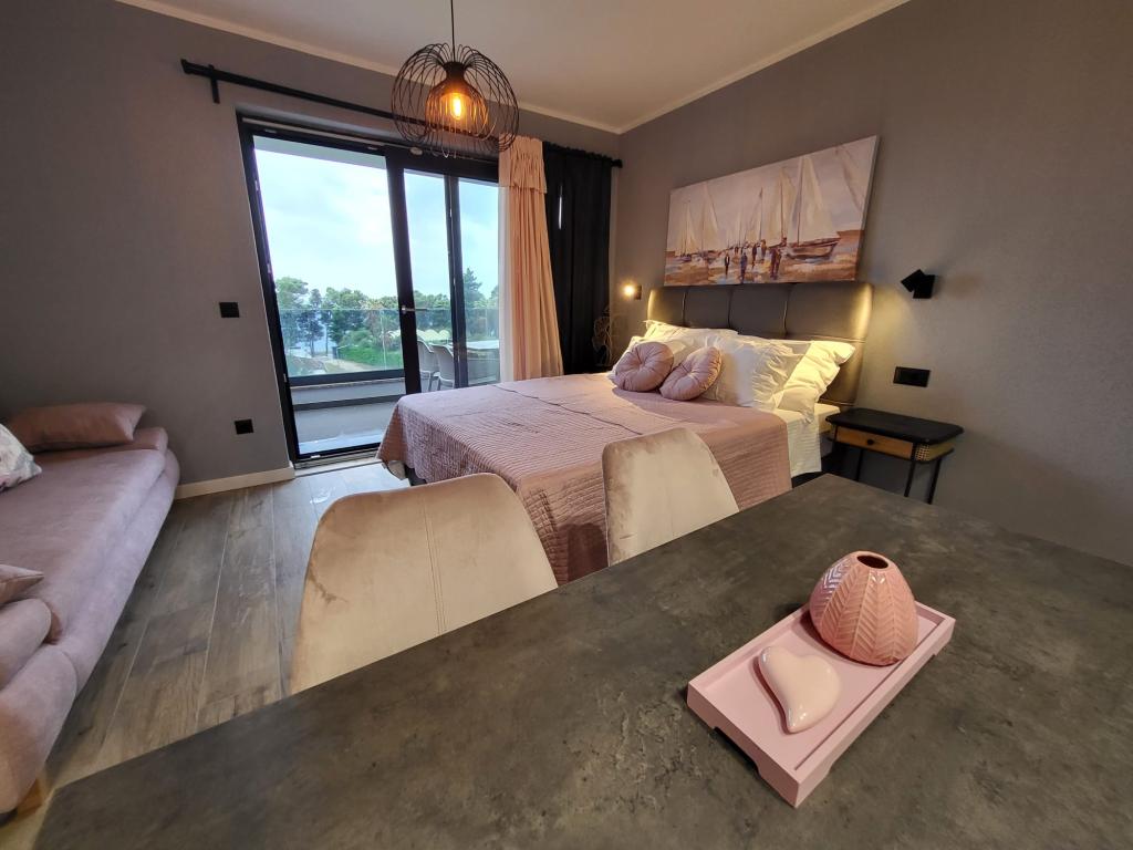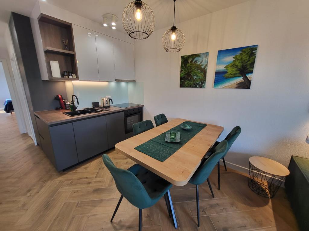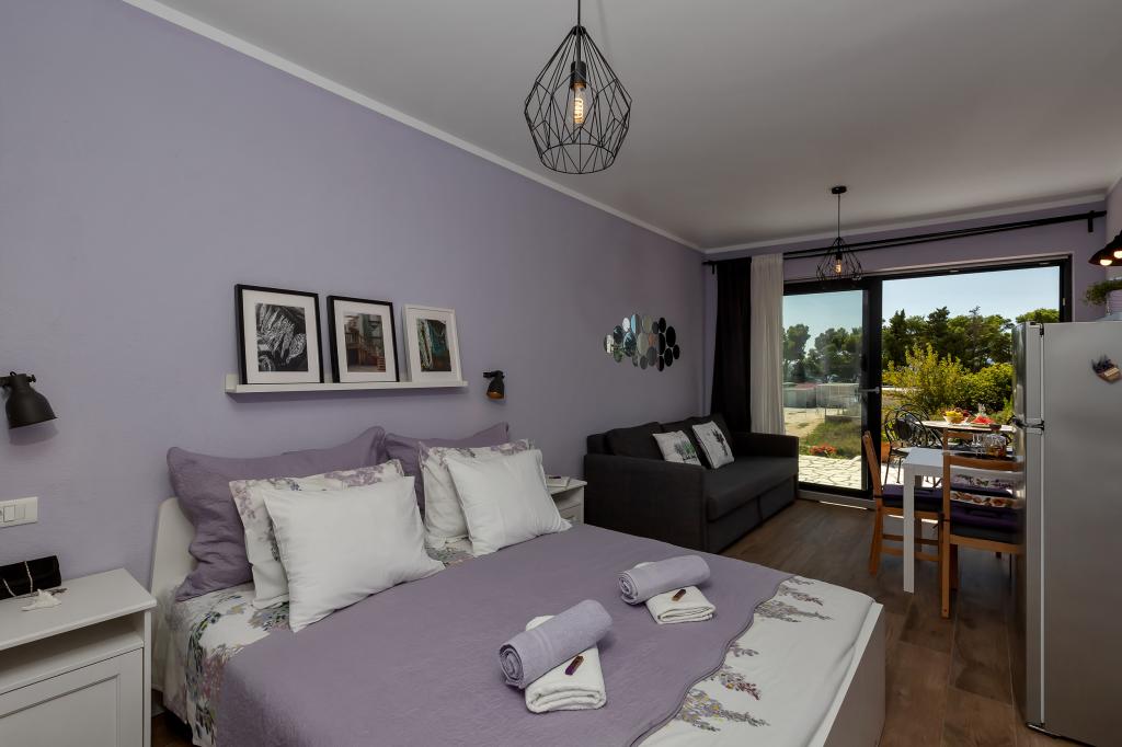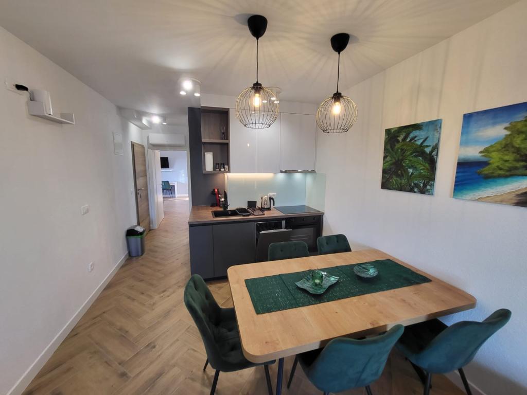 Moderno opremljeni apartmaji se nahajajo v prvi vrsti do morja. Objekt se nahaja nekaj minut hoje od plaže. Na tej lokaciji okoli objekta trenutno ni drugih hiš. Parkiranje je brezplačno, garaža pa je na voljo z doplačilom, odvisno od razpoložljivosti. Topel sprejem in prijetno bivanje vsem gostom.