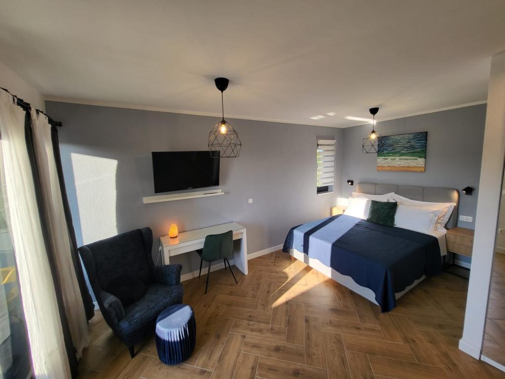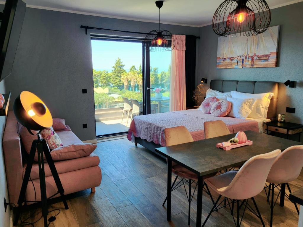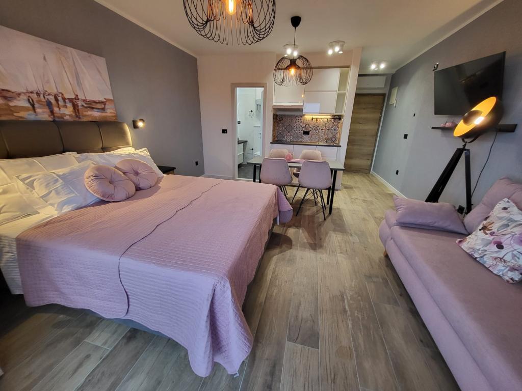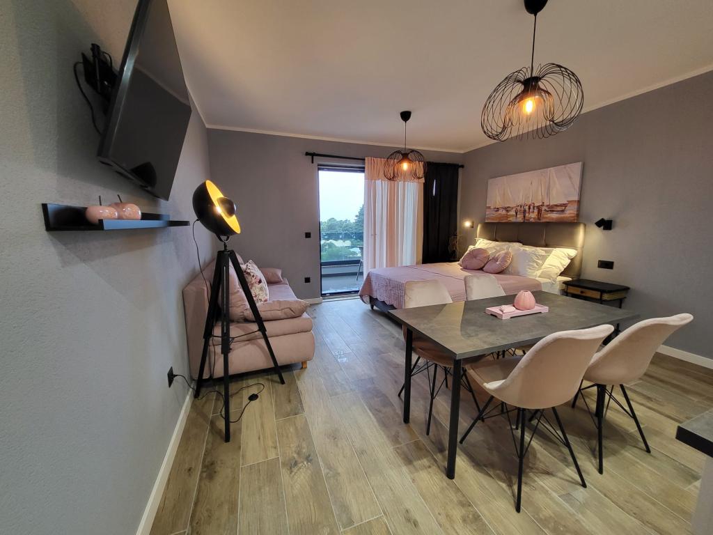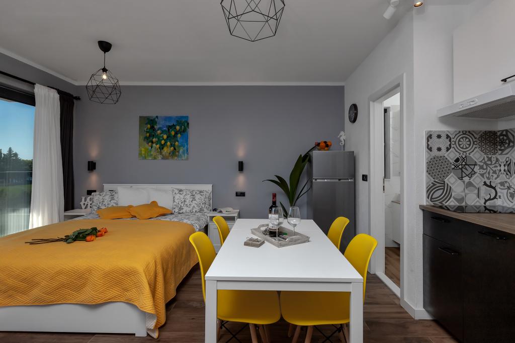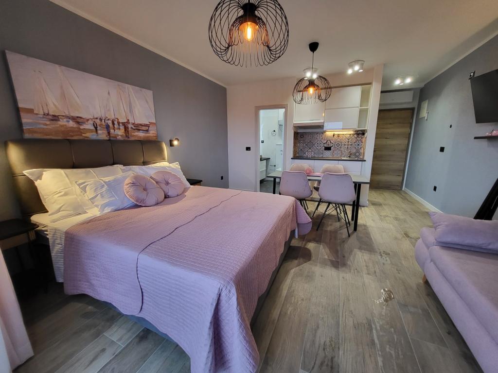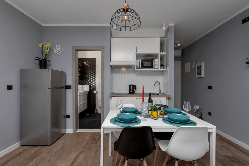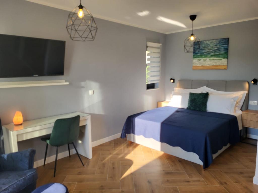 Moderno opremljeni apartmaji se nahajajo v prvi vrsti do morja. Objekt se nahaja nekaj minut hoje od plaže. Na tej lokaciji okoli objekta trenutno ni drugih hiš. Parkiranje je brezplačno, garaža pa je na voljo z doplačilom, odvisno od razpoložljivosti. Topel sprejem in prijetno bivanje vsem gostom.