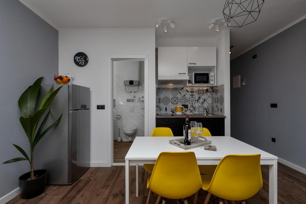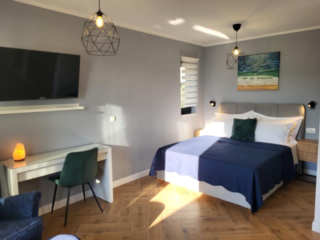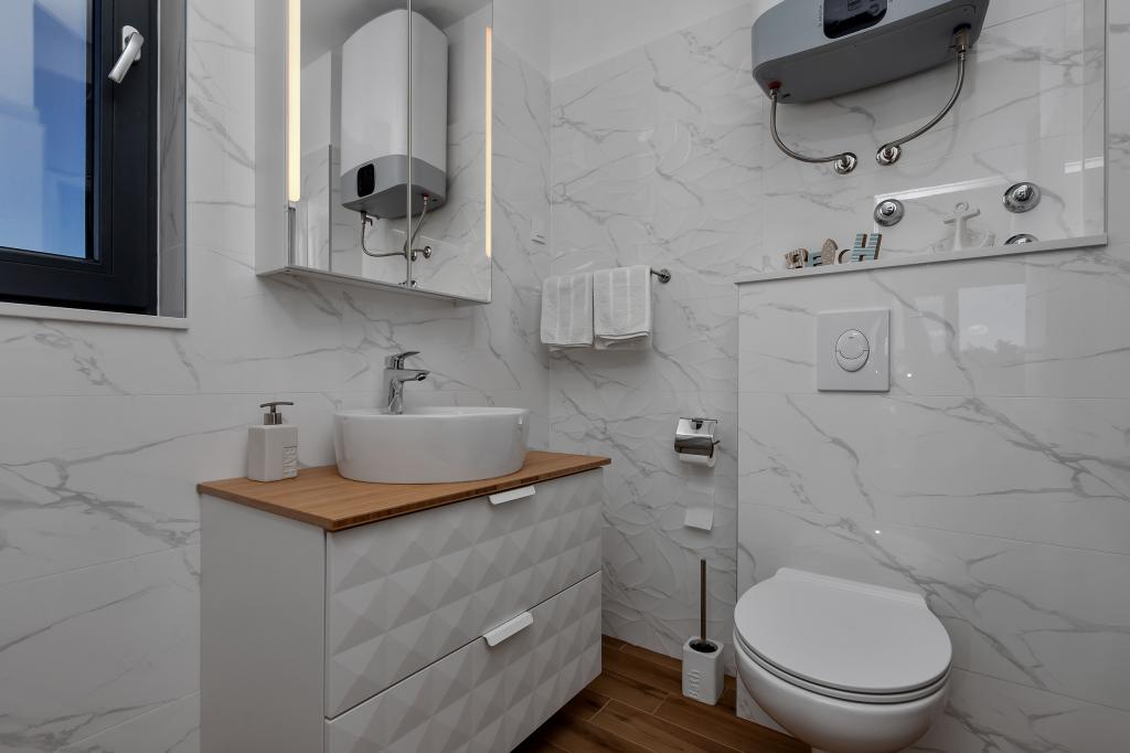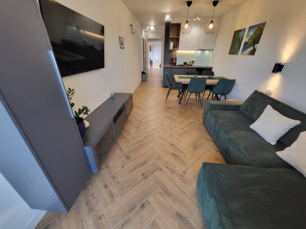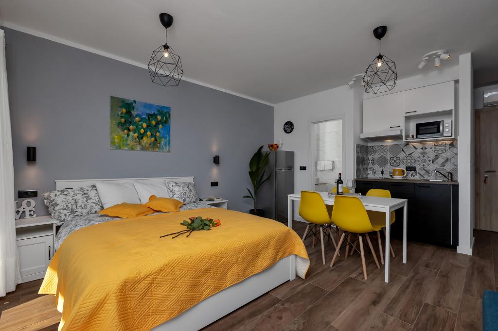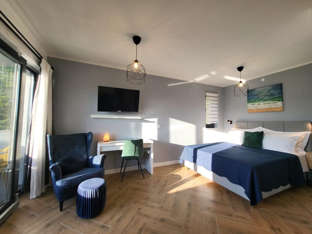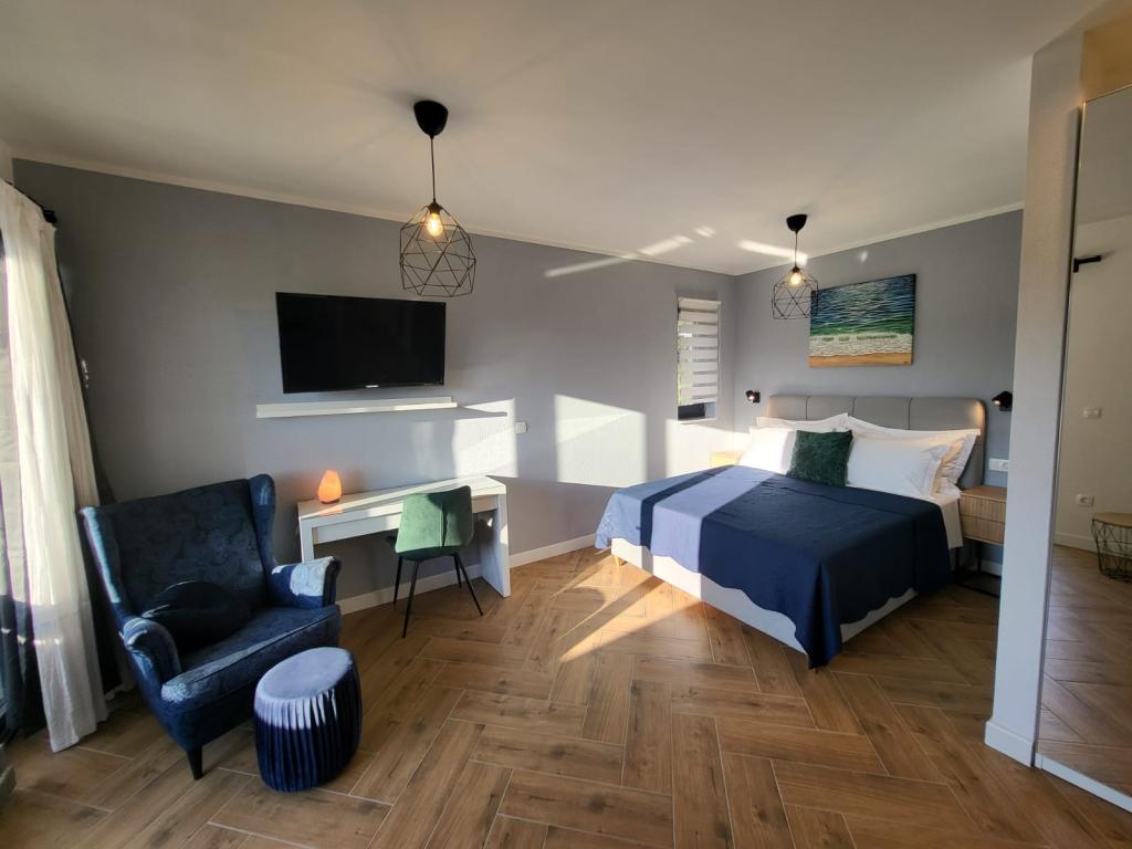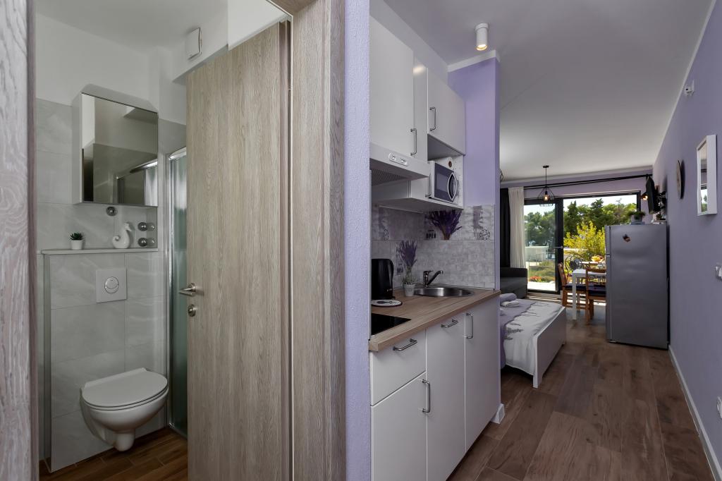 Moderno opremljeni apartmaji se nahajajo v prvi vrsti do morja. Objekt se nahaja nekaj minut hoje od plaže. Na tej lokaciji okoli objekta trenutno ni drugih hiš. Parkiranje je brezplačno, garaža pa je na voljo z doplačilom, odvisno od razpoložljivosti. Topel sprejem in prijetno bivanje vsem gostom.