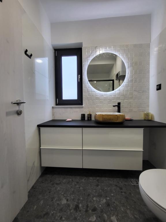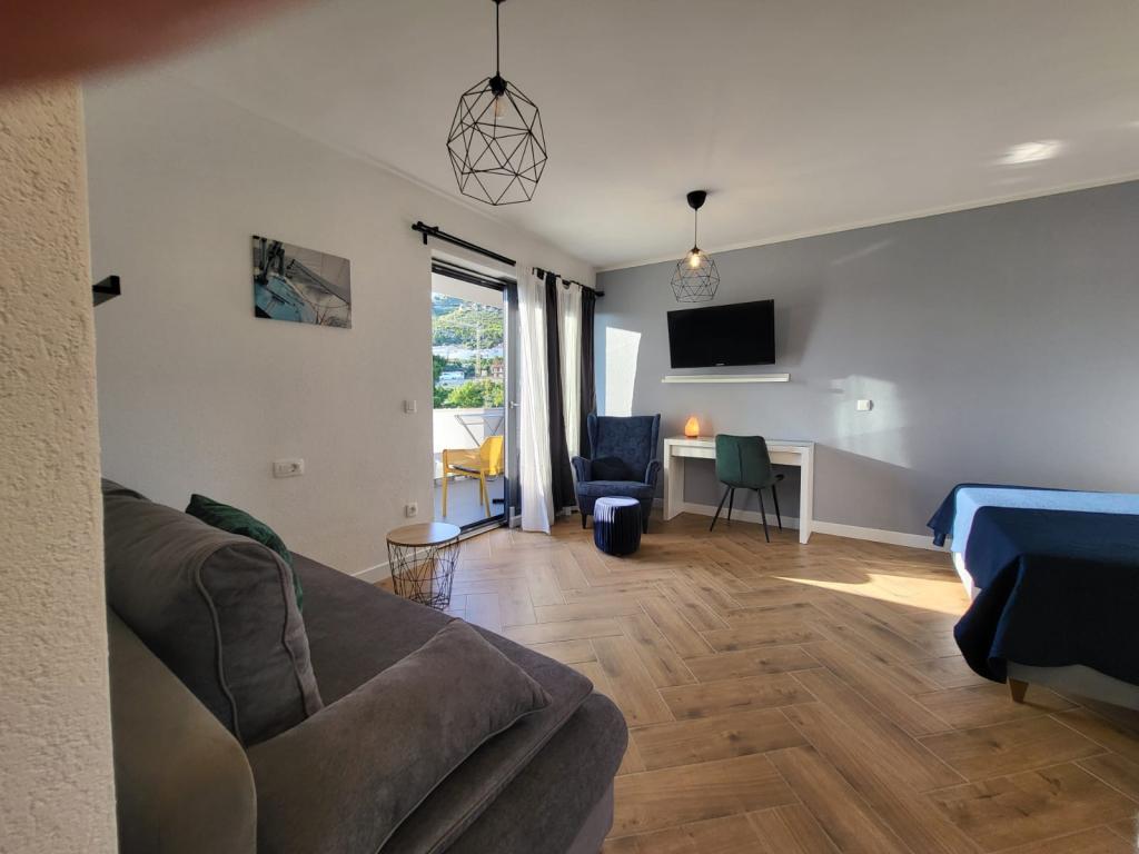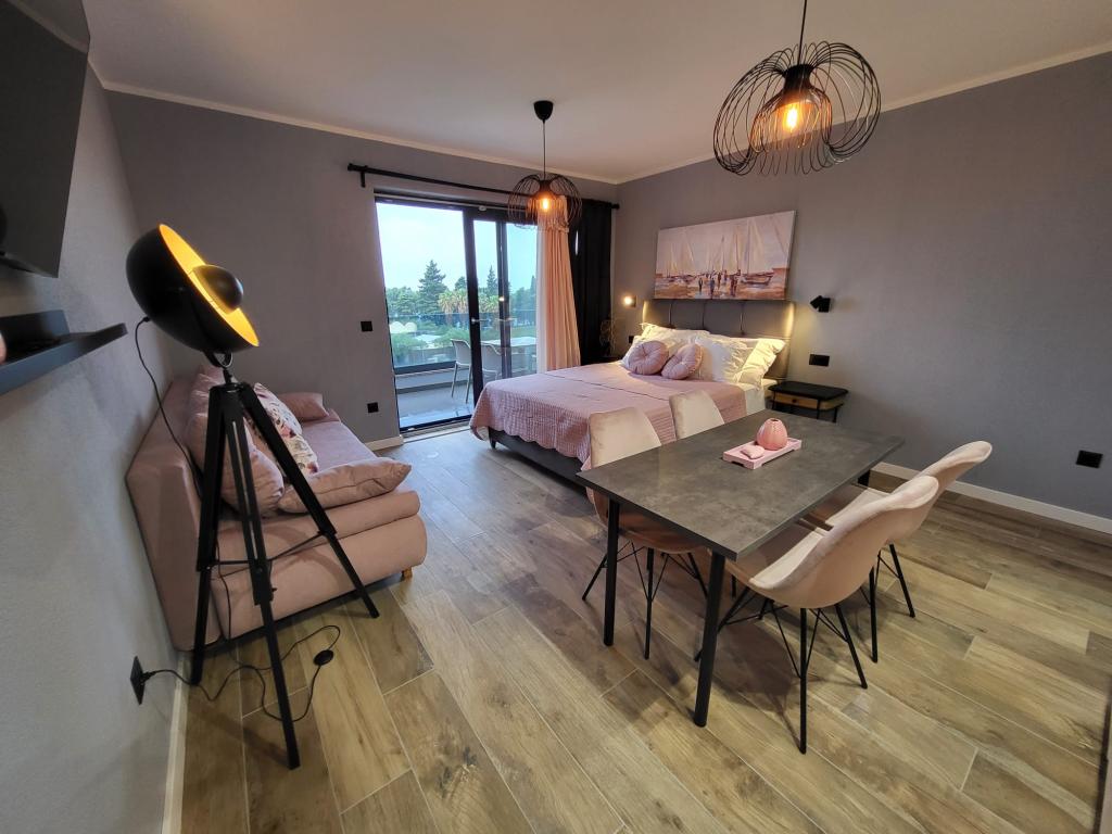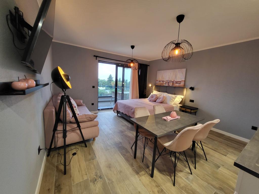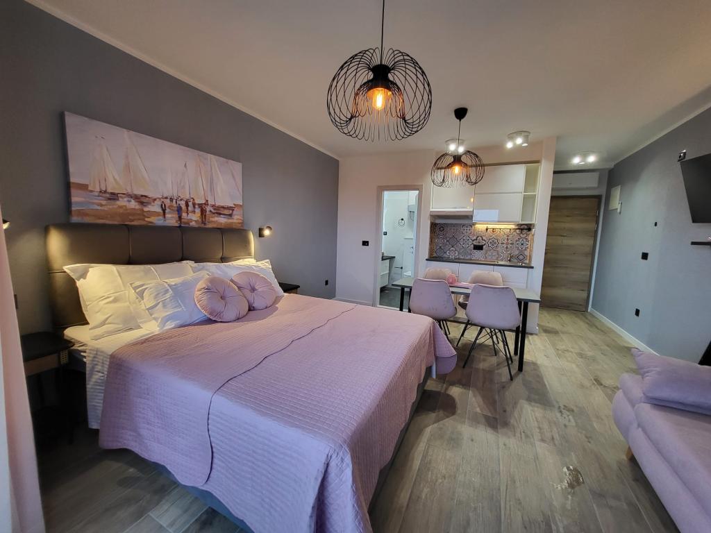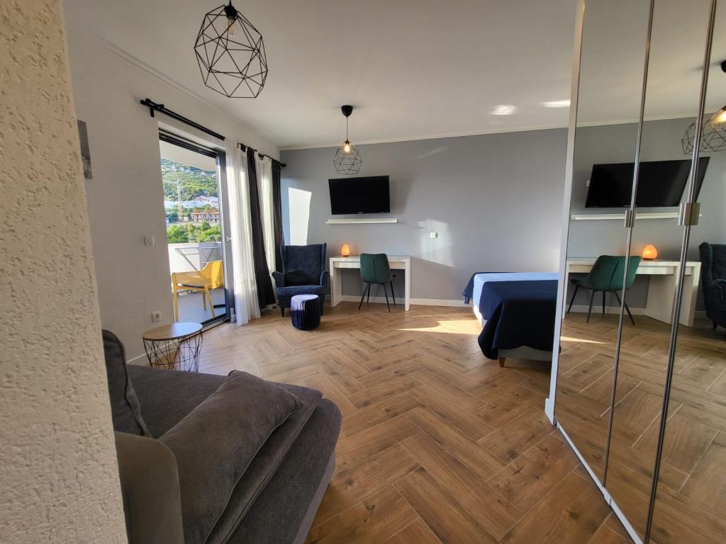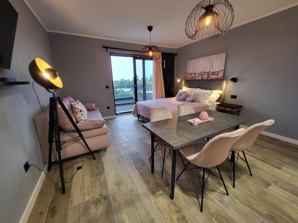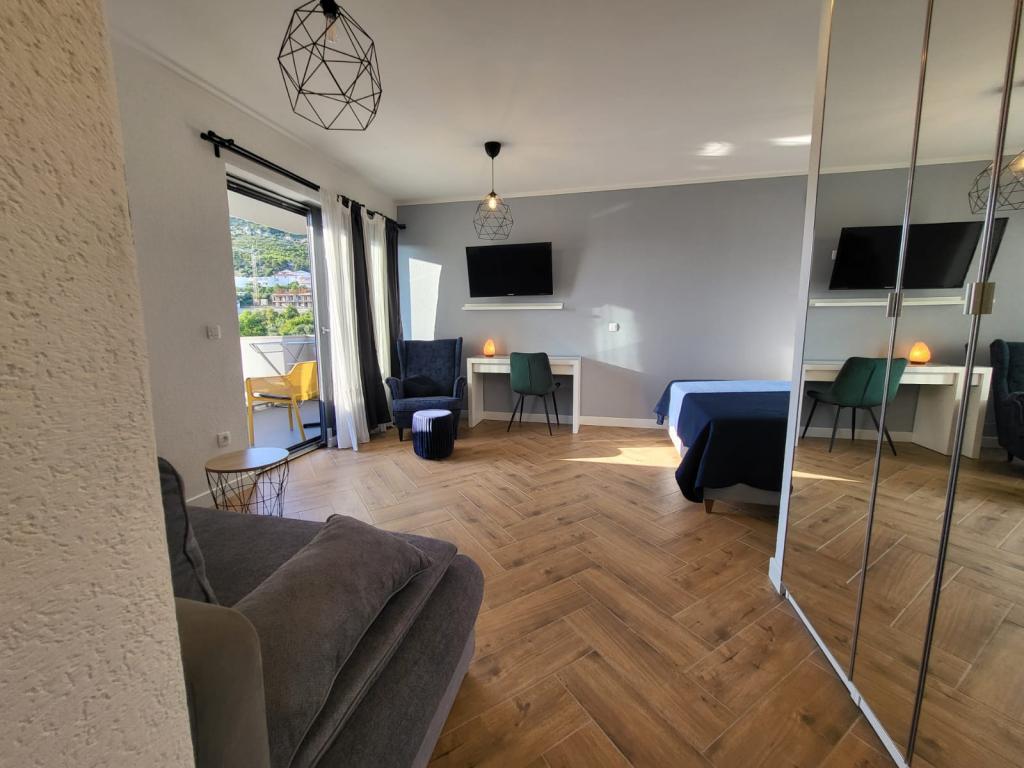 Moderno opremljeni apartmaji se nahajajo v prvi vrsti do morja. Objekt se nahaja nekaj minut hoje od plaže. Na tej lokaciji okoli objekta trenutno ni drugih hiš. Parkiranje je brezplačno, garaža pa je na voljo z doplačilom, odvisno od razpoložljivosti. Topel sprejem in prijetno bivanje vsem gostom.