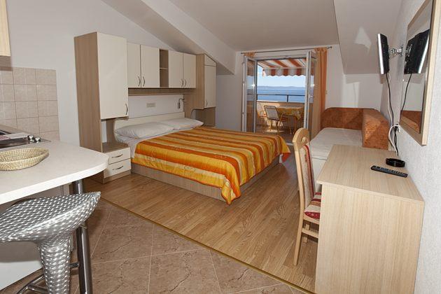 Vsi apartmaji ponujajo čudovit pogled na morje in možnost uživanja obroka na terasi.