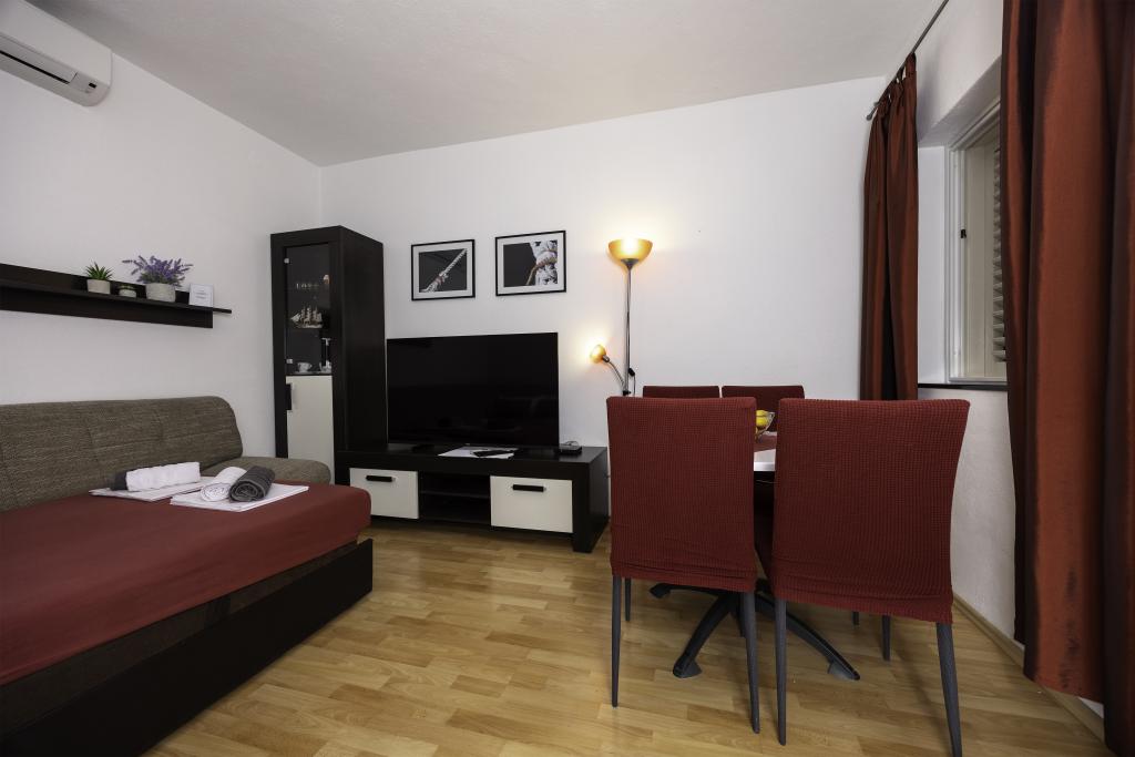Stanovanje se nahaja v bližini plaže, ca. 1-2 minut hoje. Klimatska naprava v obeh sobah s posebnim daljinskim upravljalnikom, balkon na Biokovo, super parkiranje. Šefi so bili zelo vljudni in prijetno. Apartma lahko priporočam.