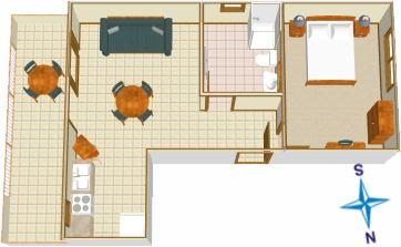Apartma za dve osebi, možnost dveh dodatnih ležišč (45 m2)