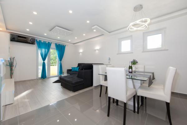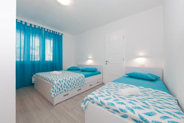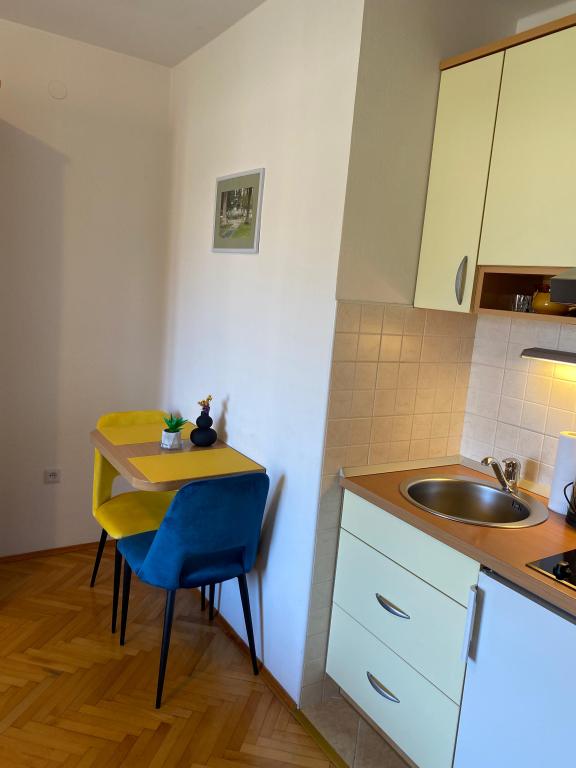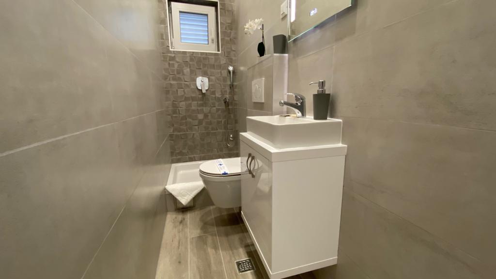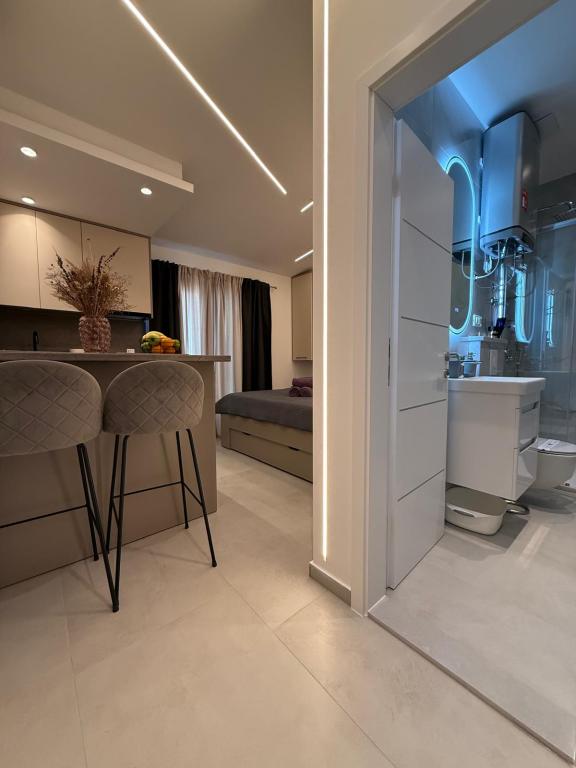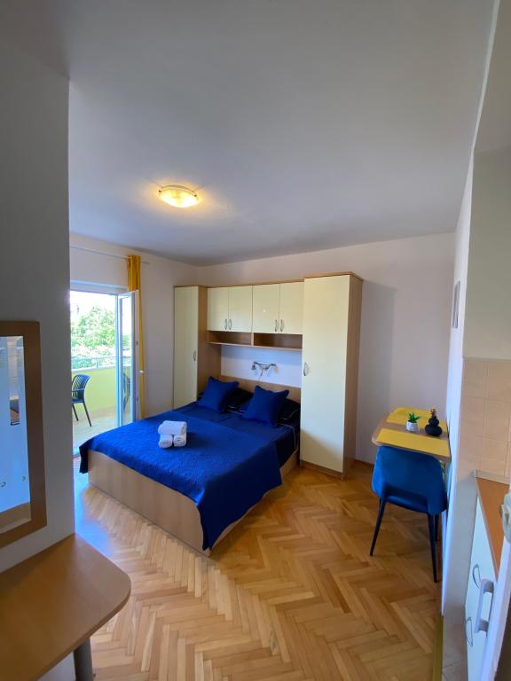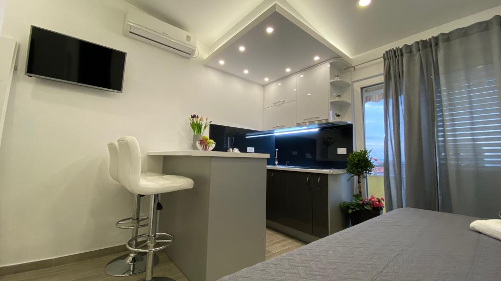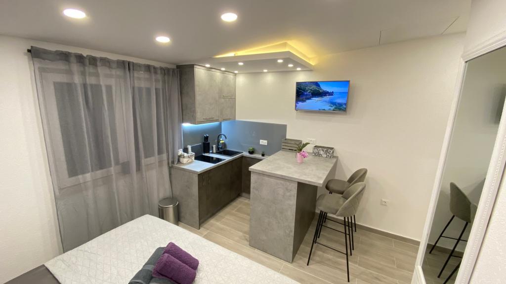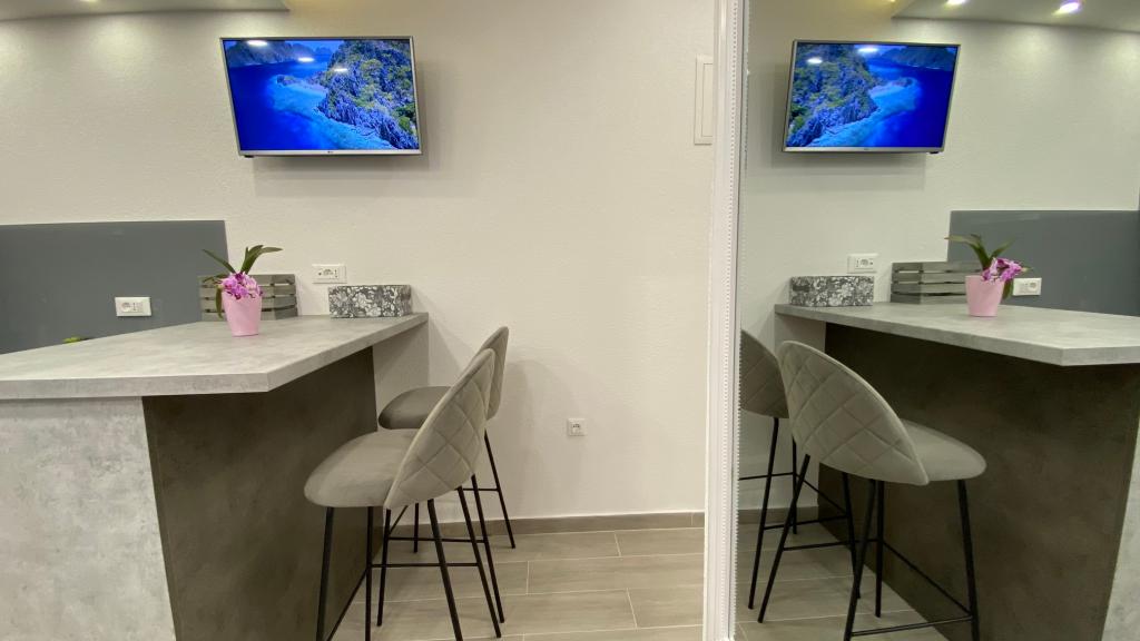 Luksuzno opremljen studio apartma **** za 2 osebi ponuja vse, kar lahko pričakujete, in še več. Moderno pohištvo, kuhinja z barom, barski stolčki, fantastična LED osvetlitev, vsi mogoči aparati, pametna televizija, klima, balkon s pogledom na morje in otroško igrišče, vse je izjemno lepo in čisto. Domačini so fenomenalni ljudje. Zelo prijazni, nasmejani, prijazni. Prvič ste tam in imate občutek, kot da ste prišli do dobrih, starih, prijateljev. In morje in plaža ... 100 metrov od apartmaja, pa tudi center mesta s trgovinami in restavracijami. Vse je na dosegu roke, pa vendar se sama namestitev nahaja v mirnejšem delu soseske. Neverjetna kombinacija! Absolutno vsa priporočila !!!