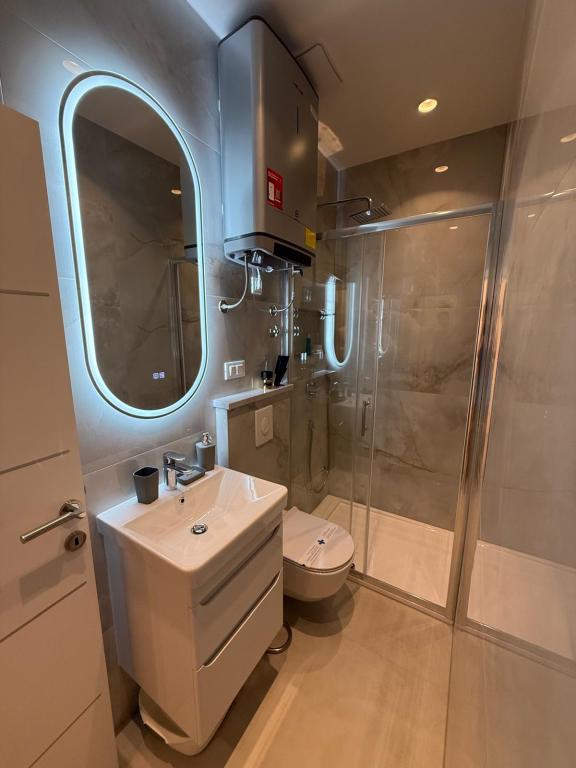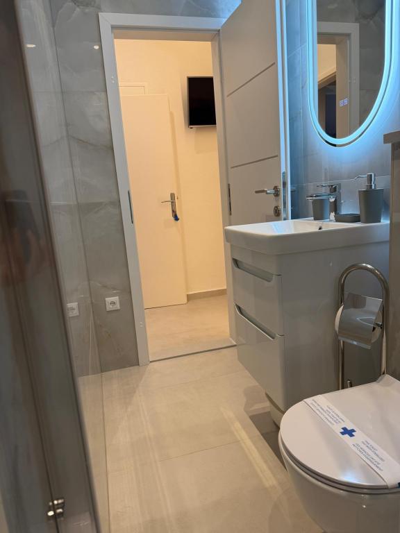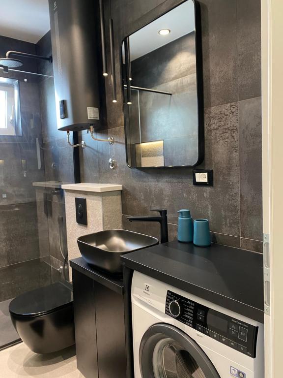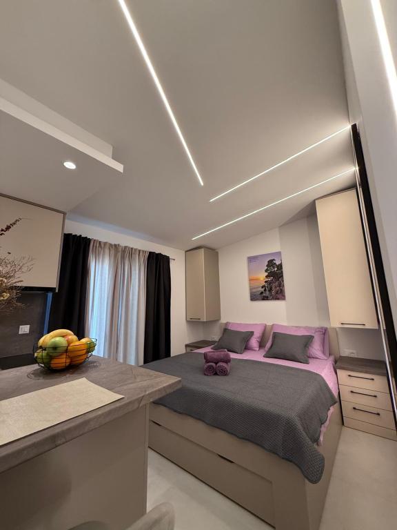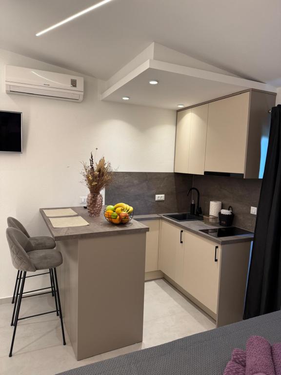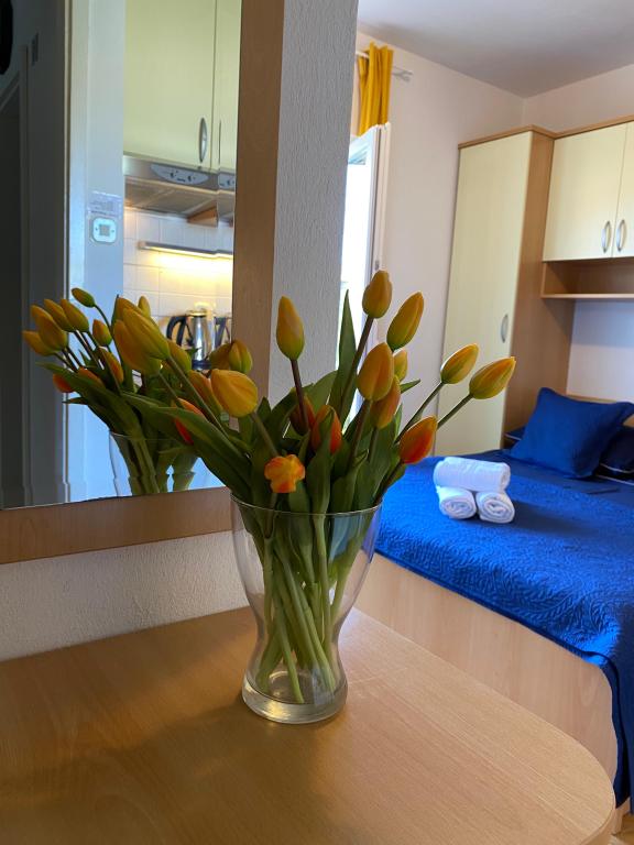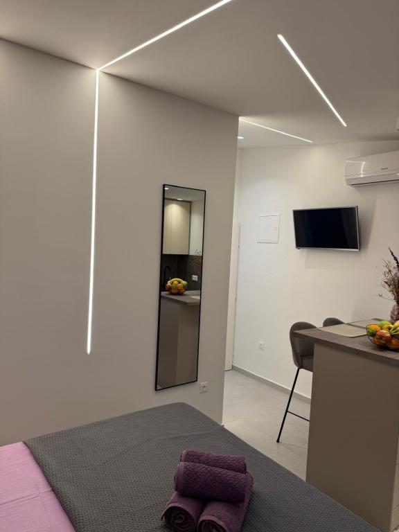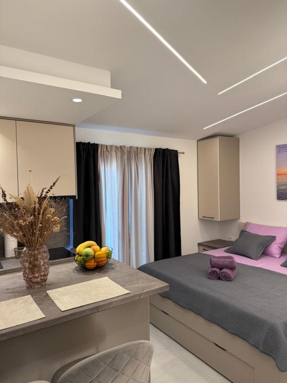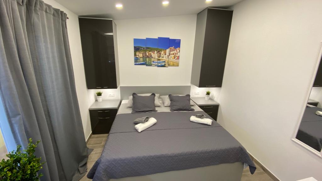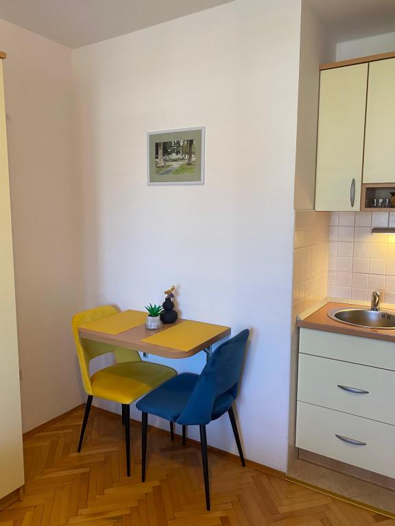 Luksuzno opremljen studio apartma **** za 2 osebi ponuja vse, kar lahko pričakujete, in še več. Moderno pohištvo, kuhinja z barom, barski stolčki, fantastična LED osvetlitev, vsi mogoči aparati, pametna televizija, klima, balkon s pogledom na morje in otroško igrišče, vse je izjemno lepo in čisto. Domačini so fenomenalni ljudje. Zelo prijazni, nasmejani, prijazni. Prvič ste tam in imate občutek, kot da ste prišli do dobrih, starih, prijateljev. In morje in plaža ... 100 metrov od apartmaja, pa tudi center mesta s trgovinami in restavracijami. Vse je na dosegu roke, pa vendar se sama namestitev nahaja v mirnejšem delu soseske. Neverjetna kombinacija! Absolutno vsa priporočila !!!
