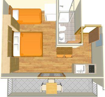 Namestitev za dve osebi, možnost dveh dodatnih ležišč (0 m2)