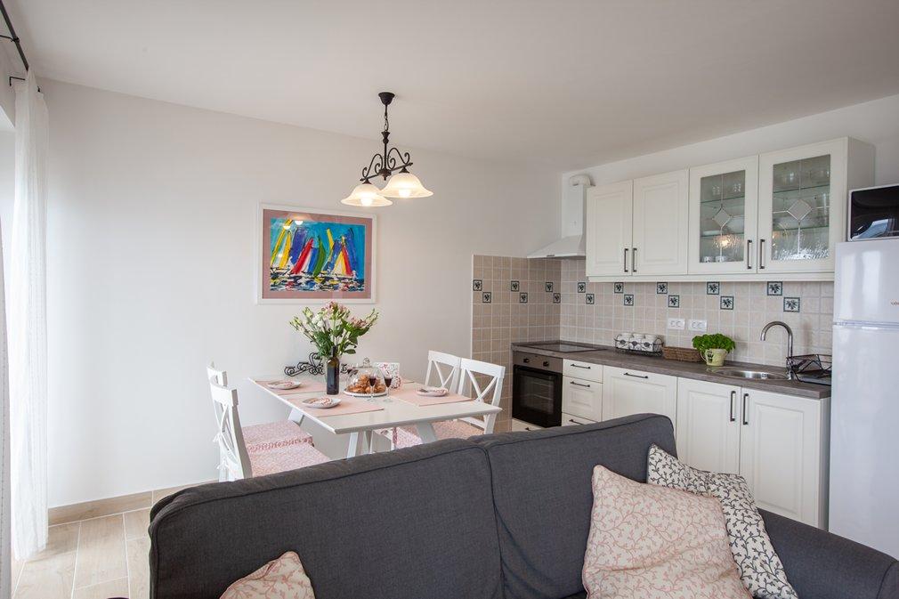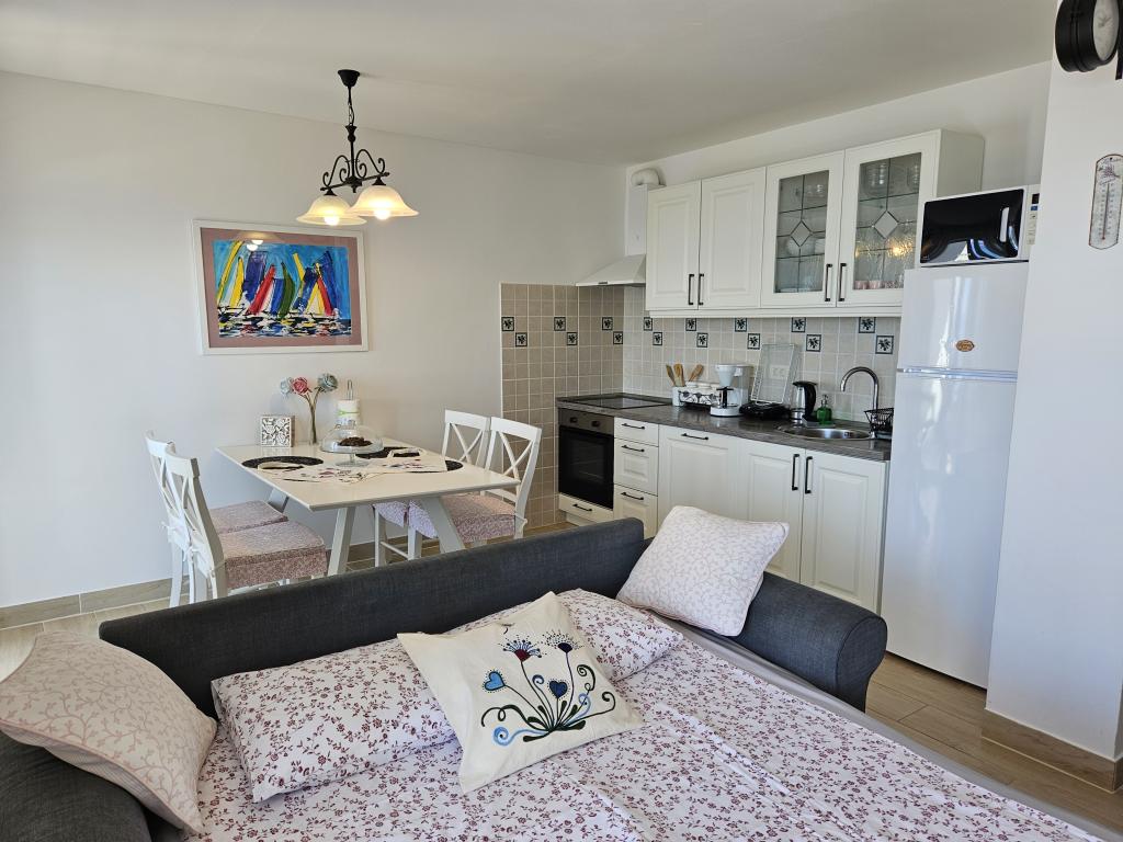Zelo lep apartma tik ob morju. Vse je tam. Kuhinja, hladilnik, sušilec za lase, veliko brisač, lonci in ponve,... Zelo lepa lokacija. Na Hrvaškem smo bili 13-krat, vendar je to zelo lepa regija, lokacija in hiša. Tudi super prijetna in uglajena ter prijetna hostesa.