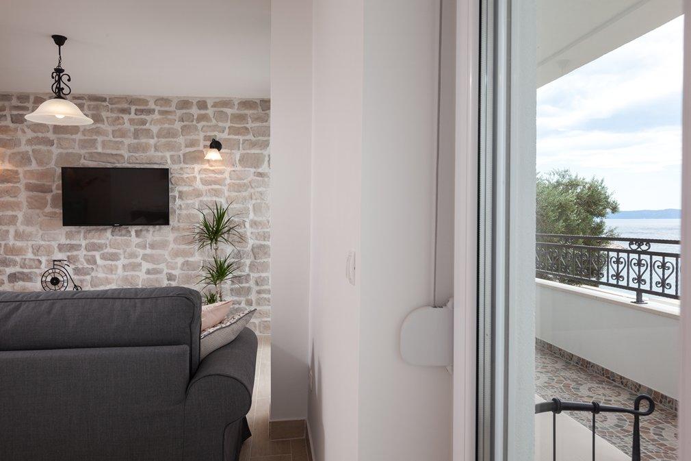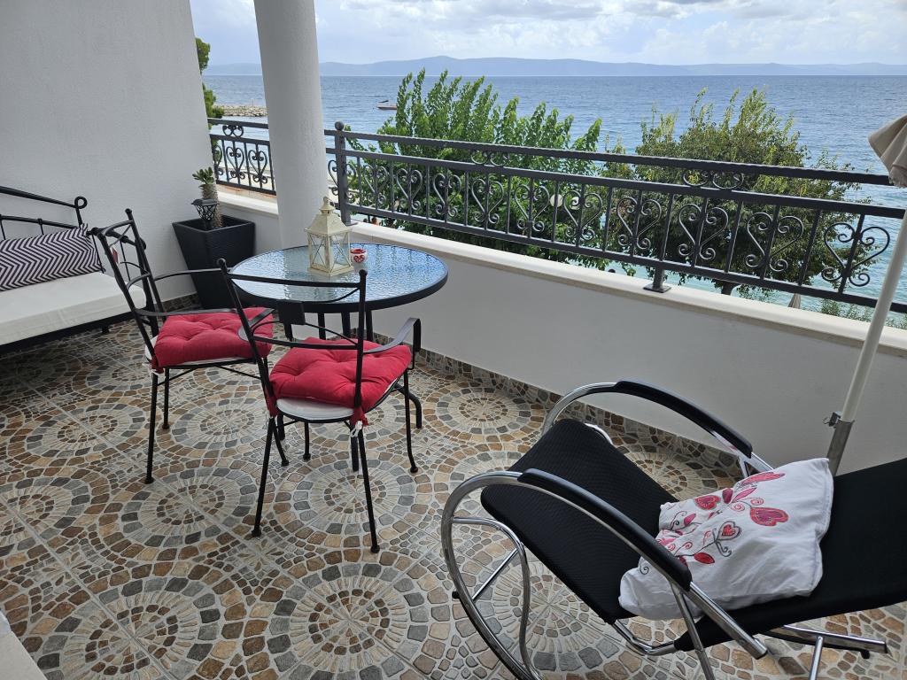 Zelo okusno, čisto stanovanje z neposrednim pogledom na morje. Nekaj metrov od plaže. Lahko samo priporočljivo. Vrh.