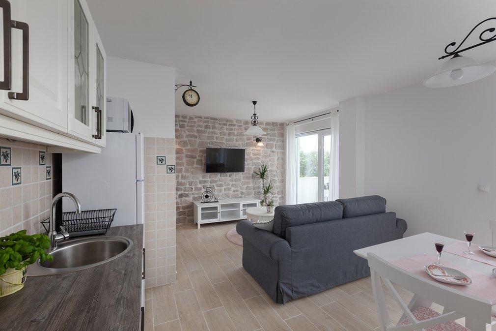 Apartma moderno opremljen v visokem slogu, z vsem, kar potrebujete, da se počutite kot doma, čistoča na nivoju, gostitelji prijazni in na voljo za kakršen koli odgovor na vaše vprašanje, so nas sprejeli s sladoledom za otroke, pomagali prinesti kovčke ... Apartma z lepim pogled na morje, nepozabni sončni zahodi, nekaj korakov do plaže, zelo prijetno vzdušje, počitek za dušo, čisto morje ... kraj, v katerega se želite vedno znova in znova vračati ...