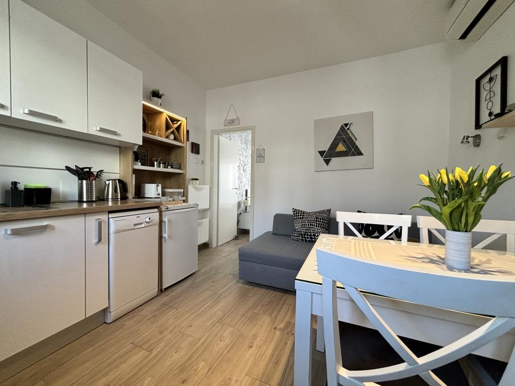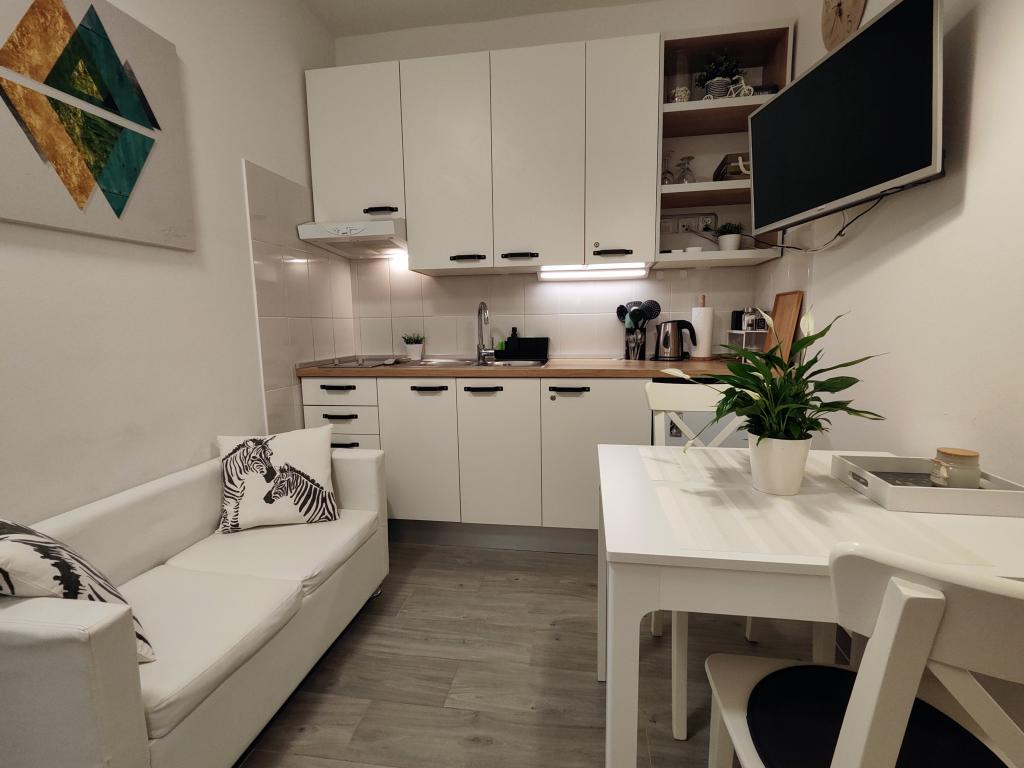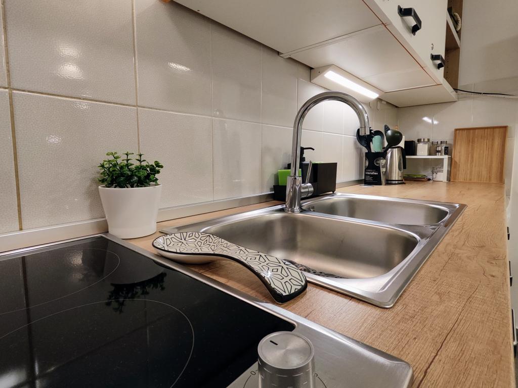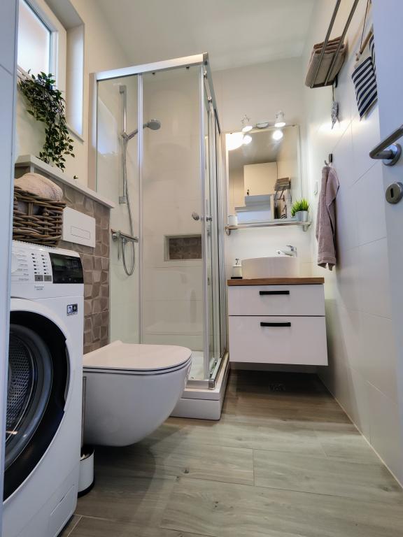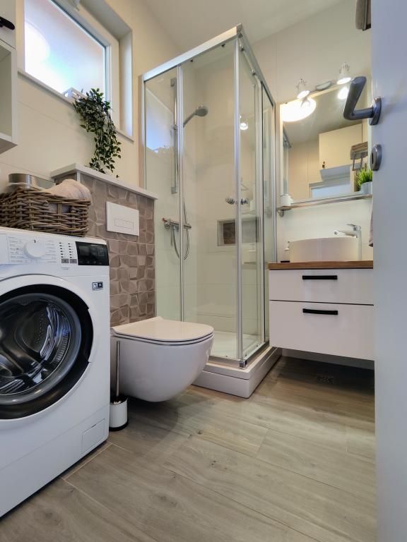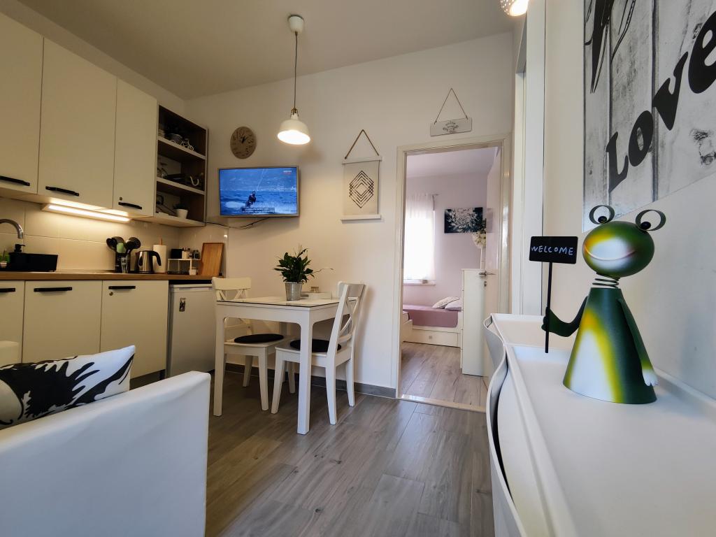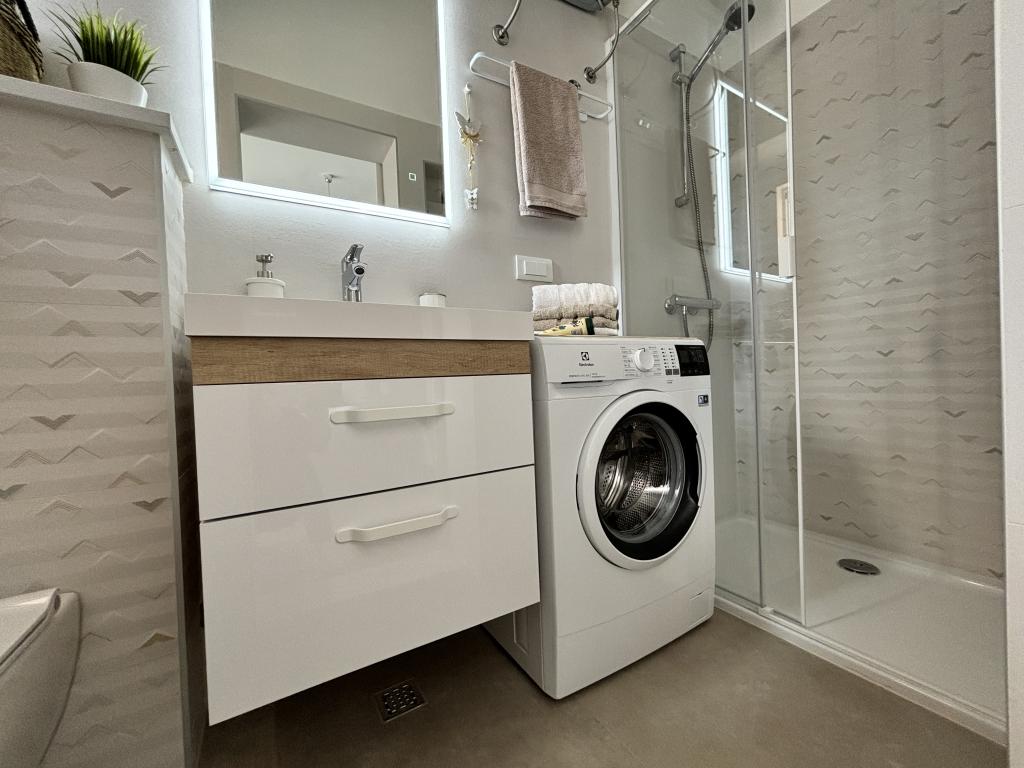 Ob prihodu v apartma so nas lastniki apartmaja zelo lepo sprejeli in nam vse lepo razkazali. Apartma je bil zelo lepo urejen in čist. Apartma je imel pomivalni stroj in stroj za pranje perila. V apartmaju niso bile samo osnovne stvari, ampak si dobil tudi tablete za pomivalni stroj, wc papir, papirnate brisače, prašek za pranje perila,..... Apartma nam je bil zelo všeč.
