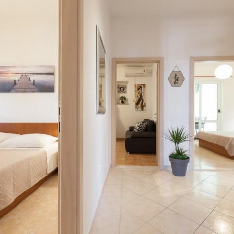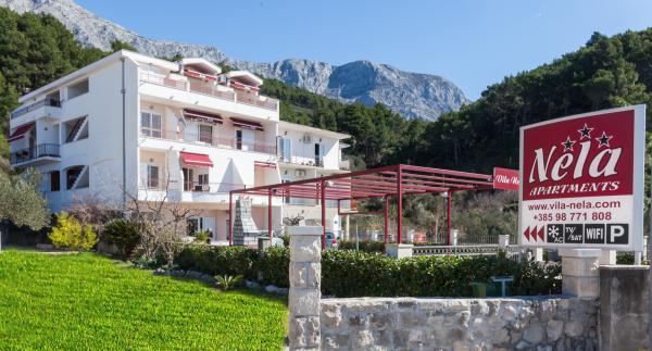 Le 150 metrov od plaže je Villa Nela poleg hotela Alga. Bližina plaže, športnih igrišč, sprehajalne poti, restavracij, kavarn in vseh drugih objektov, potrebnih za popolne počitnice, zagotavlja prijetno in nepozabno poletje. Družina Čović niso samo lastniki vile, temveč tudi osebje vile, ki skrbijo za vse, zaradi česar bodo počitnice v Tučepih čim bolj prijetne. Ta vrsta gostoljubnosti daje gostom vile Nela družinsko vzdušje, osebno in zelo prisrčno storitev, ki je ne morete dobiti v večjih hotelih. S tradicijo in vljudnostjo vam Villa Nela ponuja vse, kar lahko ponudi vrhunski tovrstni turistični objekt. Apartmaji imajo lastne kopalnice, klimatsko napravo, satelitsko televizijo, brezžično internetno povezavo, sefi, velike prostorne balkone in zavarovano parkirno mesto pred vilo. Klima je razkužena, apartmaji pa brezhibno čisti.