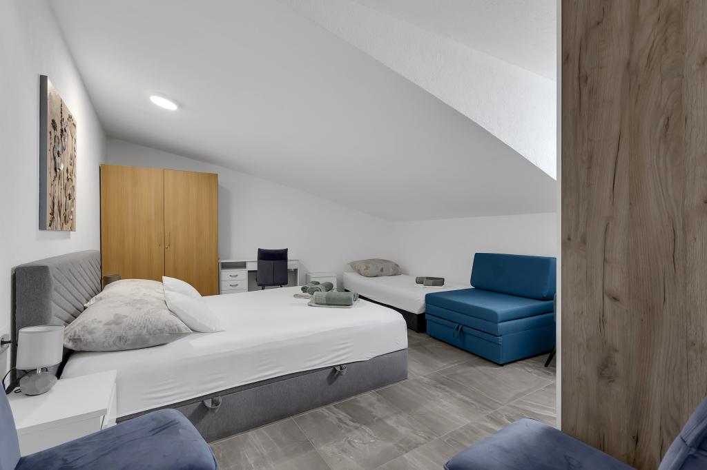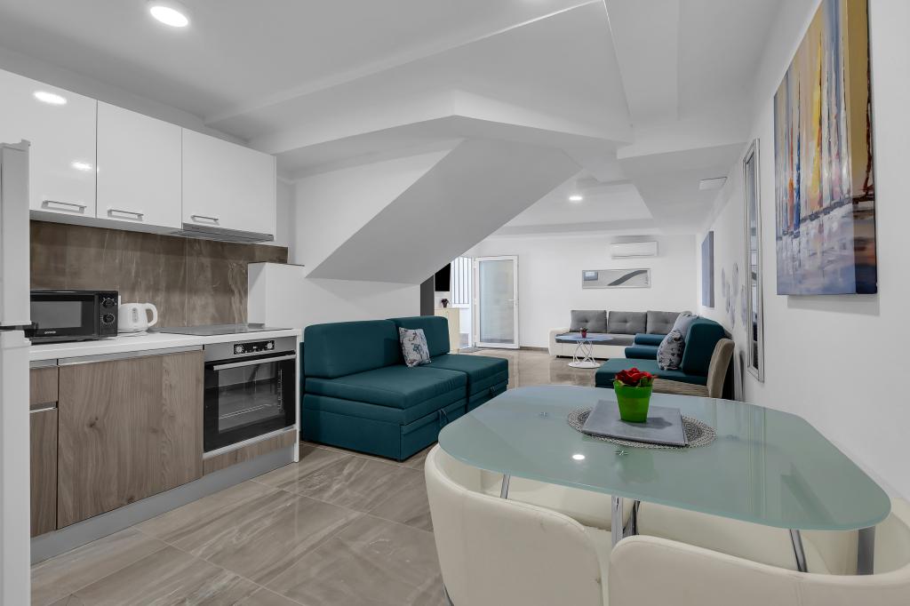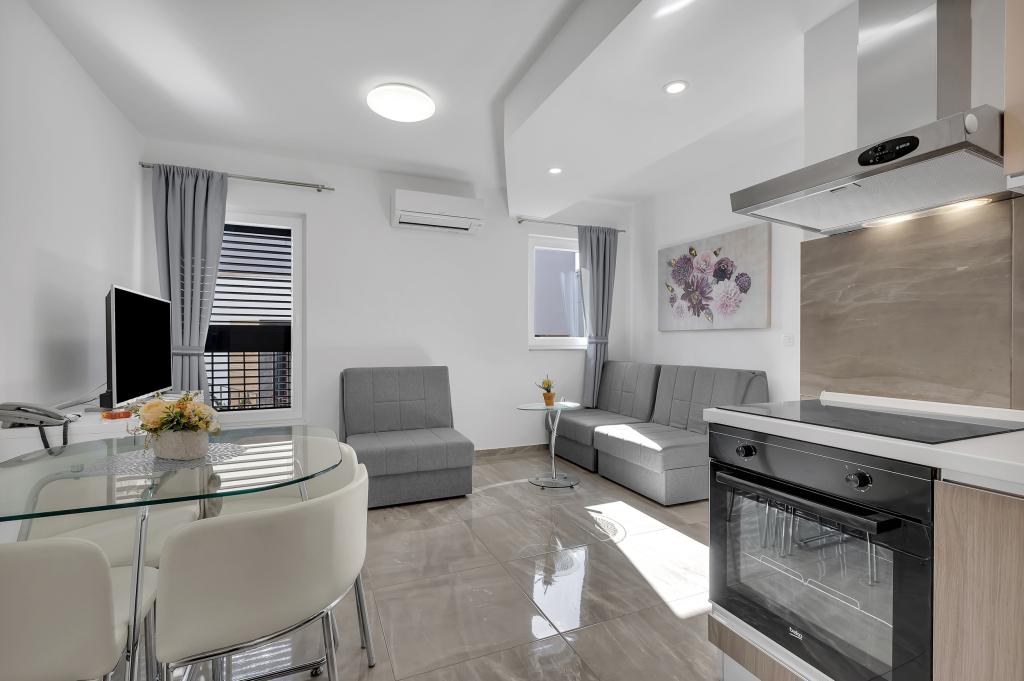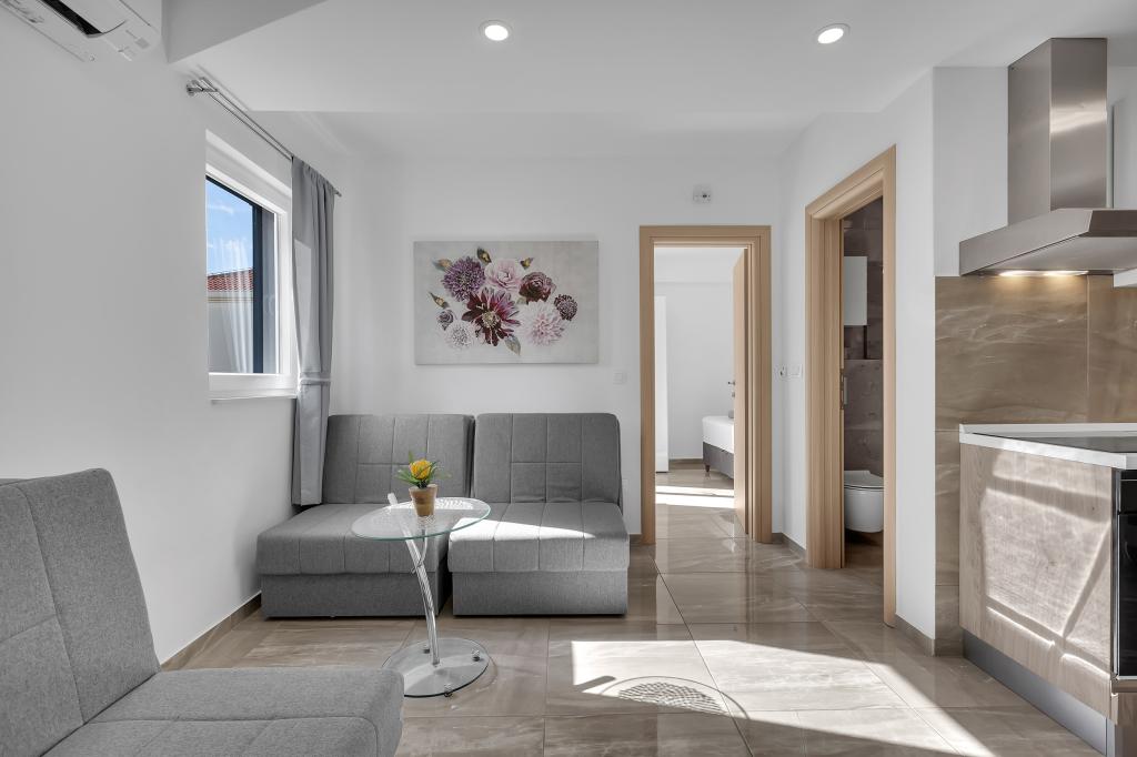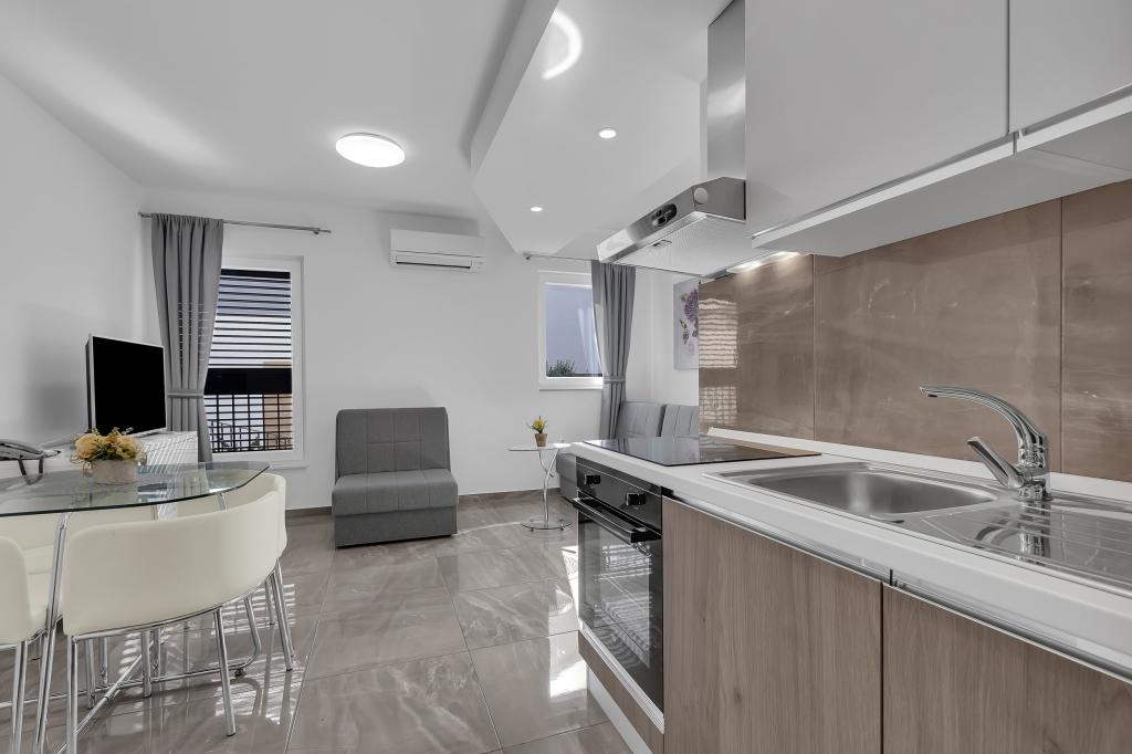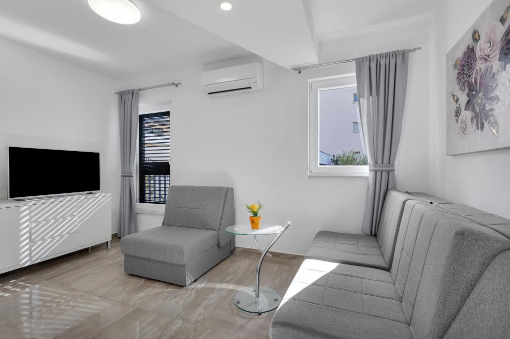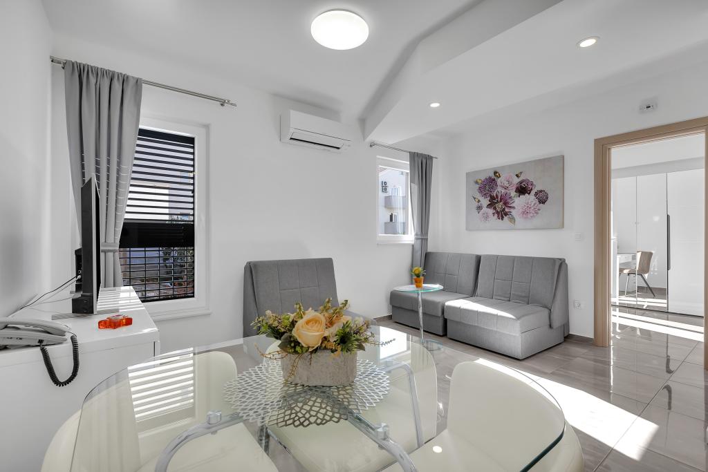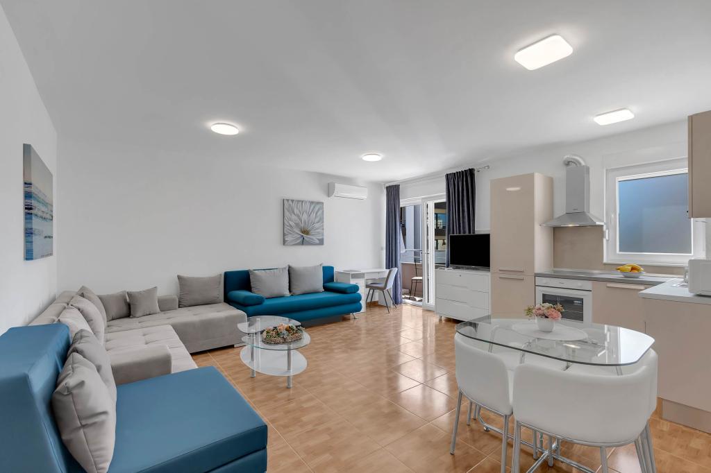 Popolnoma in moderno opremljeni ekskluzivni in luksuzni 4-zvezdični apartmaji v Tučepih v bližini morja (NOVOGRADNJA). Objekt se nahaja 5 minut hoje od centra in 2 minuti hoje od plaže (100 m). Poleg popolnoma opremljenega objekta je na voljo garaža, dvigalo in terasa za vsak apartma. Cena apartmaja se začne od 79 € na dan, odvisno od števila oseb in časovnega obdobja (števila nočitev). Turistična taksa je vključena v ceno.
