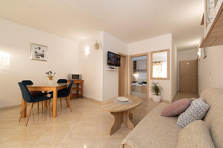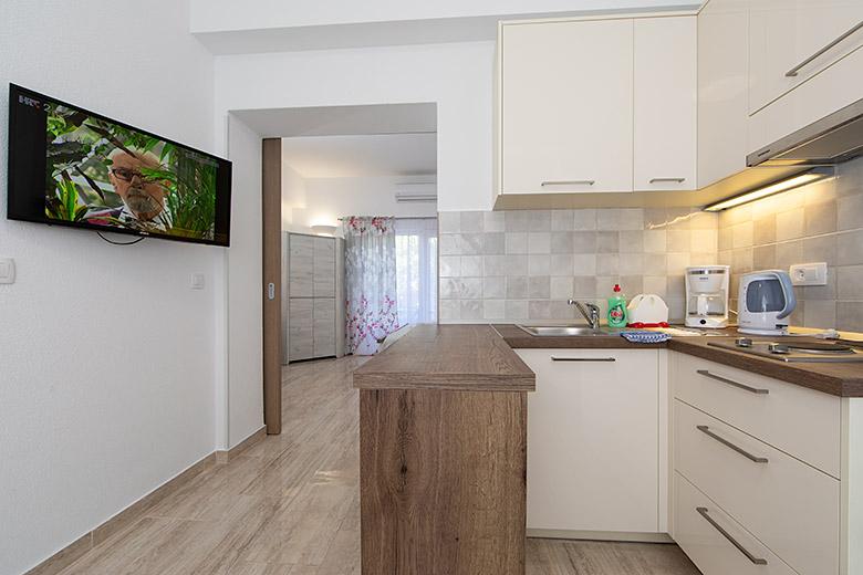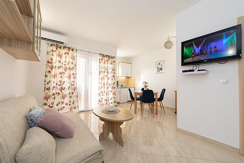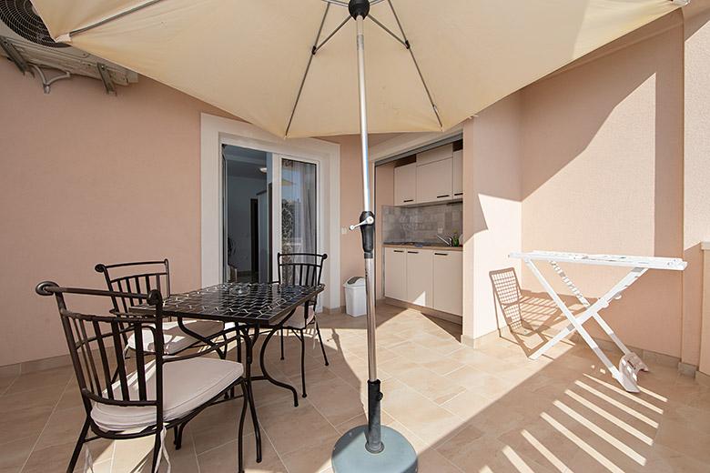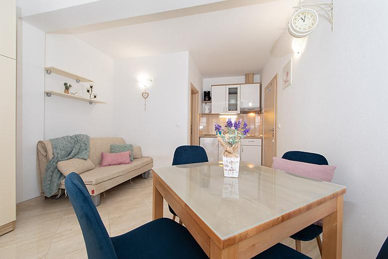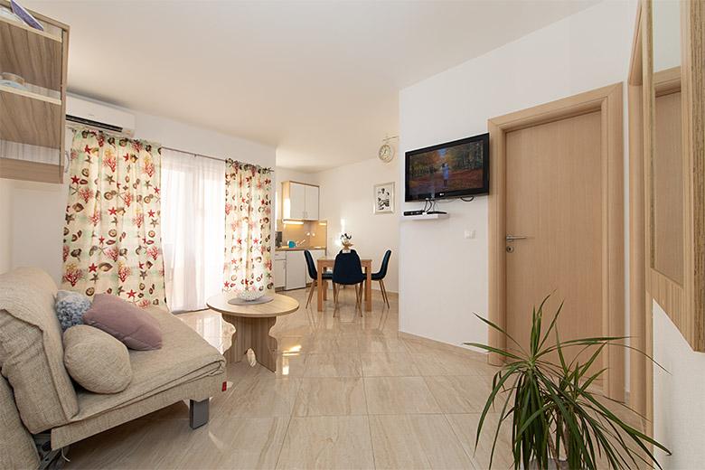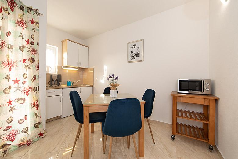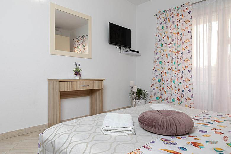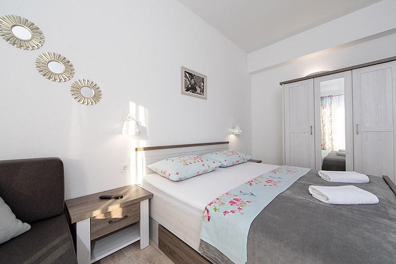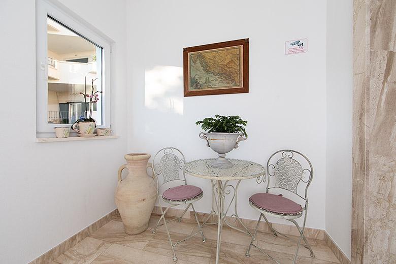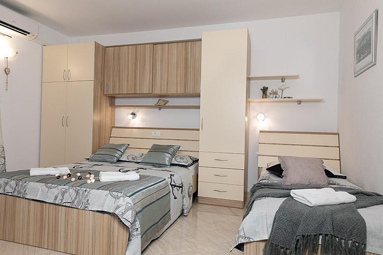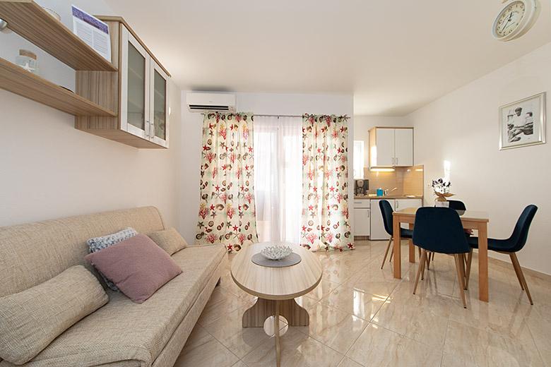 Turistična taksa je vključena v ceno.Lastnica je zelo dostopna in vljudna Apartma je izjemno čist in dišeč, postelje udobne. Velika terasa z majhno kuhinjo, ki vsebuje vse, kar potrebujete za kuhanje V stanovanju je sušilnik perila, fen, kuhalnik vode, kavni aparat, na hodniku pa omara za dodatne potrebščine. (toaletni papir, vrečke za smeti, detergent za pranje perila, likalnik, likalna deska,...) Stanovanje je zelo blizu vsega, pekarne, tržnice, restavracija, center, plaža 50 m.. Pred apartmajem je zagotovljeno brezplačno parkiranje Toplo ga priporočam vsem